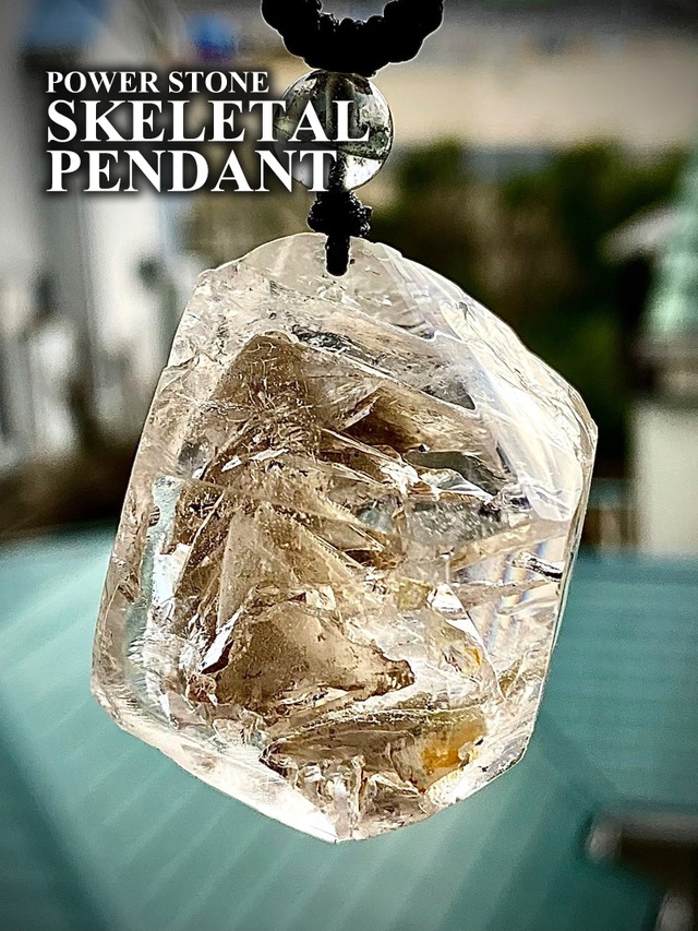セレクトインポートしました天然石エレスチャル(骨格水晶)ペンダントです。 通常エレスチャルはポイント型ですがそれを贅沢に封じ込めてある ラウンドスタイルのレアペンダント。 トライアングルウィンドウが真ん中にドンと切り取られて封じ込めてあります。 通ならすぐにスケルタルだと分かる珍品です。 表も裏も力強いビューなので、引けを取りませんよ。 太陽の光で若干イエロー気味に見えますが割りとクリアに近いからーです。 効能:エレスチャル(エレスチャルクォーツ、骸骨水晶)の主な効能は、強力な浄化と癒し、精神的成長のサポートです。ストレス緩和、直感力・洞察力の向上、人生の転機での導き、高次の意識との繋がりを助け、心身のバランスを整え、魂の真の自己発見を促すとされていますが、これらはパワーストーンとしての伝承であり、効果を保証するものではありません。 Size:H 4.6 x W 3.7 x D 2.2 cm ブラックダブルスライドロープで長さ調整できます。 ヤマトにてお届けです。