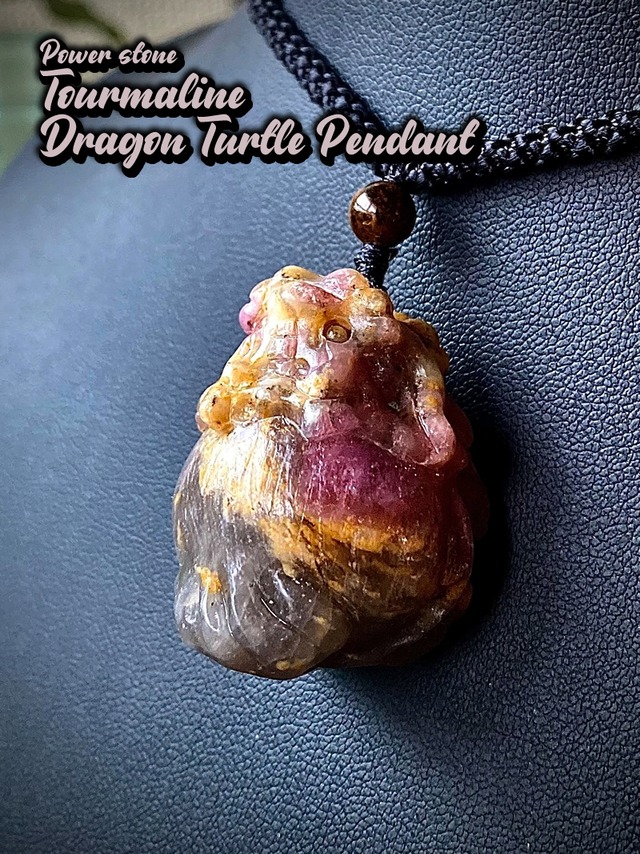 Power stone Tourmaline Mini Dragon Turtle Pendant
