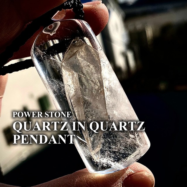 セレクトインポートしました天然石水晶クォーツインクォーツペンダントです。 マーケットでびっくりした子です。バイヤーはもちろんAmy。 組みながらしげしげと眺めて、一体あの塊の状態からこんな部分がどうやって 切り出されるのだろうと考えてしまいました。 こんなロングポイントインクォーツは中々見かけられません。 シェイプもロングで透明度もばっちり。 黒い服着られる方だったら絶対マストアイテムに。 効能:水晶(クリスタル・クォーツ)は「純粋・浄化・万能」を象徴し、心身のエネルギーを清め、高いヒーリング効果でストレスを緩和します。魔除け、直感力・集中力の向上、さらには他の石の力を増幅する効果も期待される「万能のパワーストーン」です。 Size: H 5.7 x W 2.5 x D 1.5 cm ブラックダブルスライドロープで長さ調整できます。 ヤマトにてお届けです。