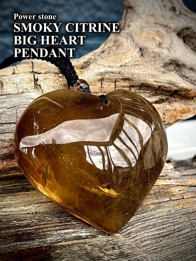天然石スモーキーシトリンビッグハートペンダント。 ブリンブリンで半分ドゥルージー。 ウィスキーイエローがとても綺麗な色、ちょっと大きいので重さを忘れてしまったのですが 試してみたい方は是非。 効能:古くから恐怖心や不安感などから、心を開放し、混乱した情緒を安定させる効果のある石とされています。 試験勉強や資格の取得、ダイエットなどの目標を達成したい時、忍耐強く努力する力を与えてくれる石でもあります。 リラックス効果があり、古くは不眠症の方にも用いられたそうです。 Size: W 5.9 x H 5.2 x D 3.1 cm ダブルブラックスライドロープ付属、長さ調節できます。 ヤマトにてお届けです。
