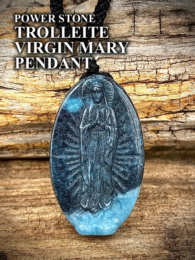 海外から直接買い付けました。 ブラジル産のトロレアイトマリアカービングペンダントです。今回初めての取り扱いです。 効能:面によって異なる表情を見せるため、世界に二つとないお品と言われている。 トロレアイトは、アセンションストーンと呼ばれる特別な霊性の高い石の一種で、地球や宇宙の次元を超えた高次元にアクセスし、インスピレーションや叡智、気付きをもたらすと言われています。 Size:H 3.7 x W 2.2 x D 1.0cm ブラックダブルスライドロープで長さ調整できます。 ヤマトにてお届けです。