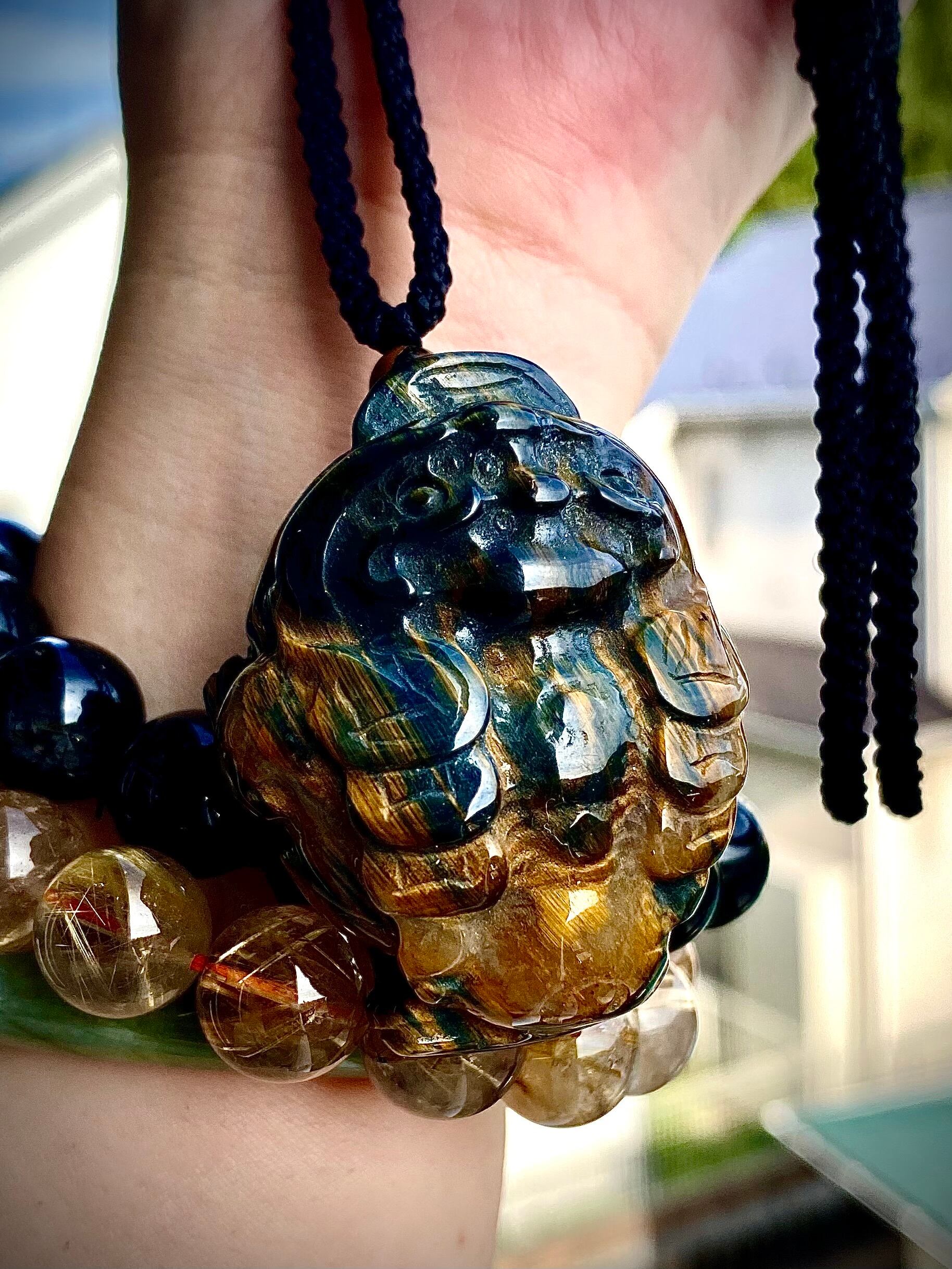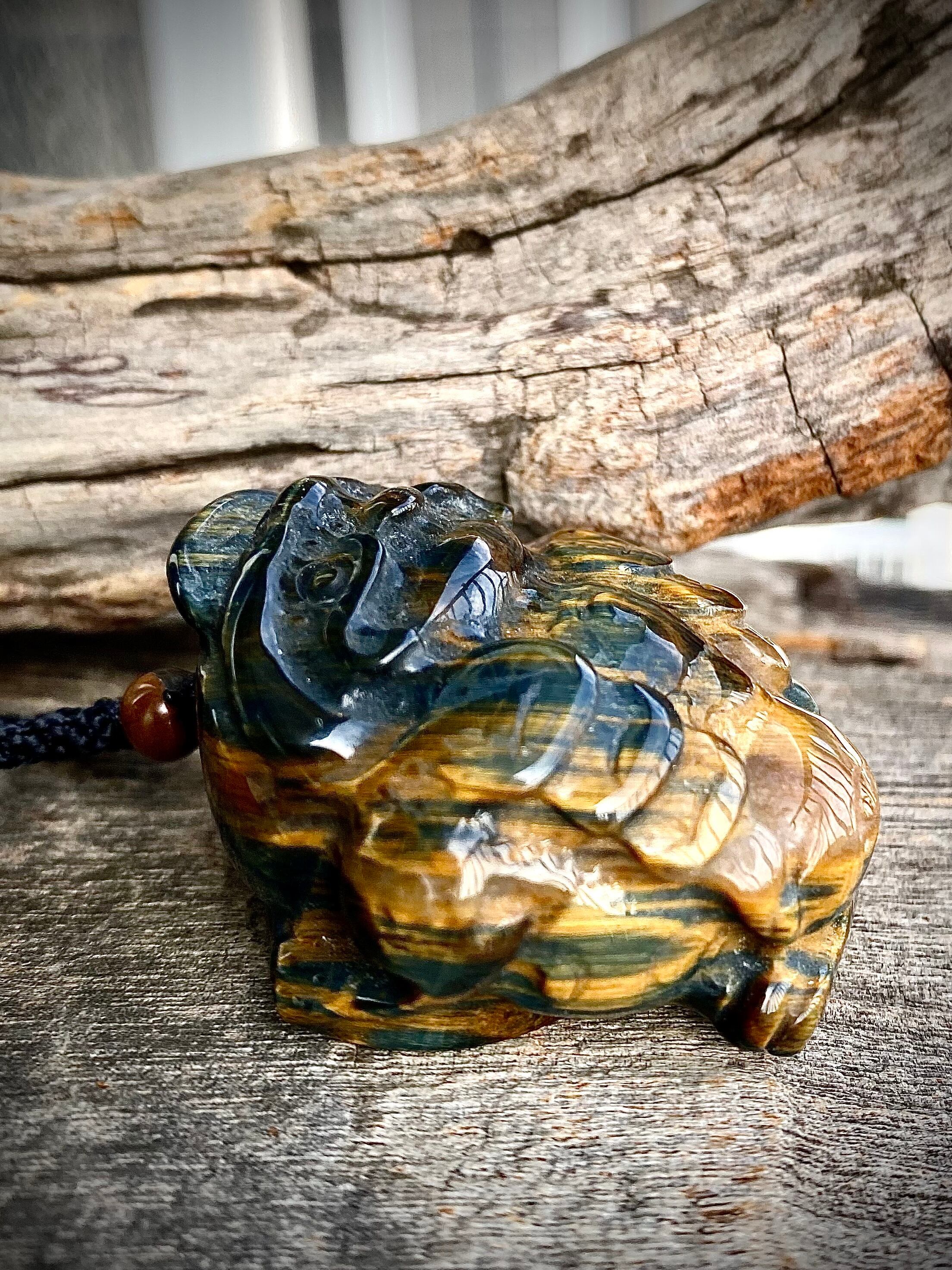 Power stone Yellow Tiger Eye Money Toad Pendant