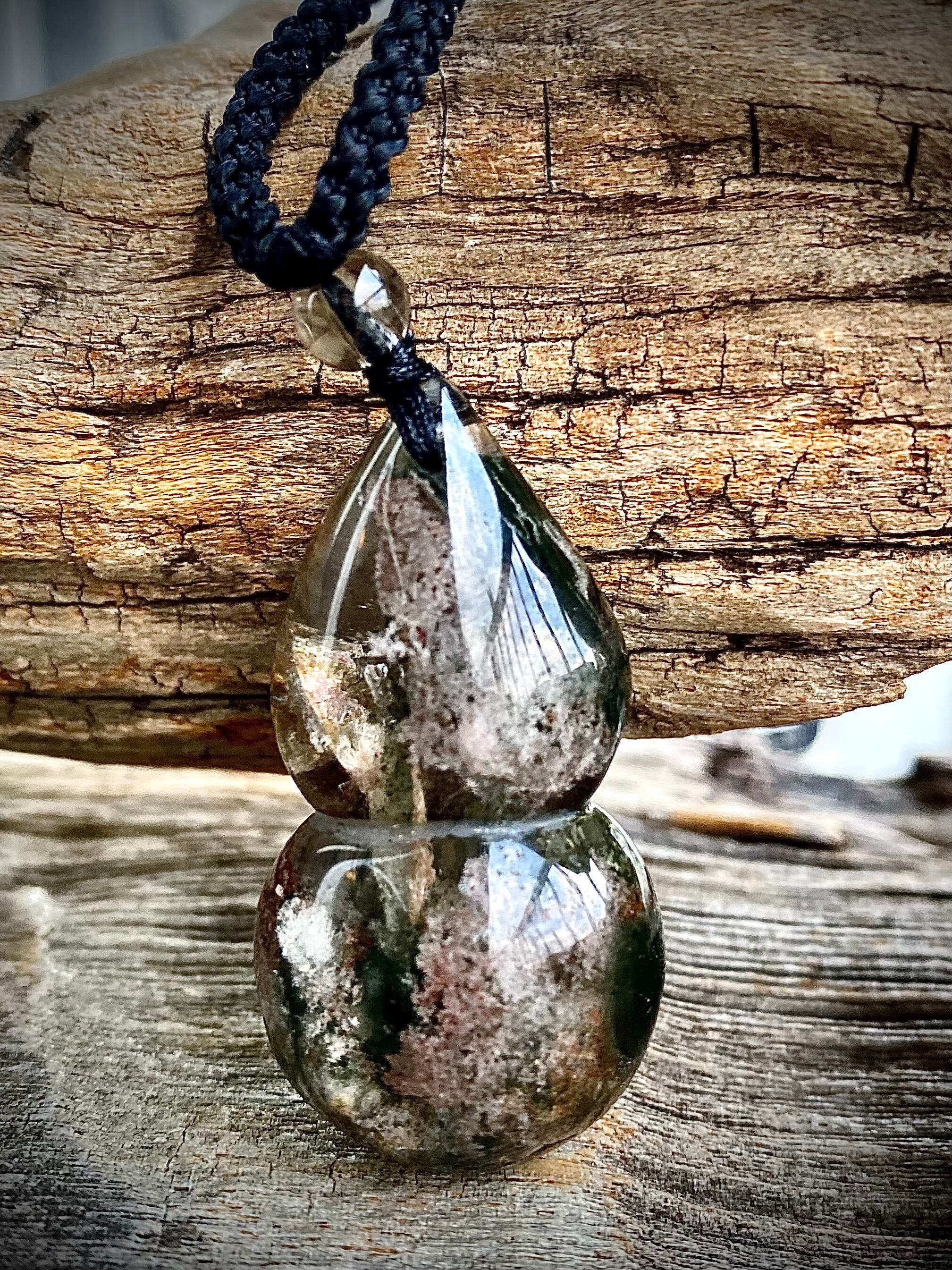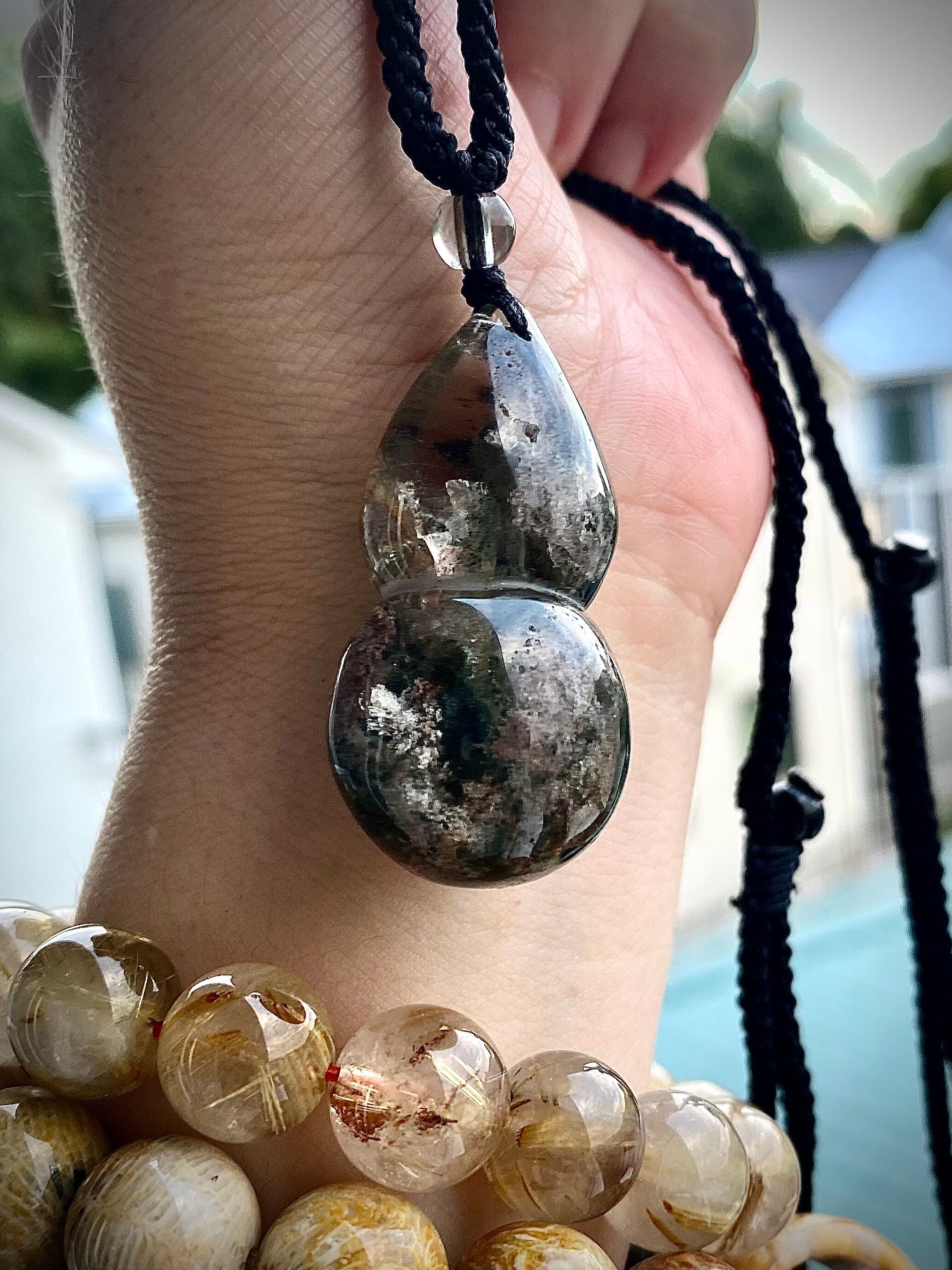 セレクトインポートしました、天然石グリーンガーデンクォーツひょうたんペンダント。