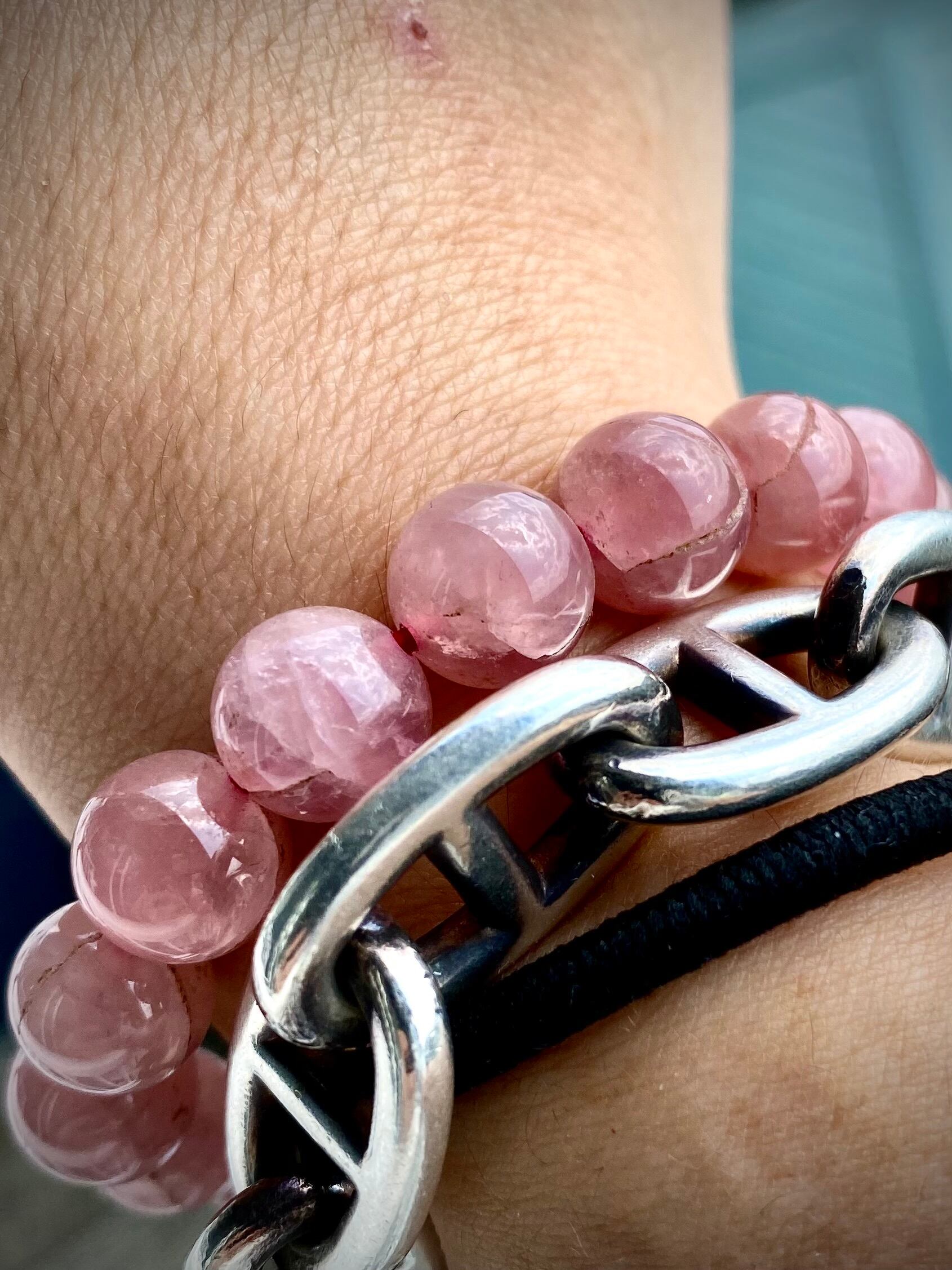 セレクトインポートしました、天然石ローズクォーツブレスレット。