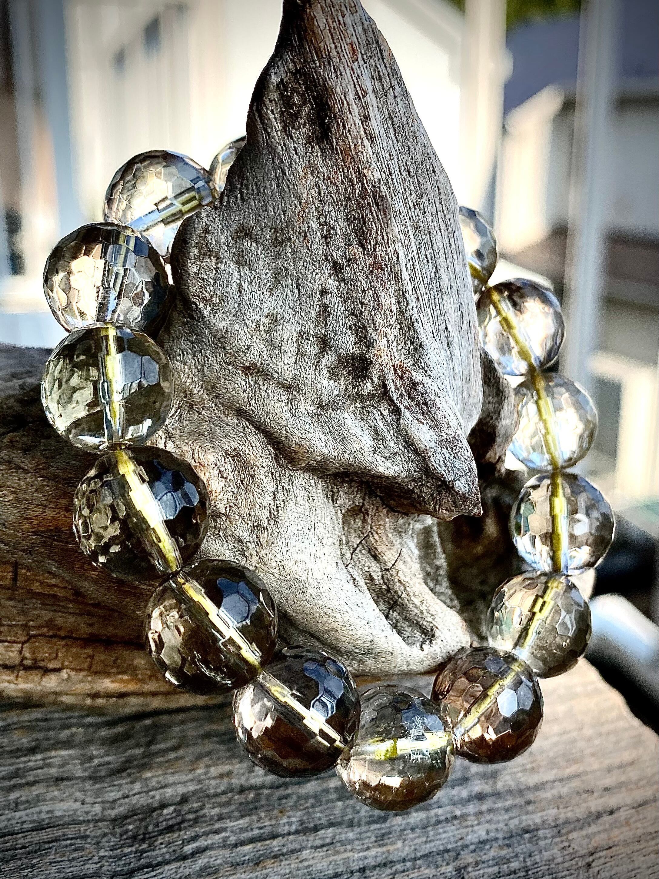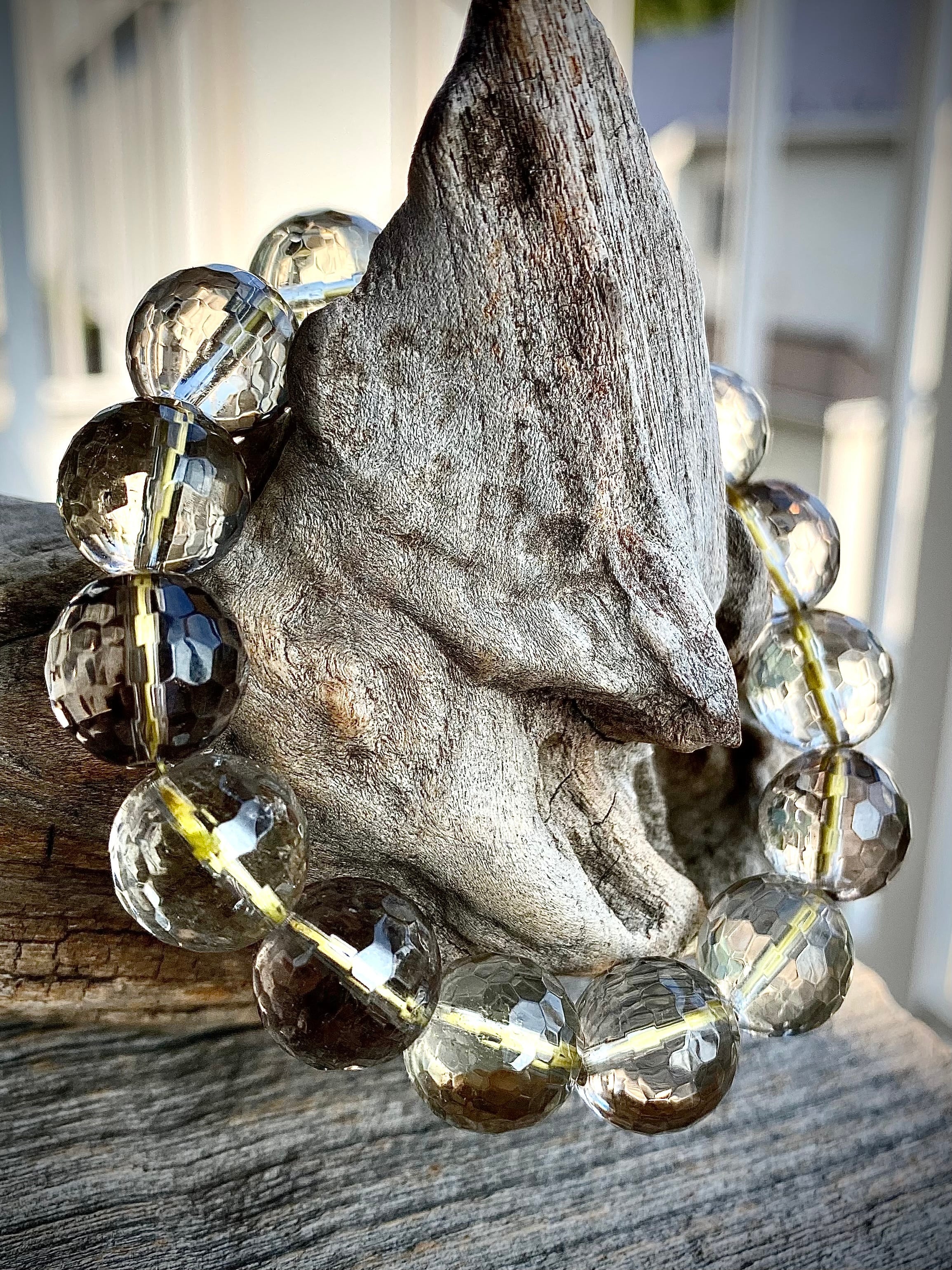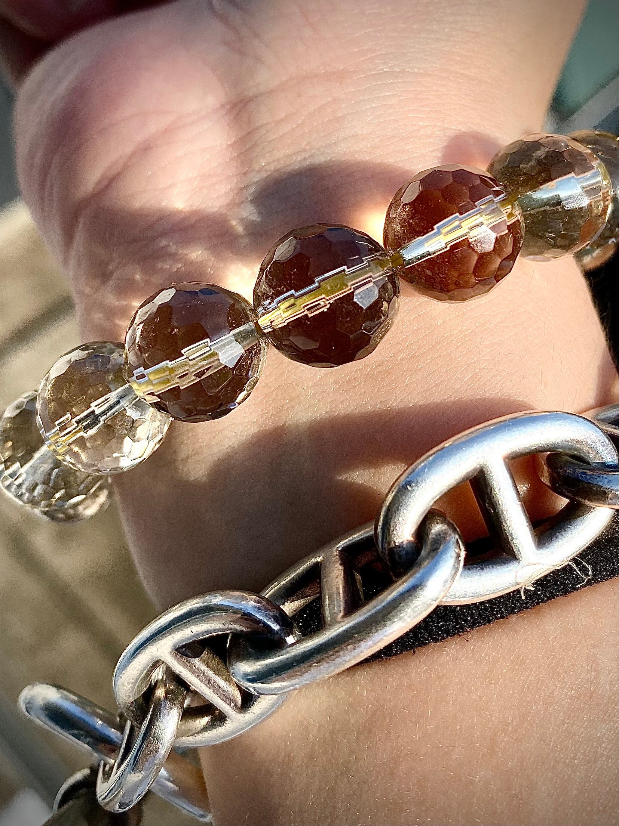 セレクトインポートしました、天然石カットスモーキーシトリンブレスレットです。