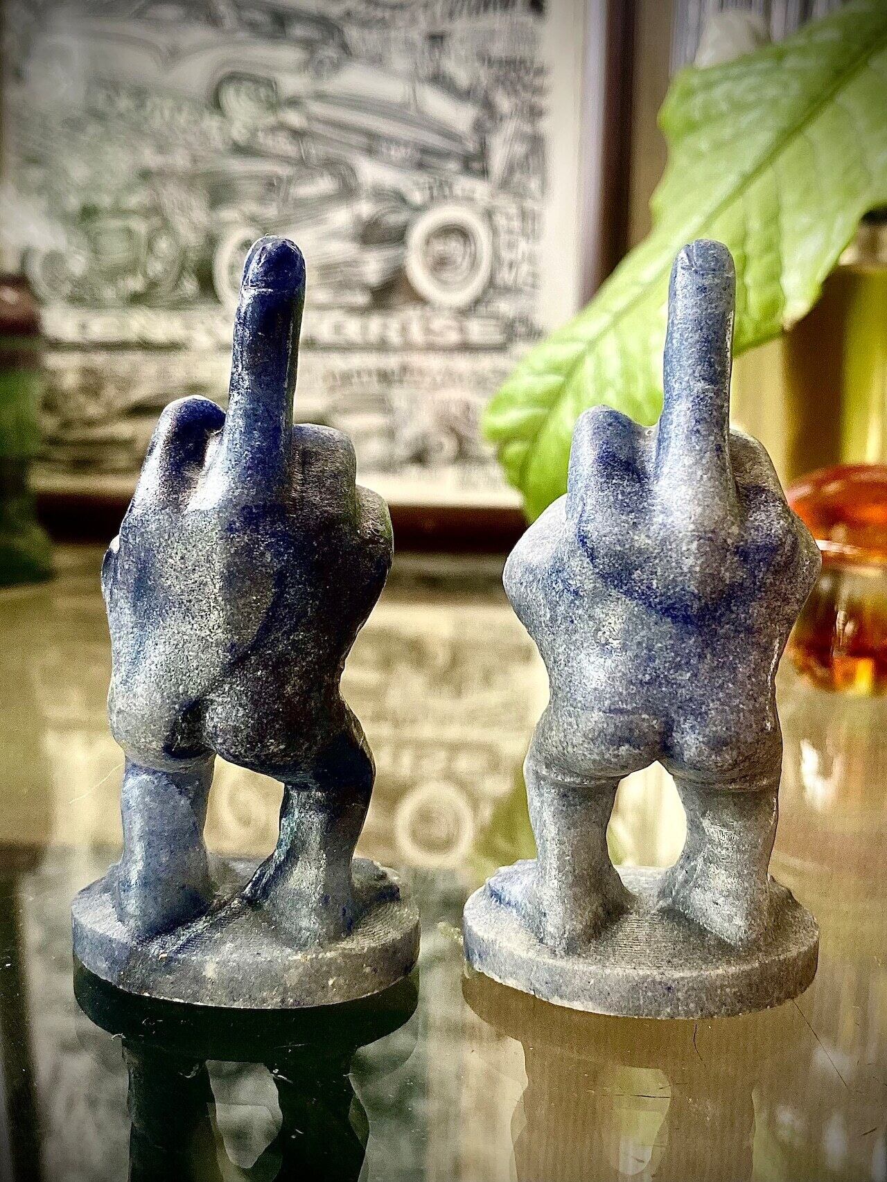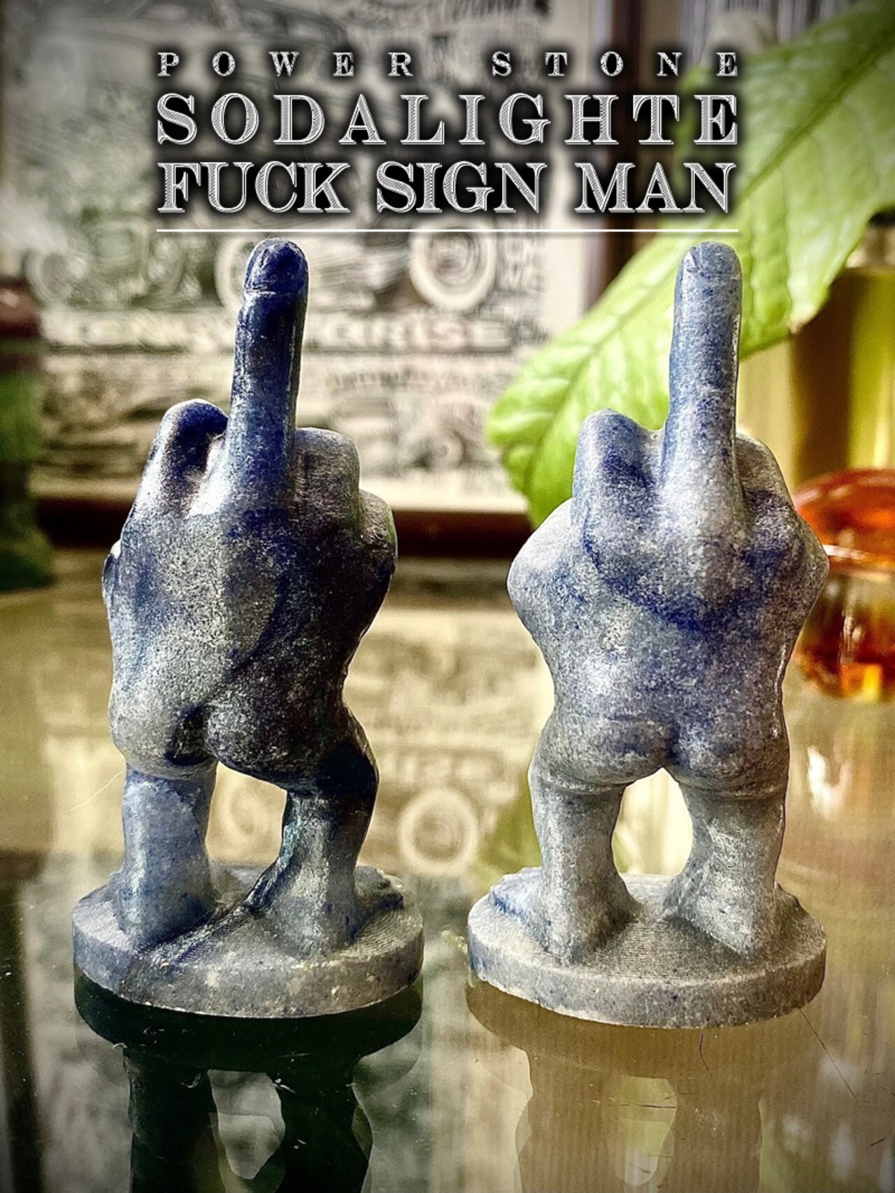 天然石ソーダライトカービングFUCK SIGN MANです。いい仕上がりのオ●ツでございます。(笑)