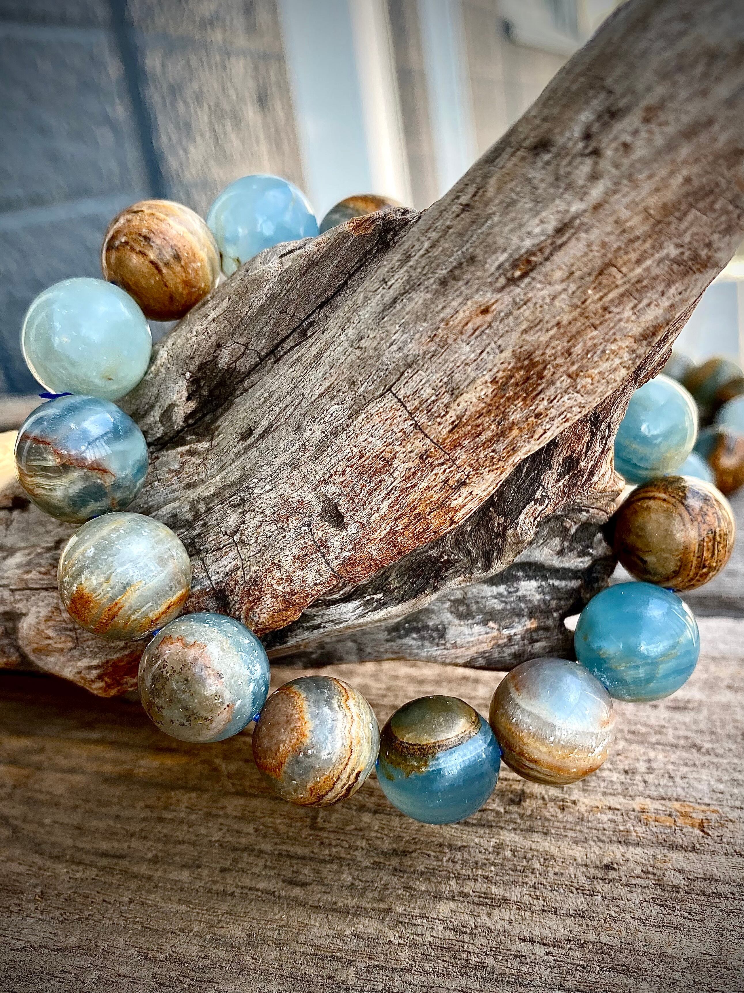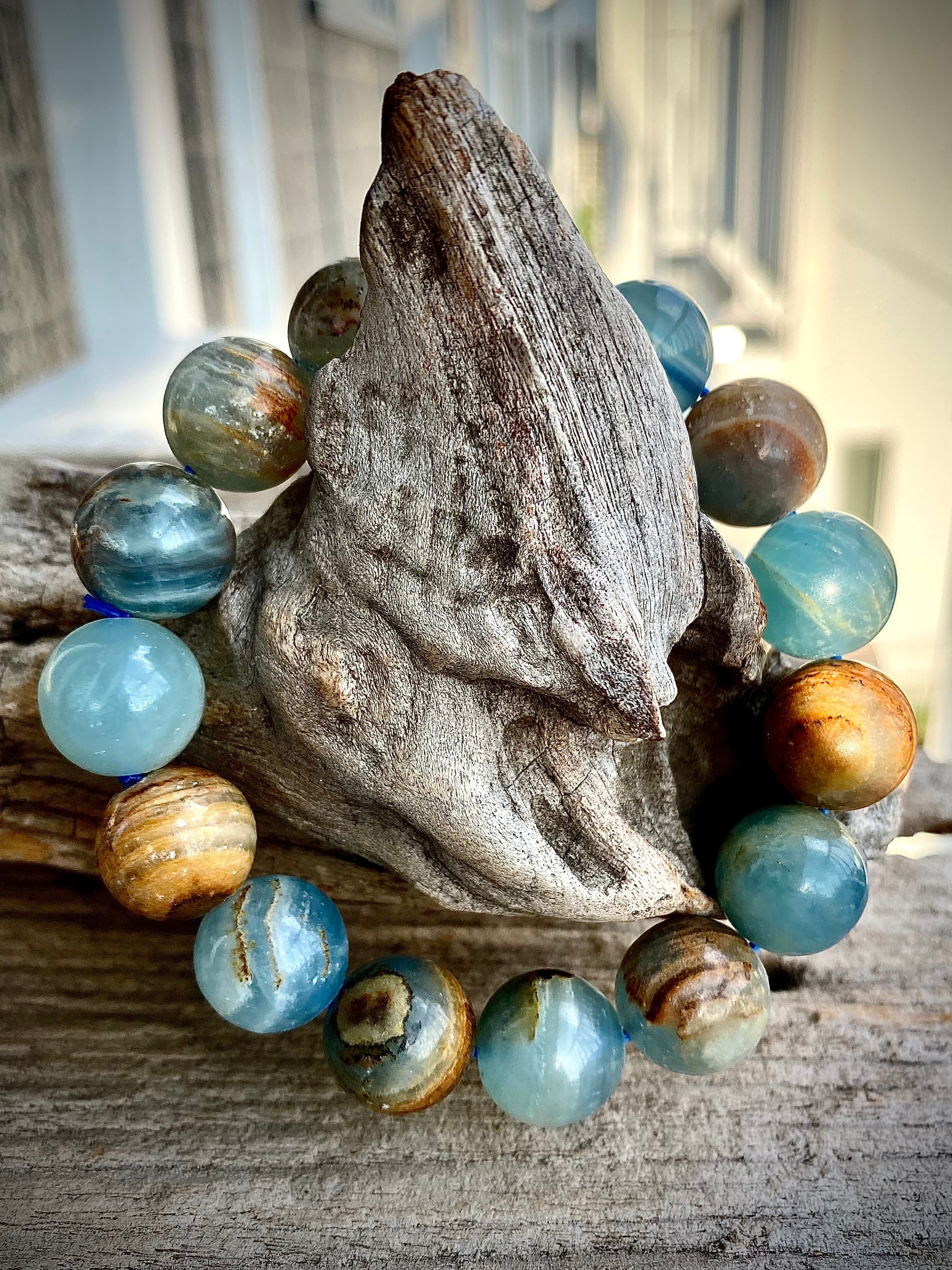 セレクトインポートしました天然石ブルーオニキスブレスレットです。