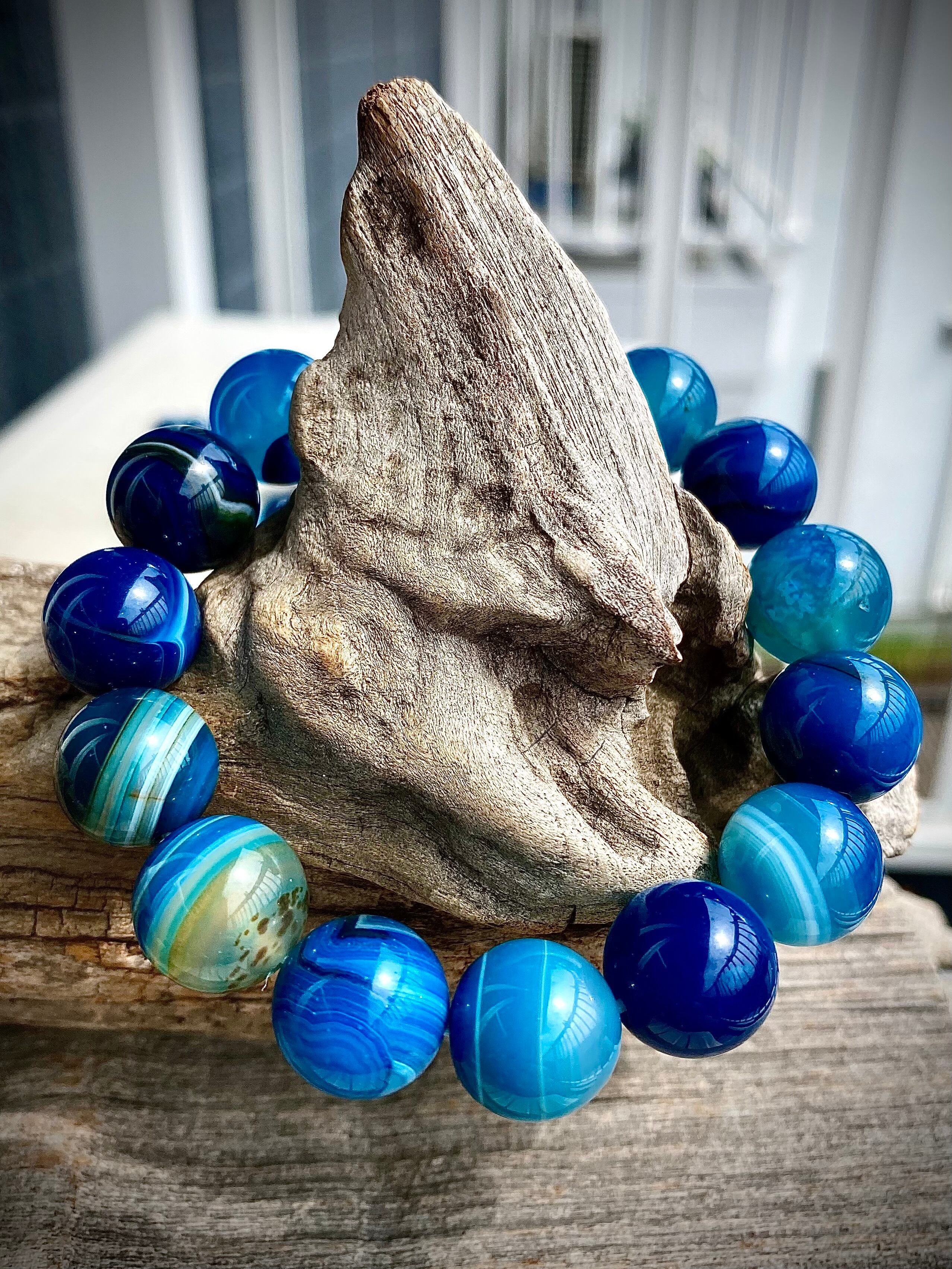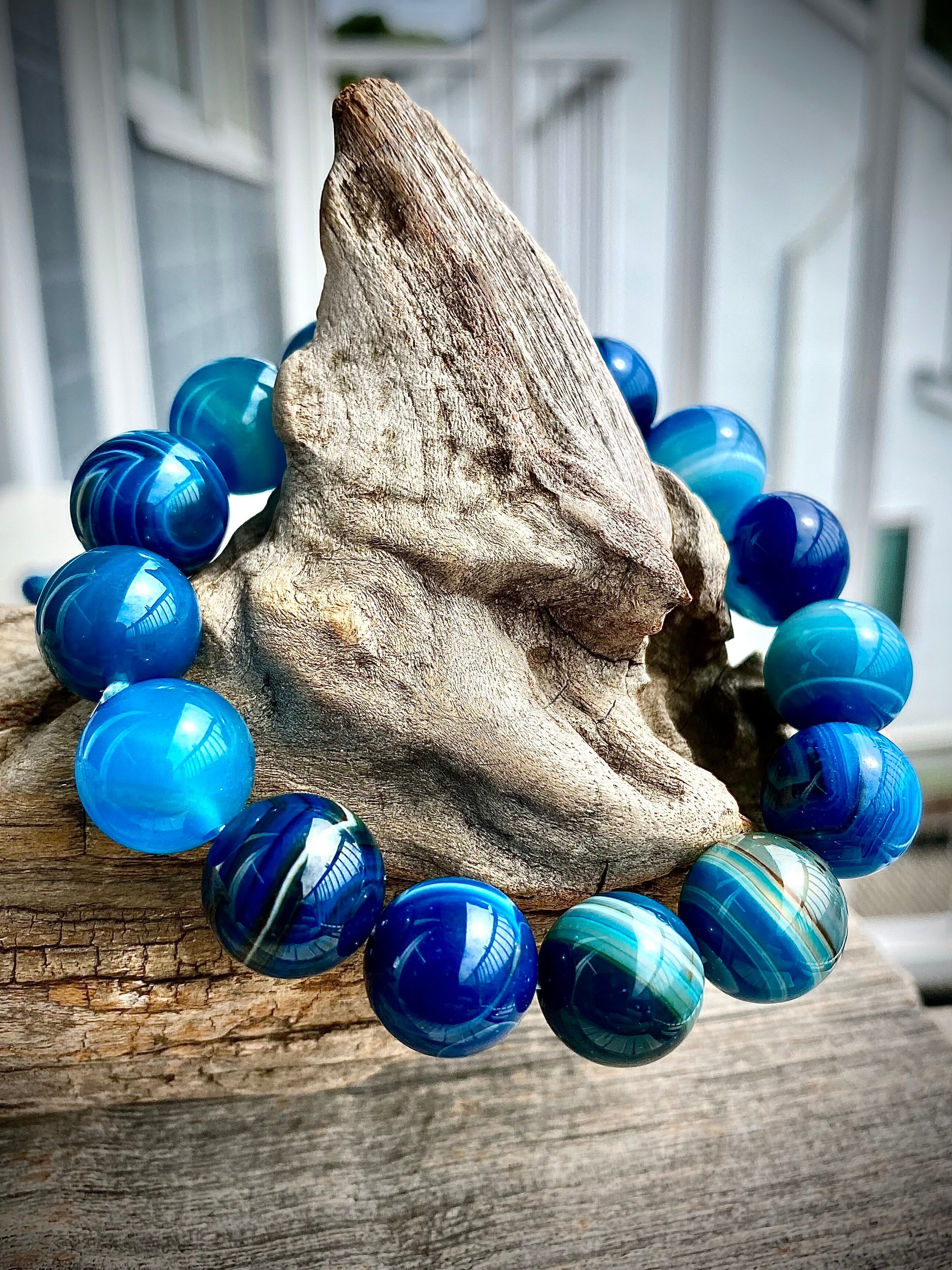瑪瑙専門ショップにて買い付けしました天然石ブルー瑪瑙染めブレスレットです。
