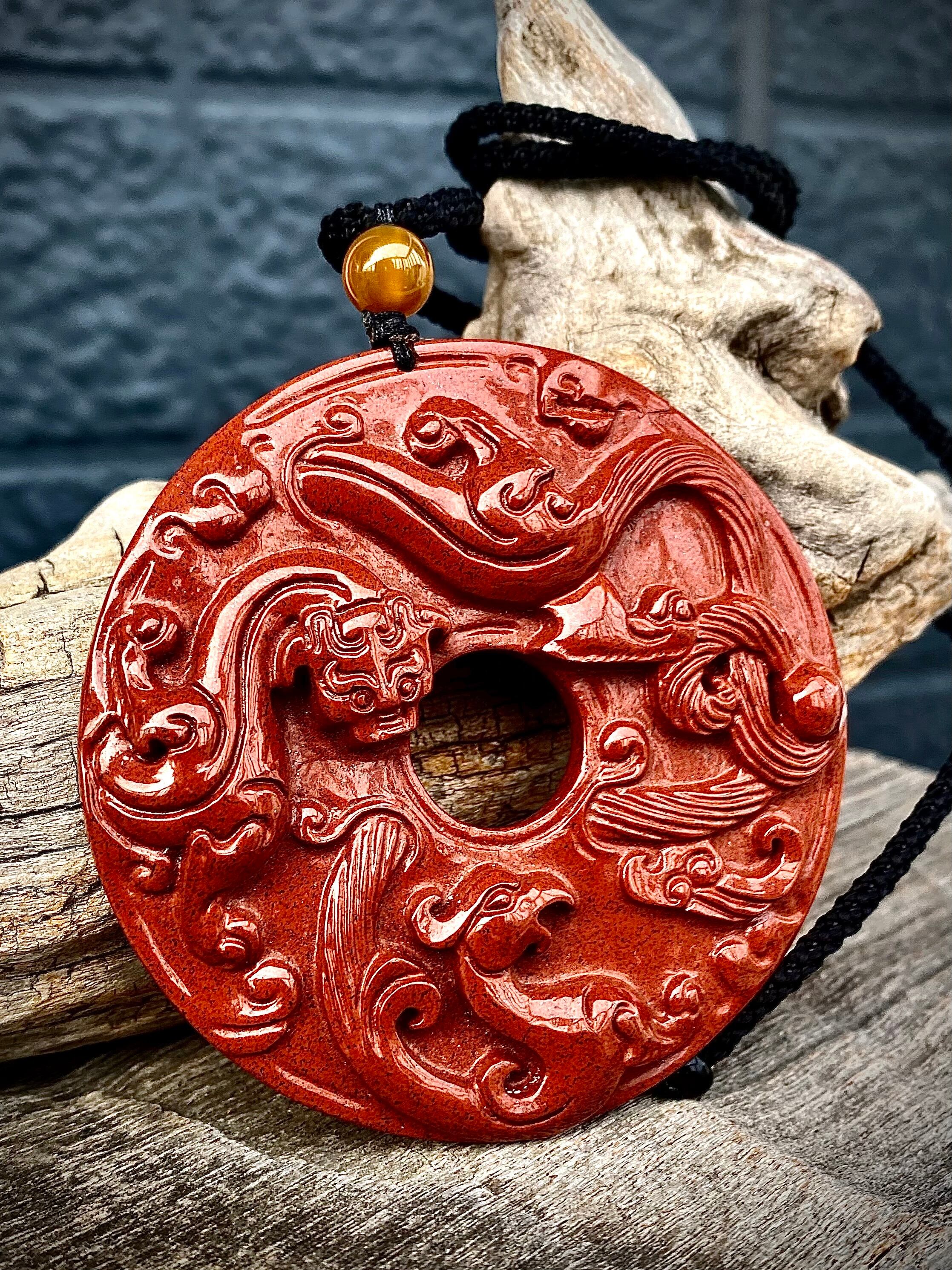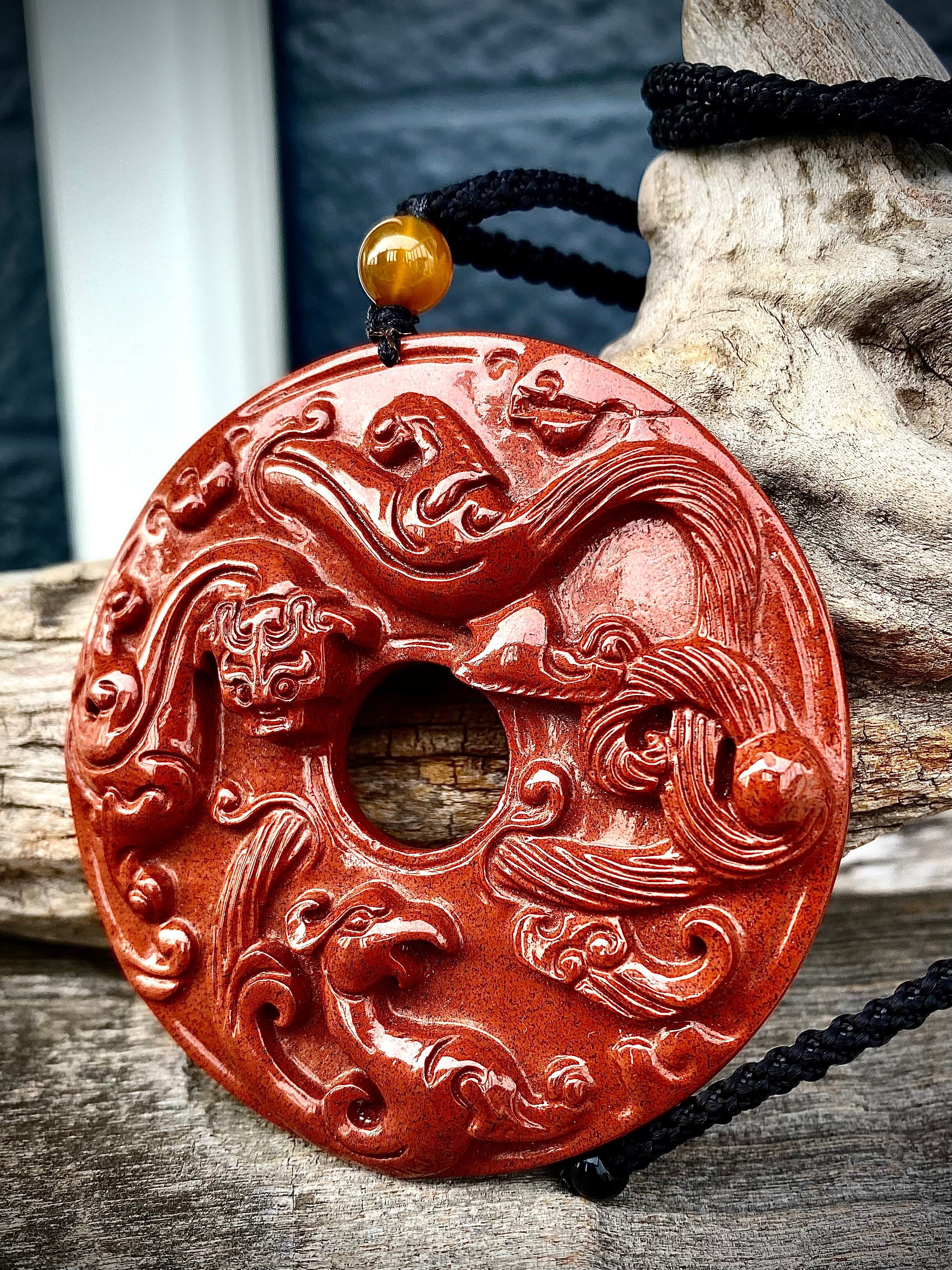 1点物のドラゴンカービングの珍しいジャスパーのペンダント。