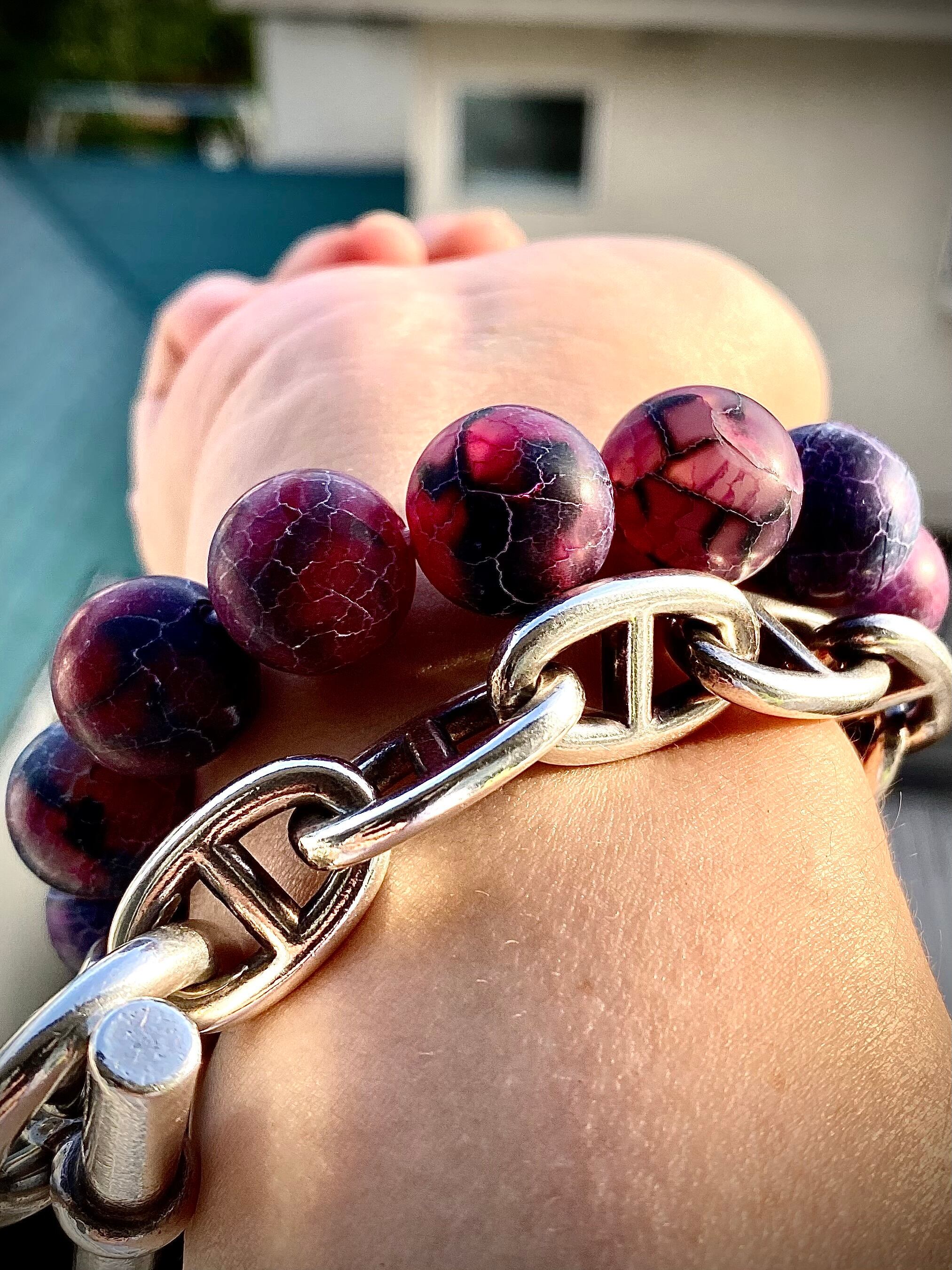 セレクトインポートしました天然石パープルドラゴンアゲートブレスレットです。