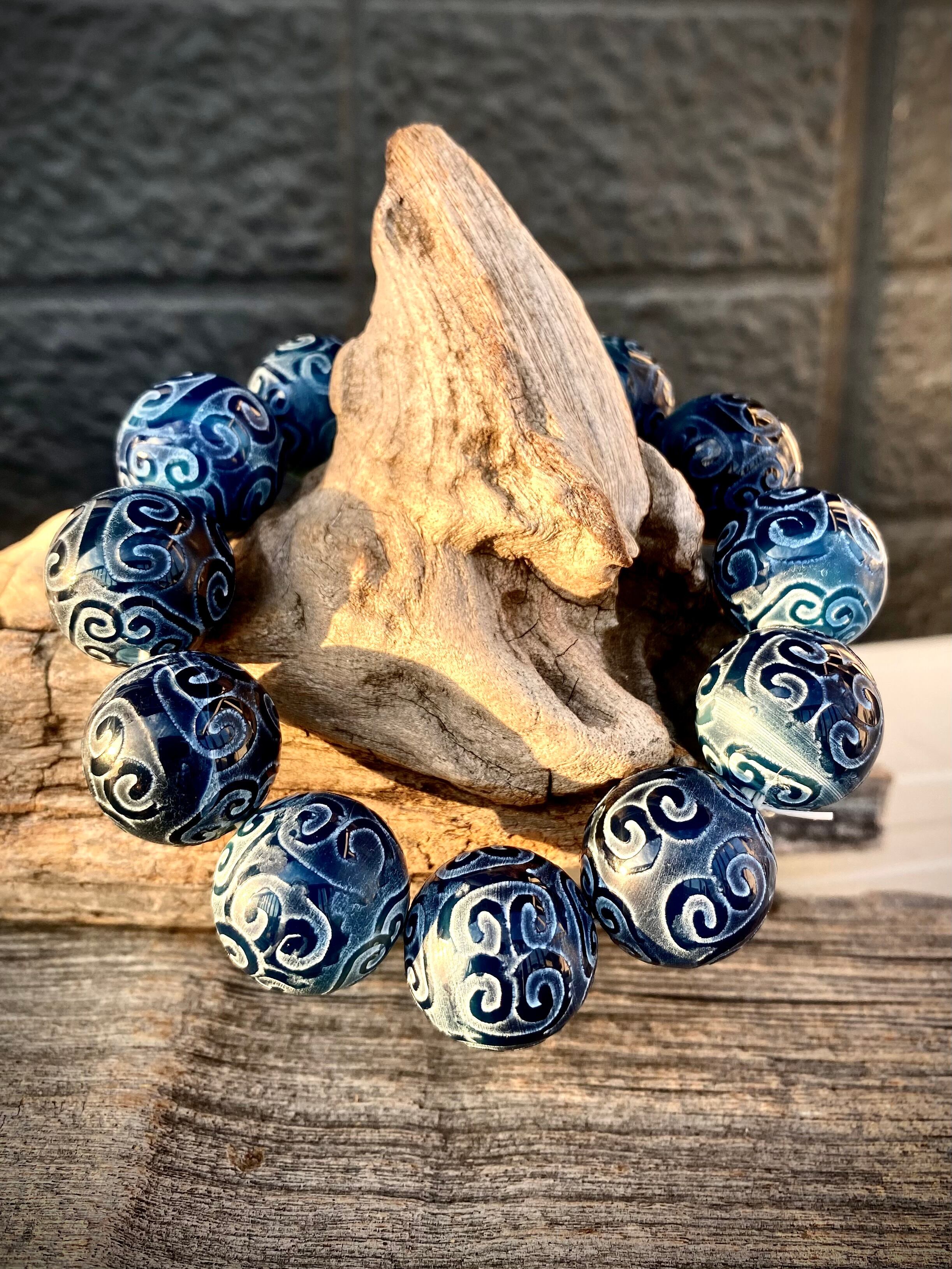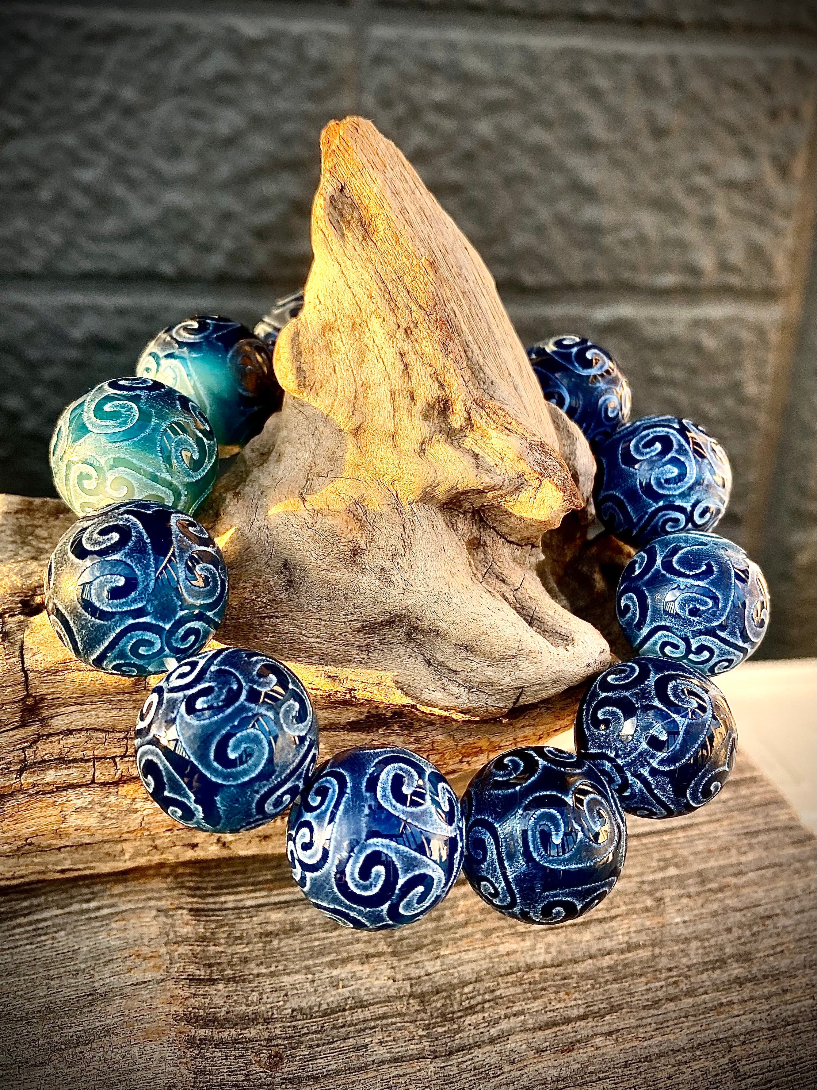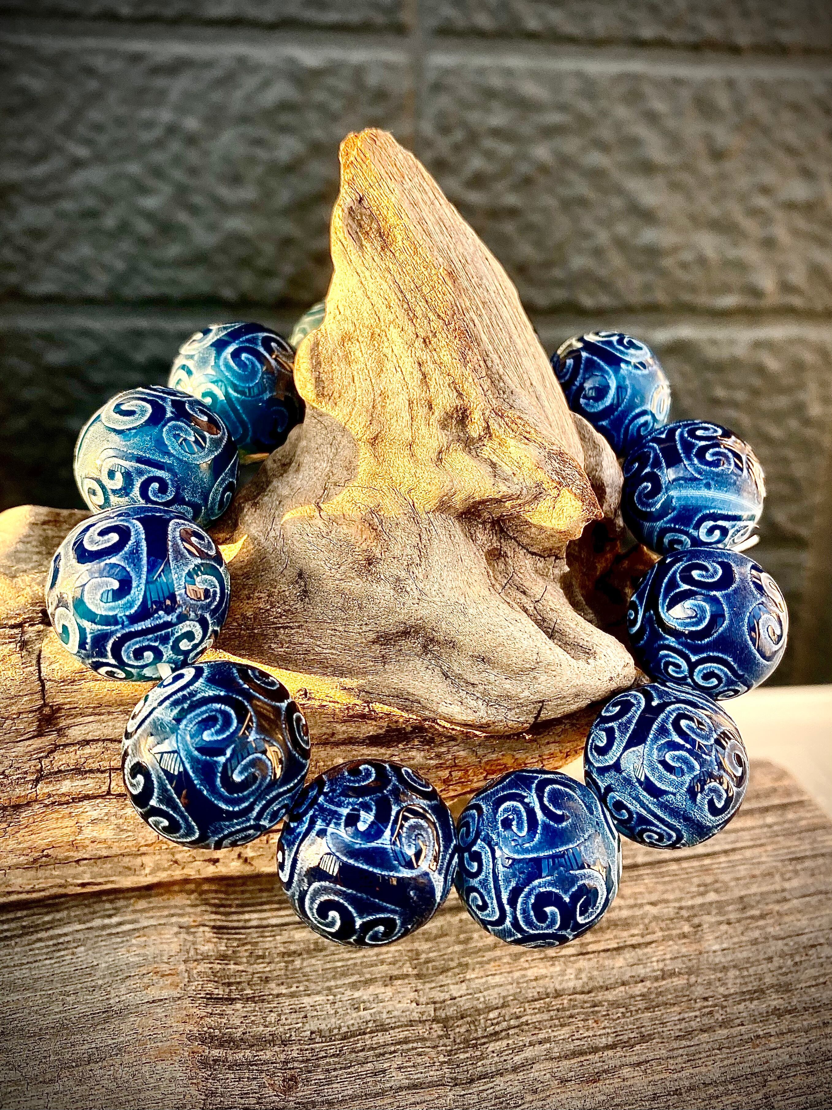 瑪瑙専門店にてセレクトしました、天然石ネイビーアゲート回紋珠ブレスレットです。