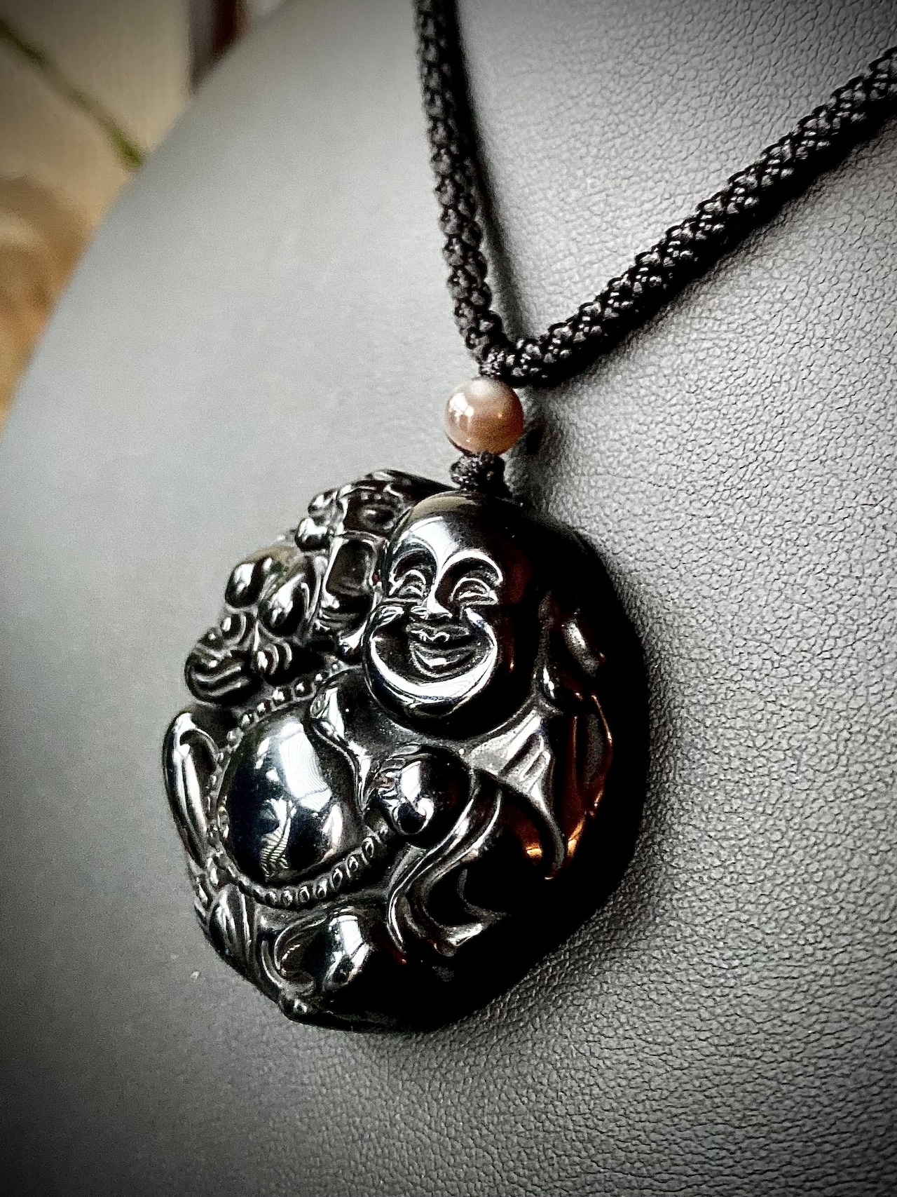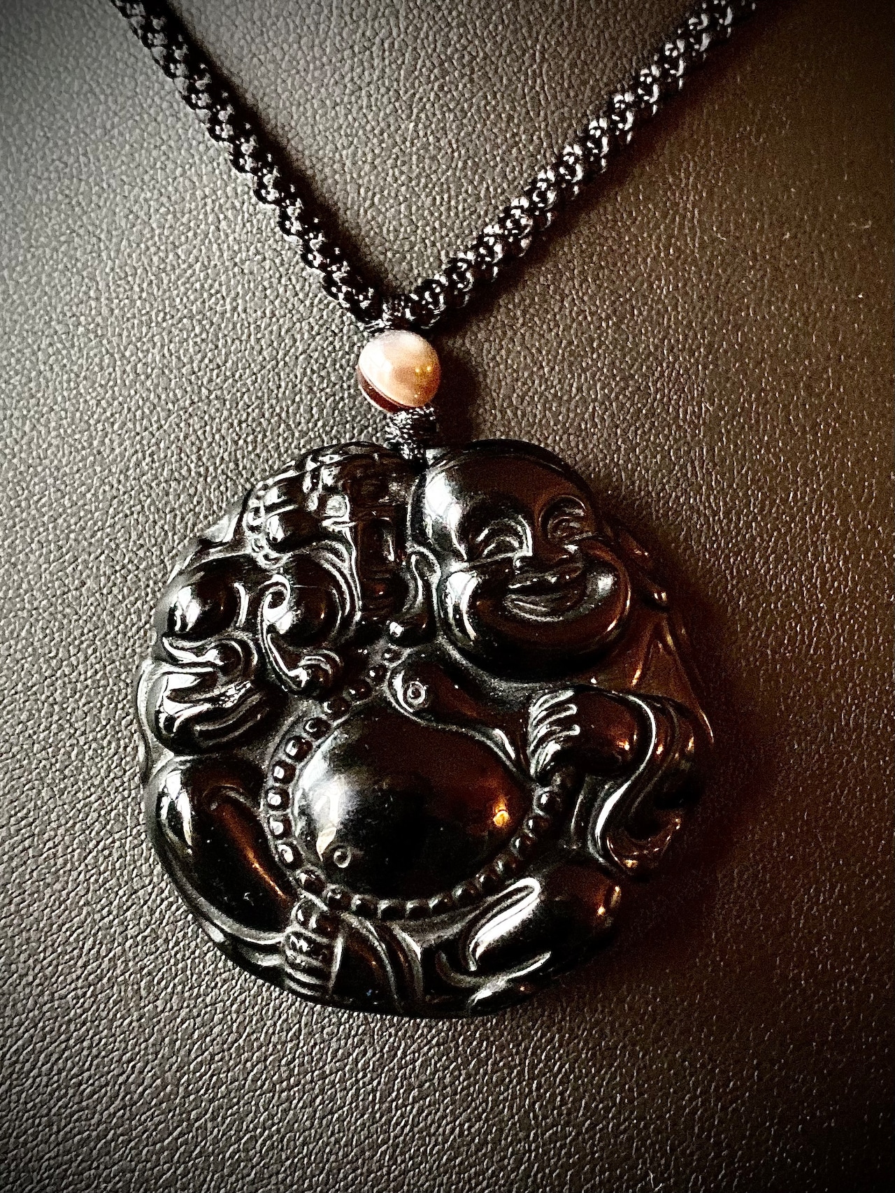 Reserved Power stone Black onyx Happy Buddha Pendant