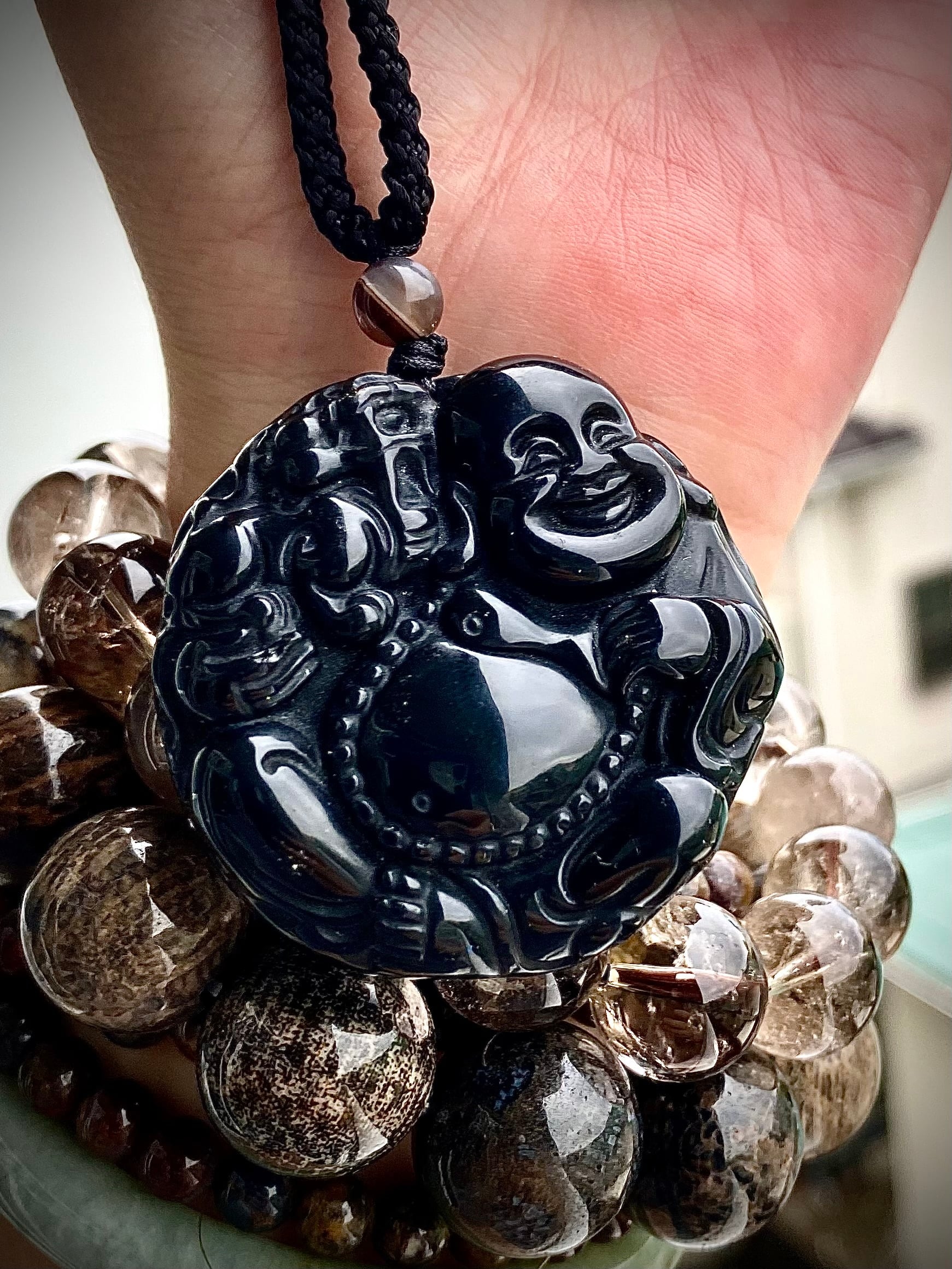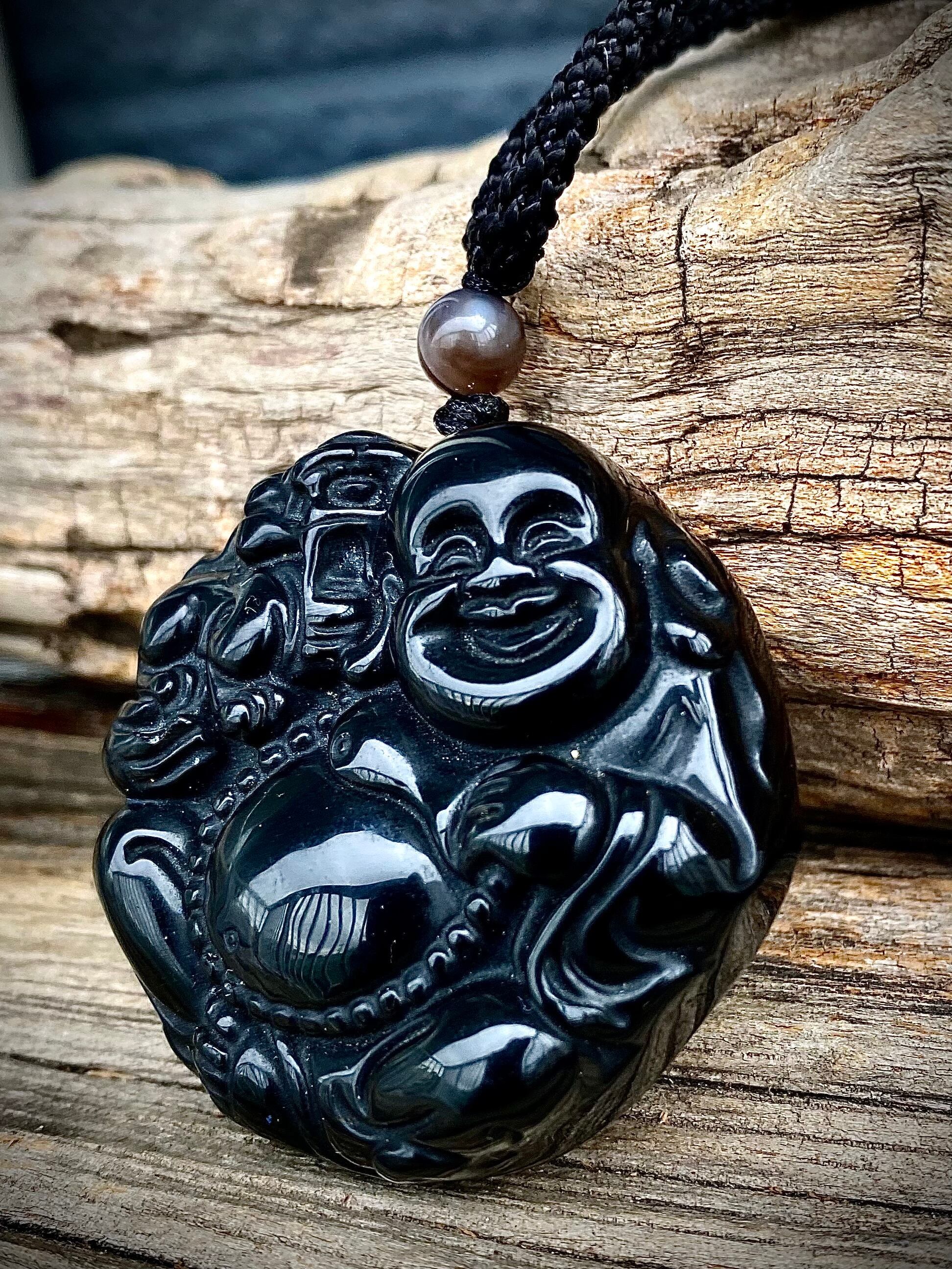 セレクトインポートしました天然石ブラックオニキスの布袋様ペンダントです。