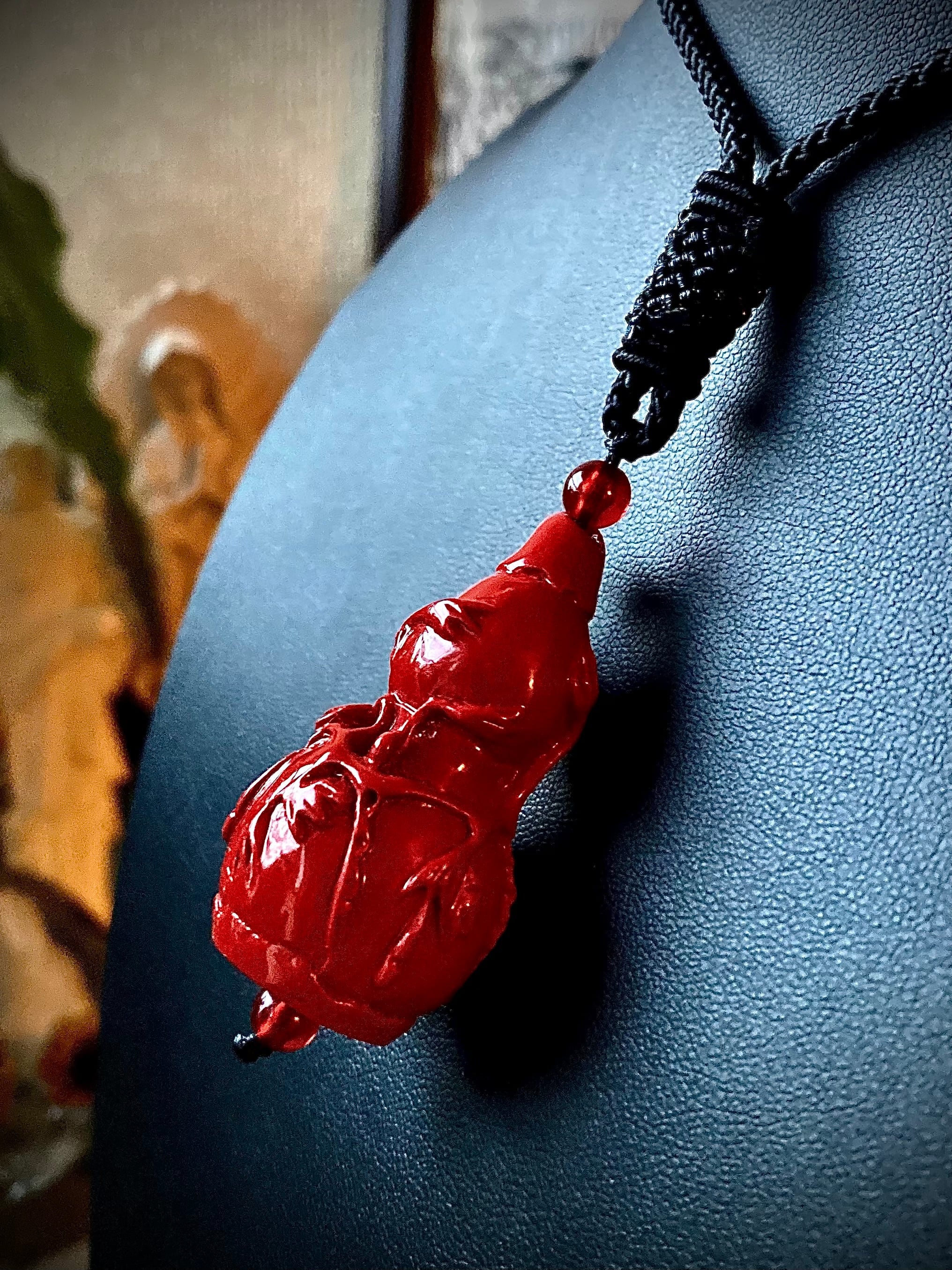 セレクトインポートしました天然石レッドシナバーひょうたんペンダント。