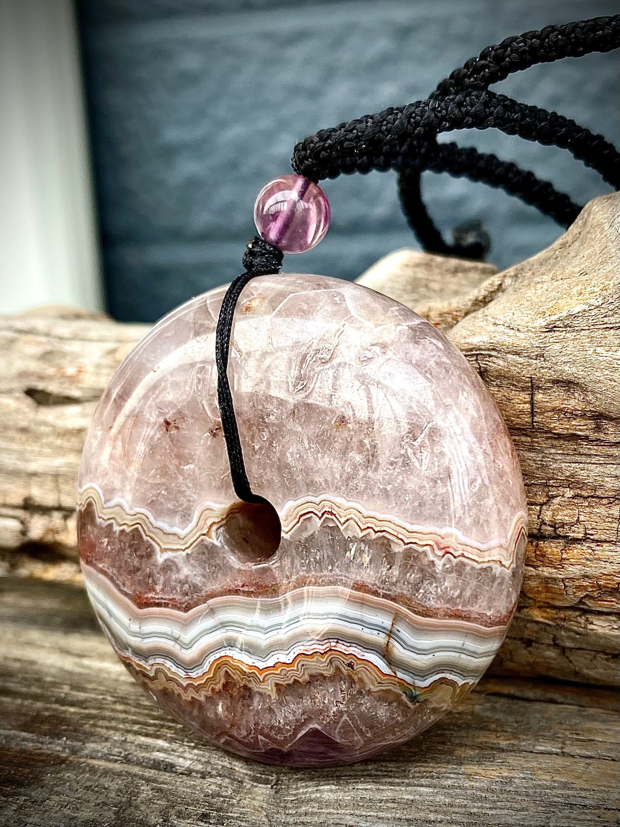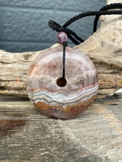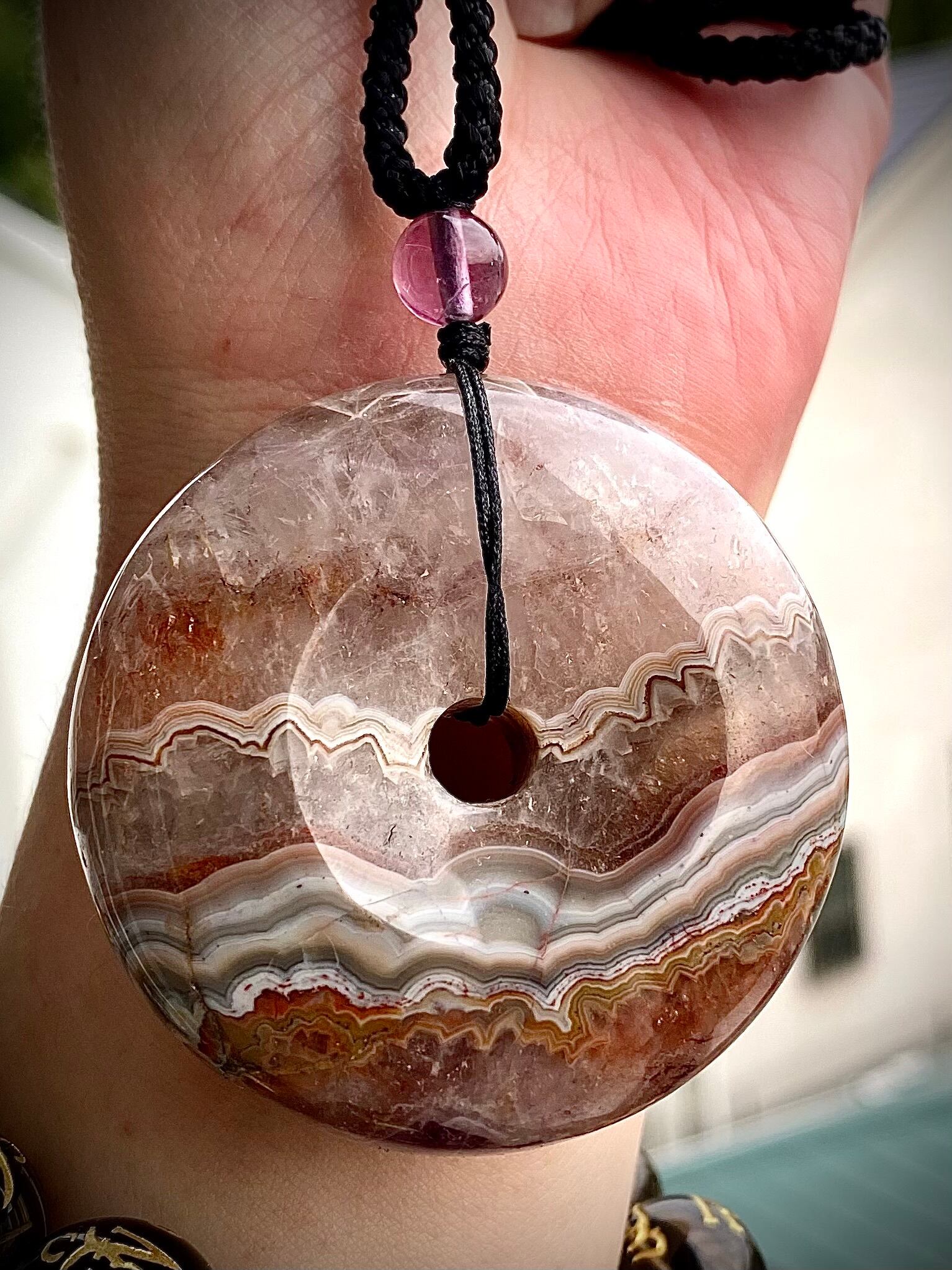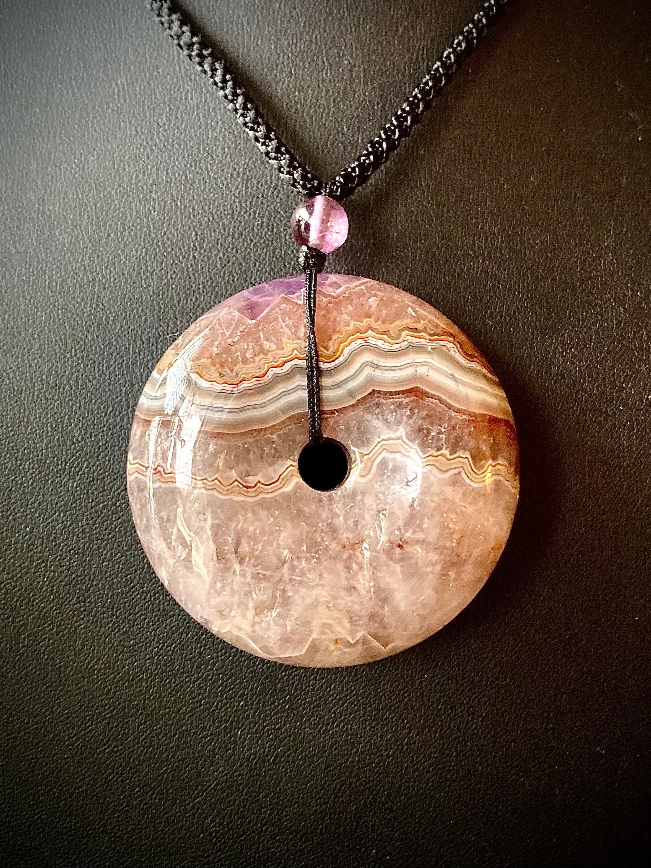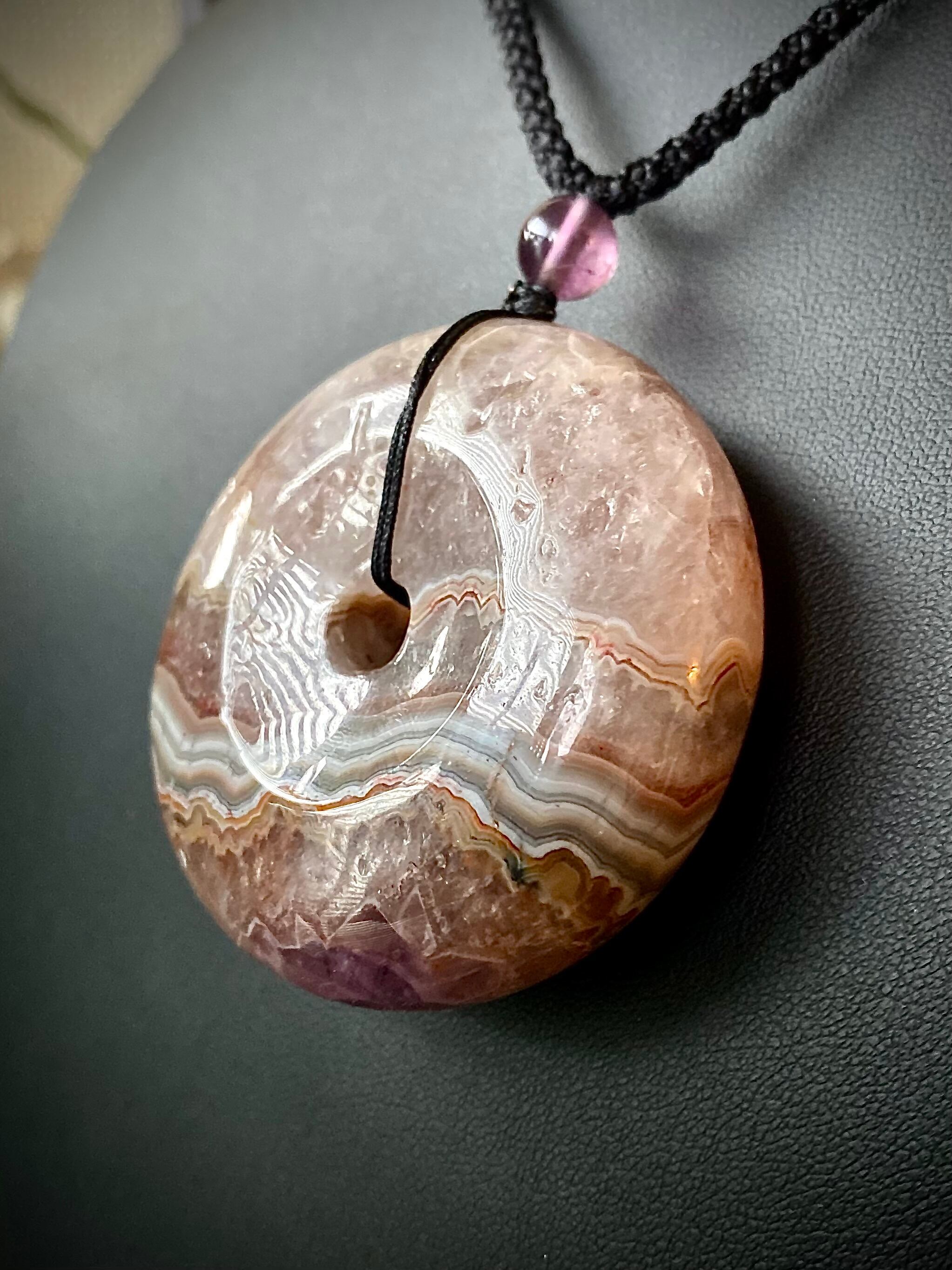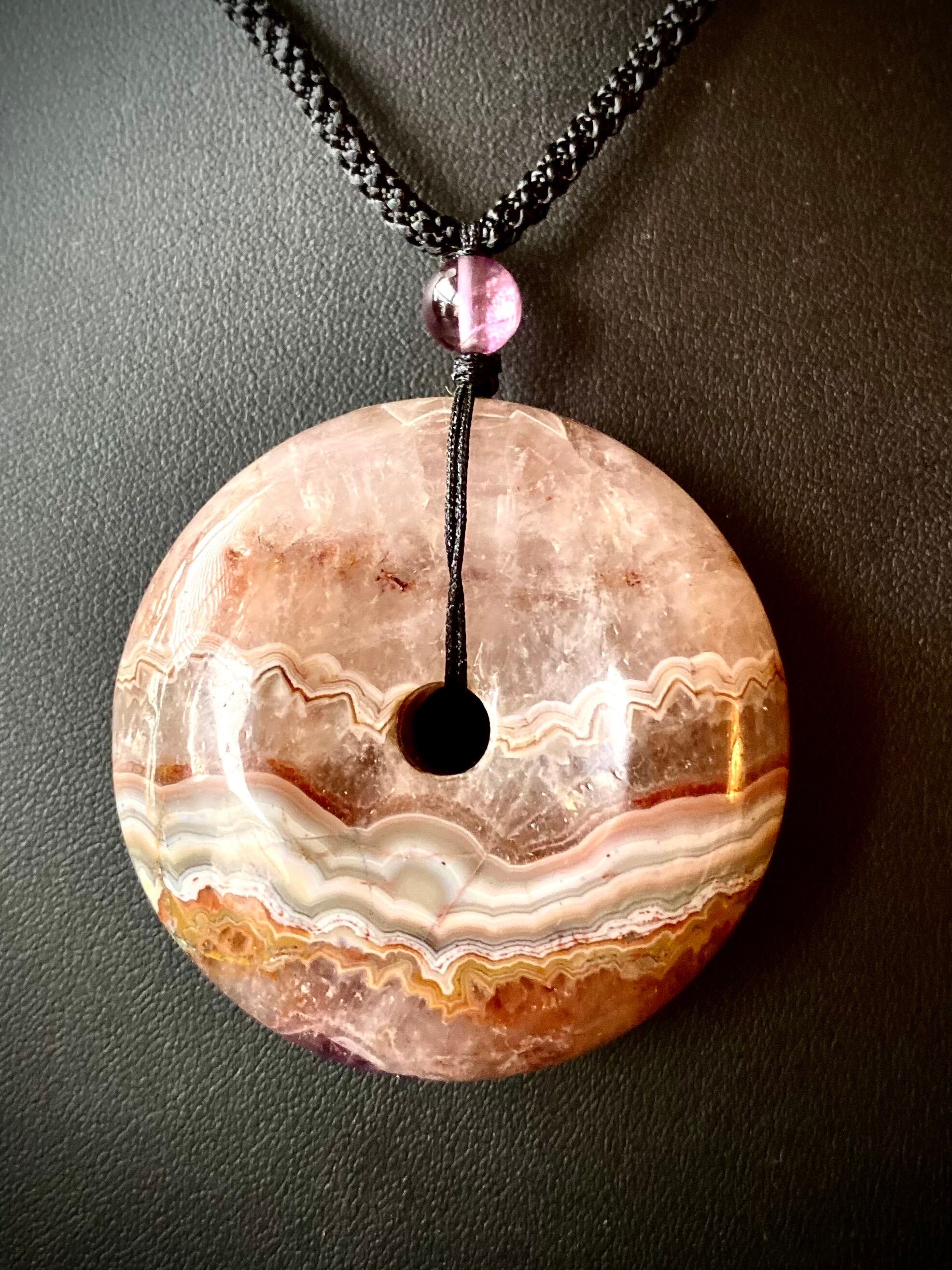 セレクトインポートしました天然石アゲートインアメジストドーナツペンダントです。