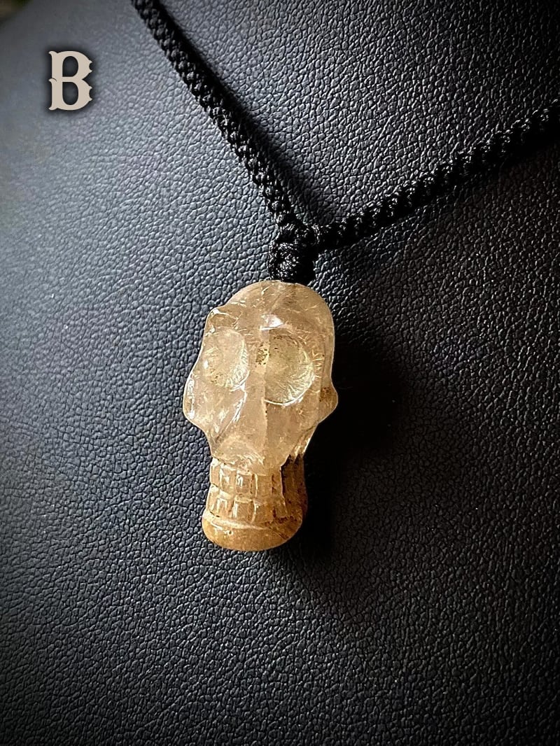 Power stone Golden Hair (Ruitlated Quartz) Mini Skull Head Pendant A/B/C/D