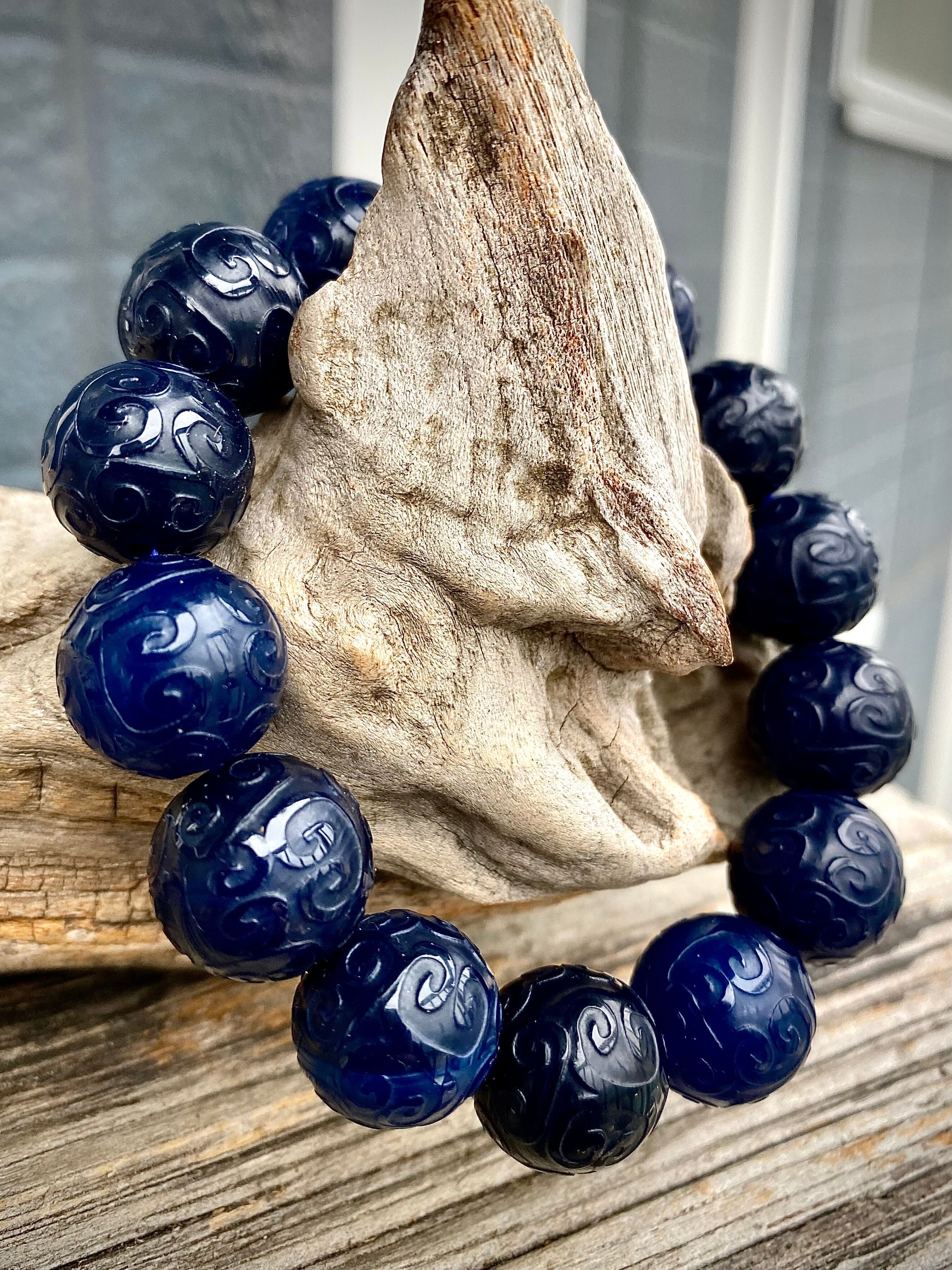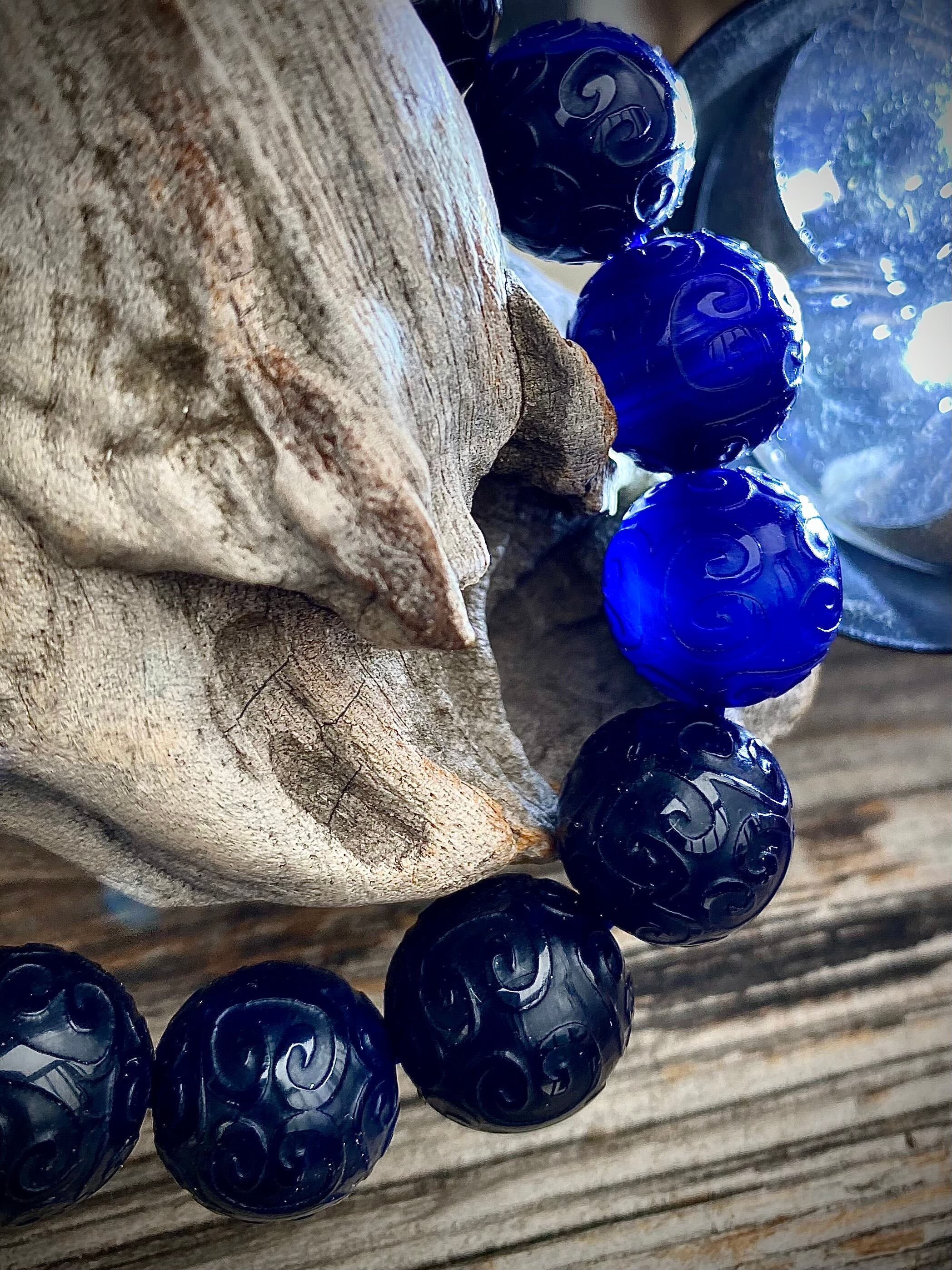 瑪瑙専門店にてセレクトしました、天然石ブルーアゲート回紋珠ブレスレットです。