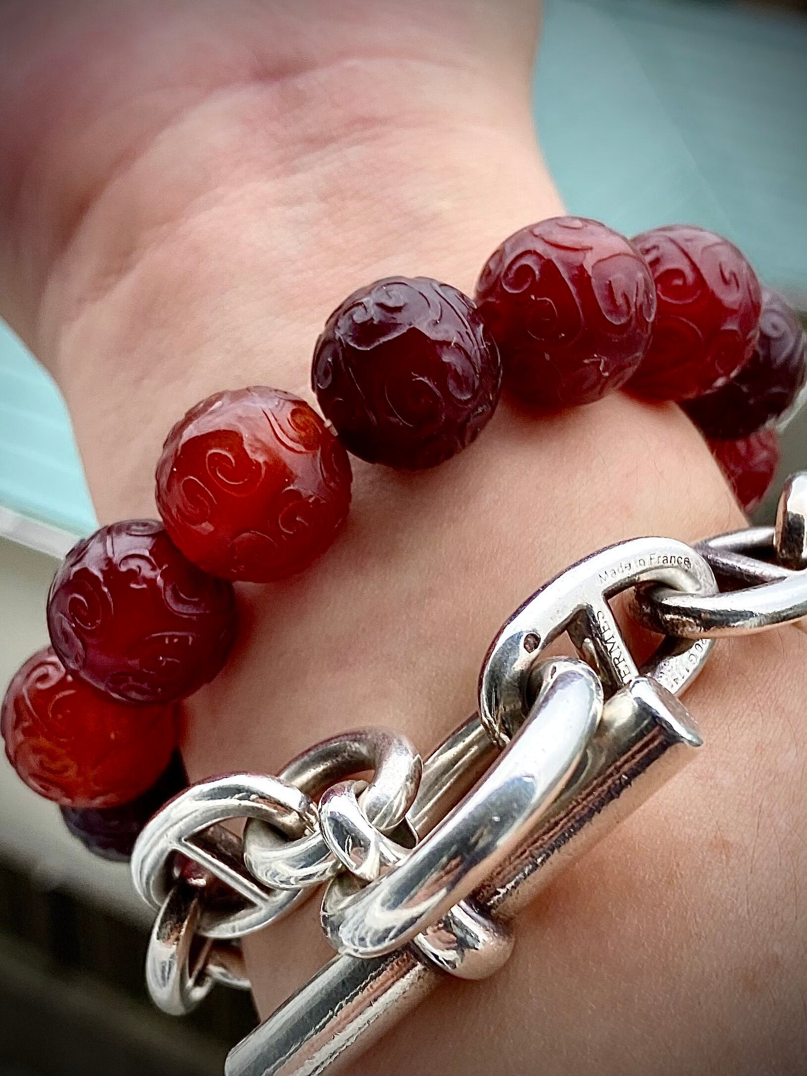 瑪瑙専門店にてセレクトしました、天然石レッドアゲート回紋珠ブレスレットです。