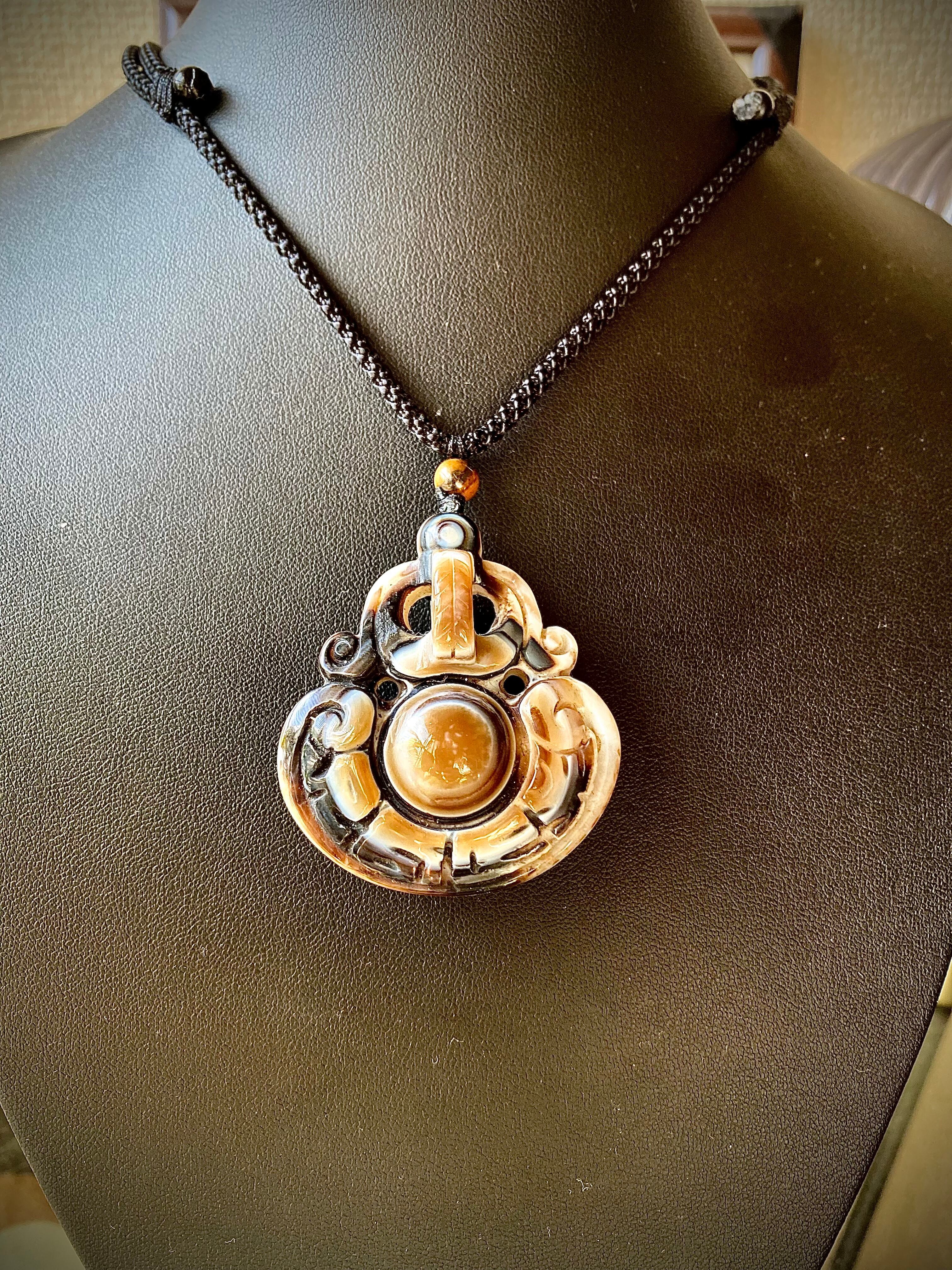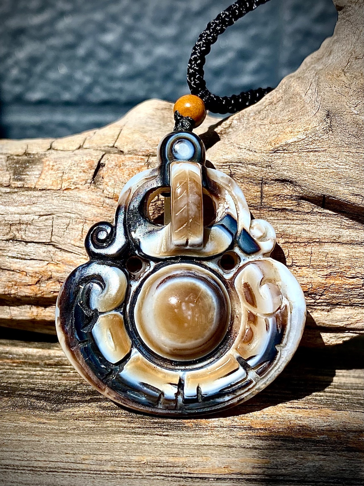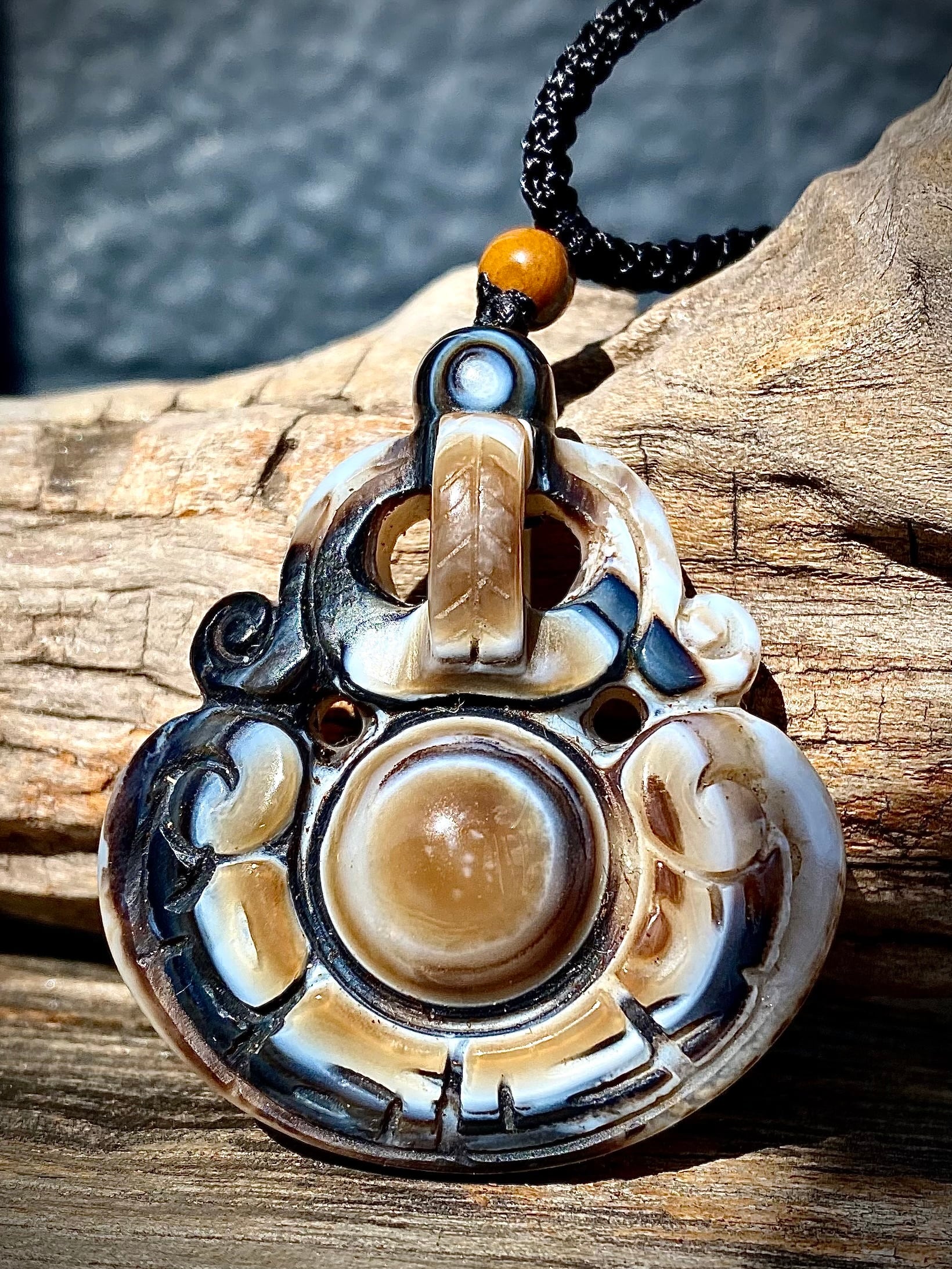セレクトインポートしました天然石アイアゲート(瑪瑙)のカービングペンダントです。
