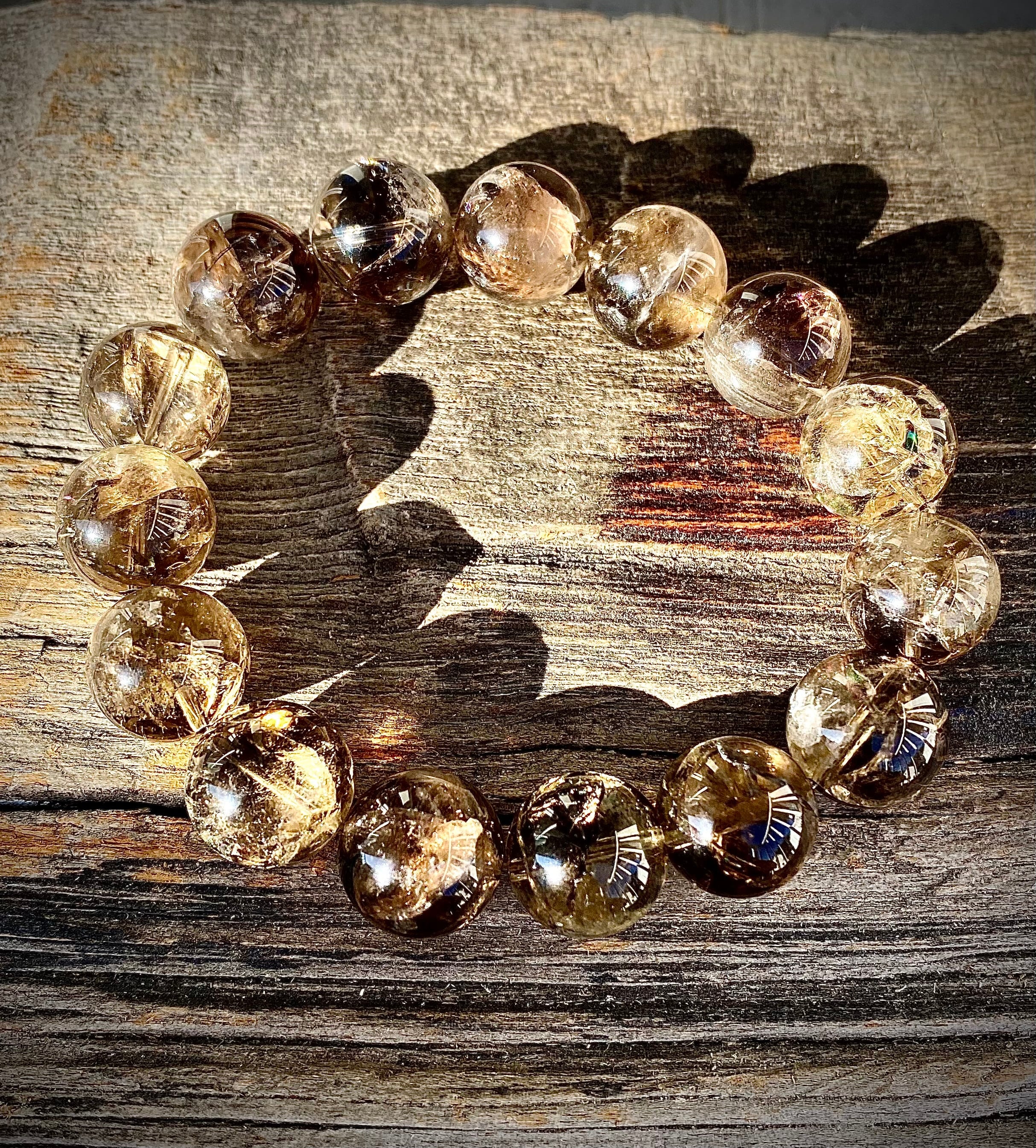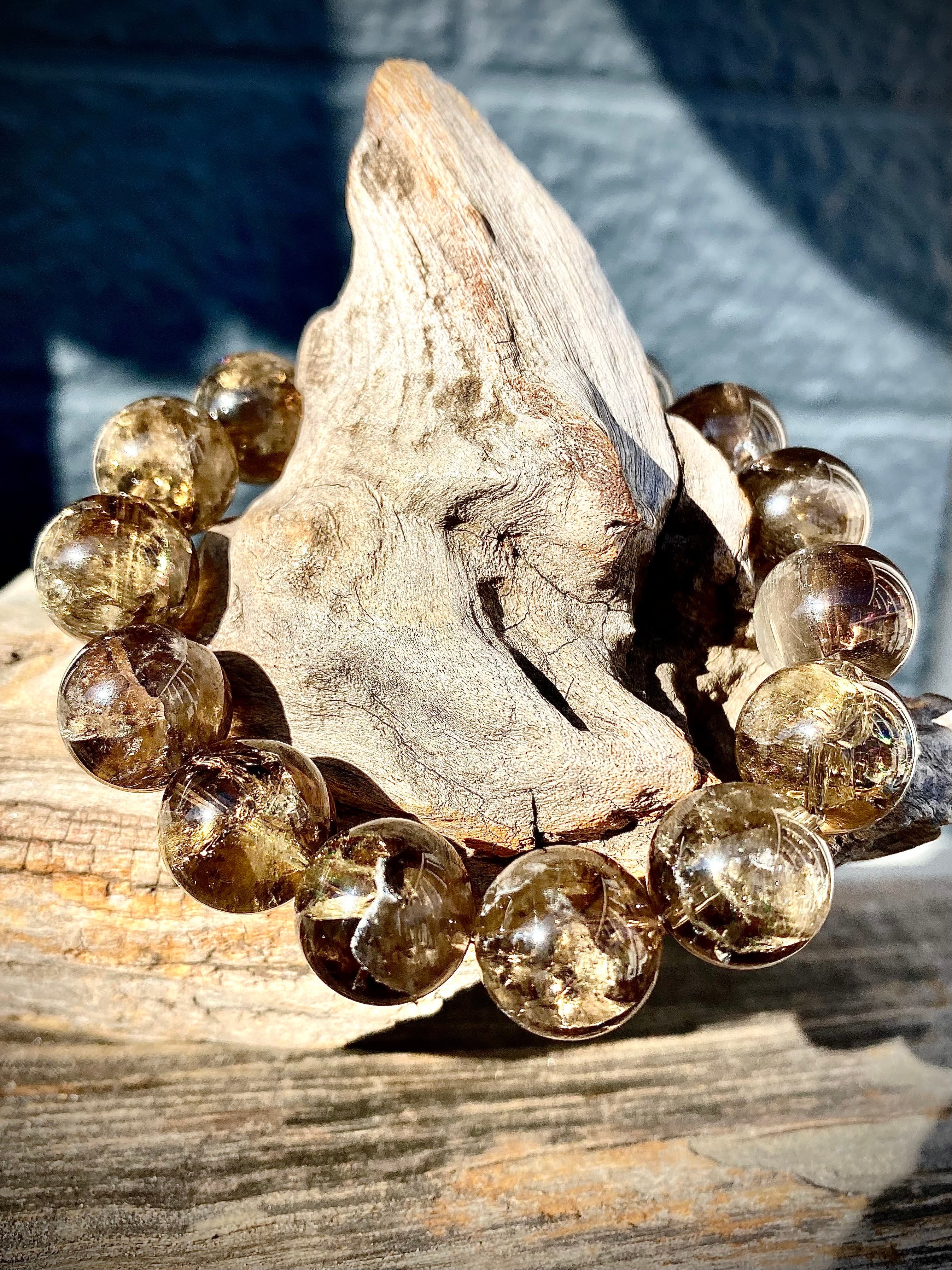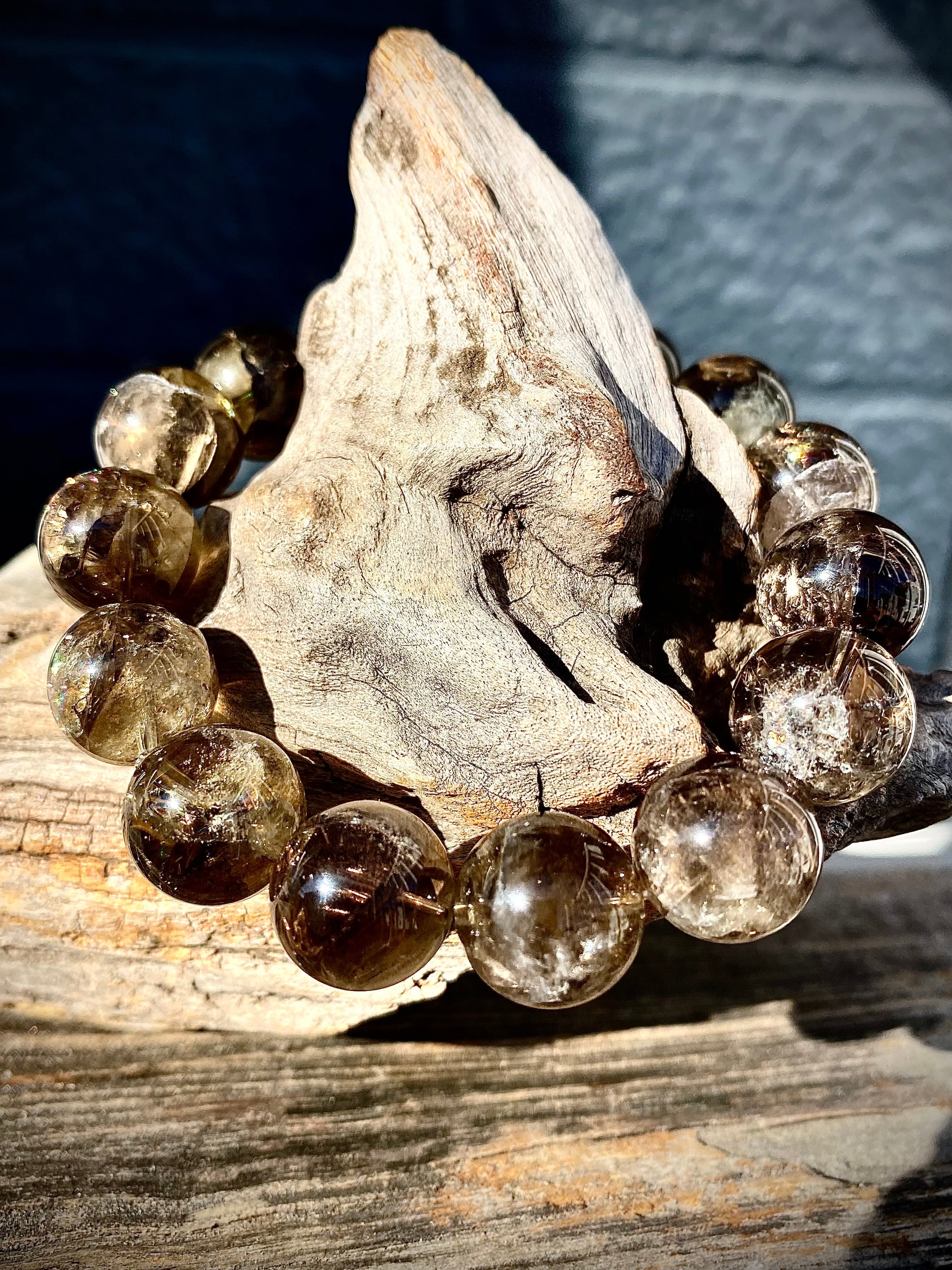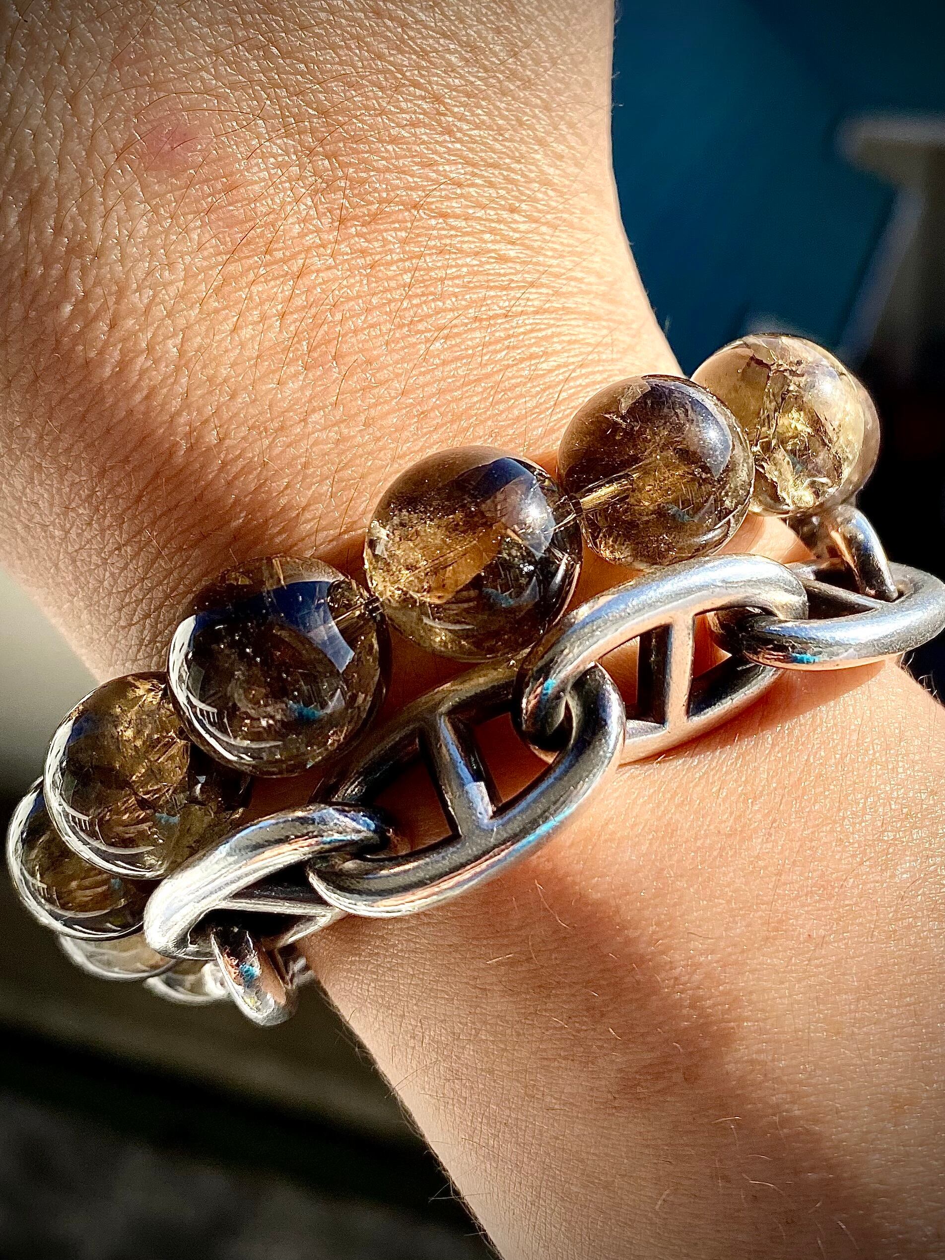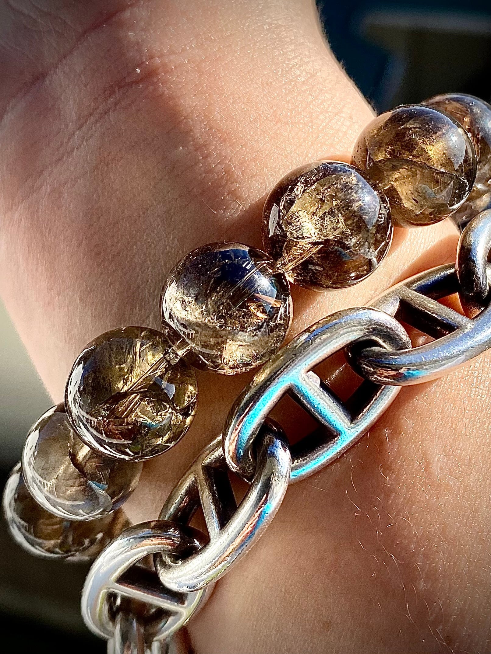 セレクトインポートしましたナチュラルアイリスインスモーキークォーツブレスレットです。