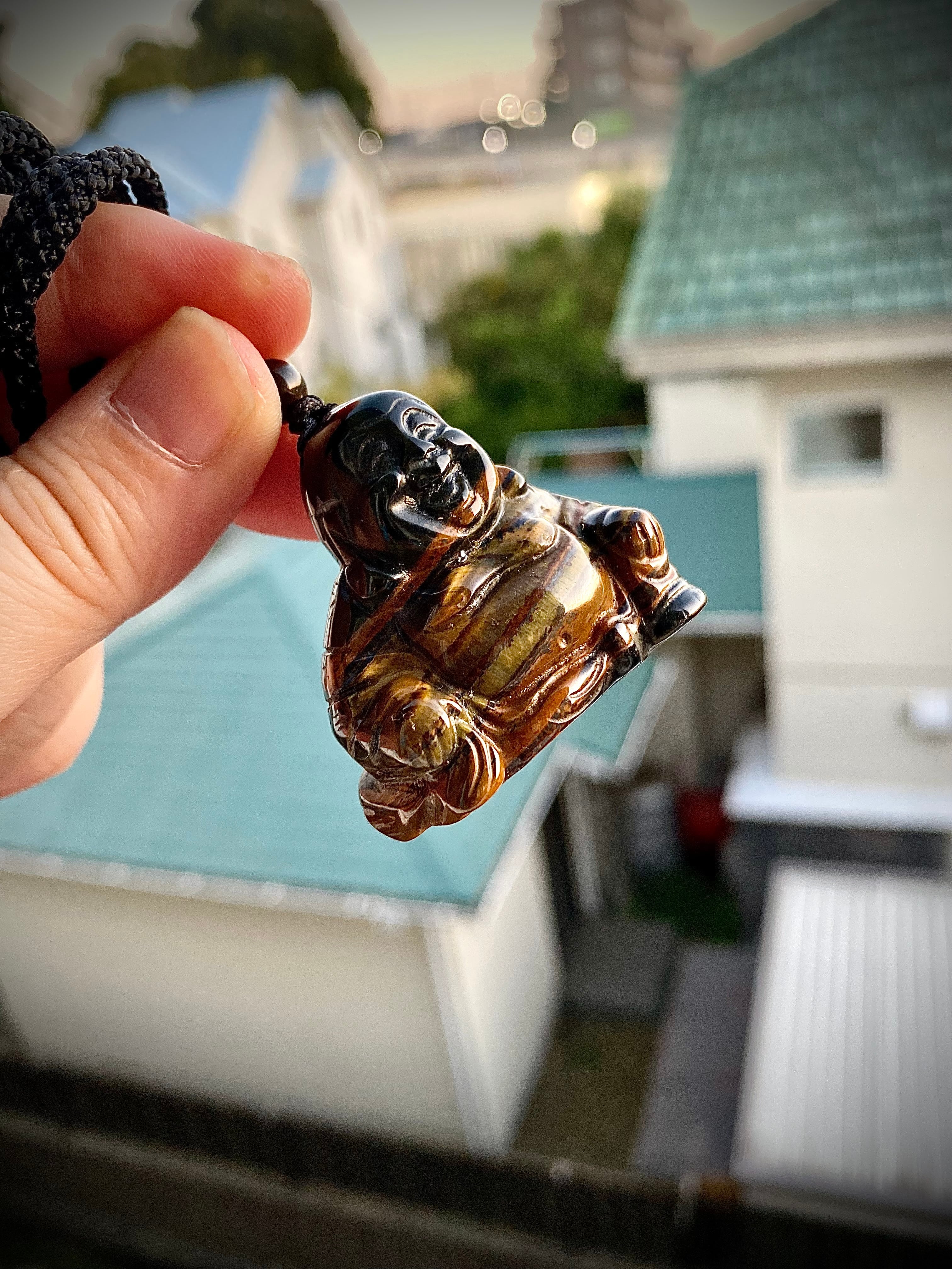 セレクトインポートしました天然石イエロータイガーアイハッピーブッダペンダントです。