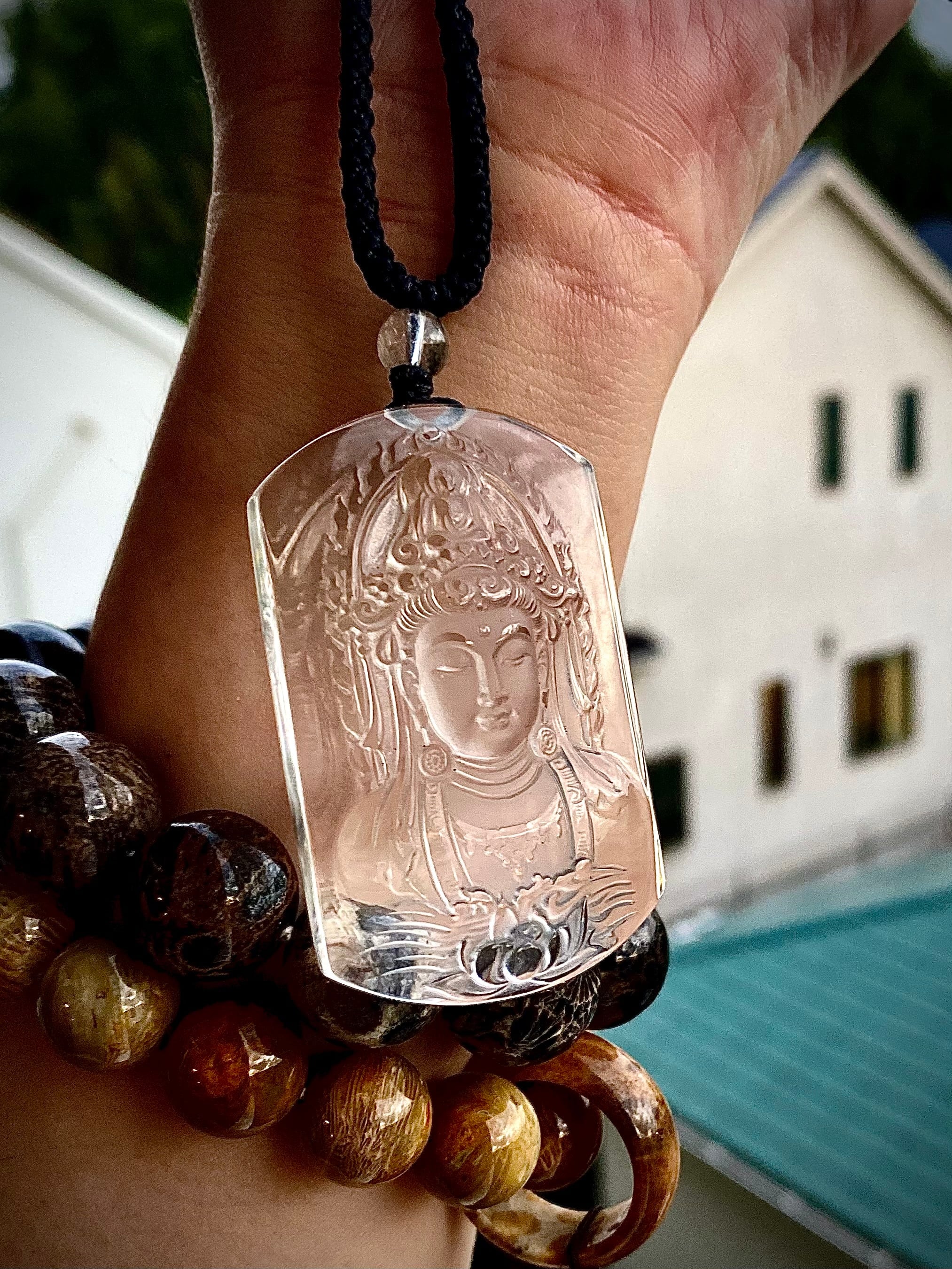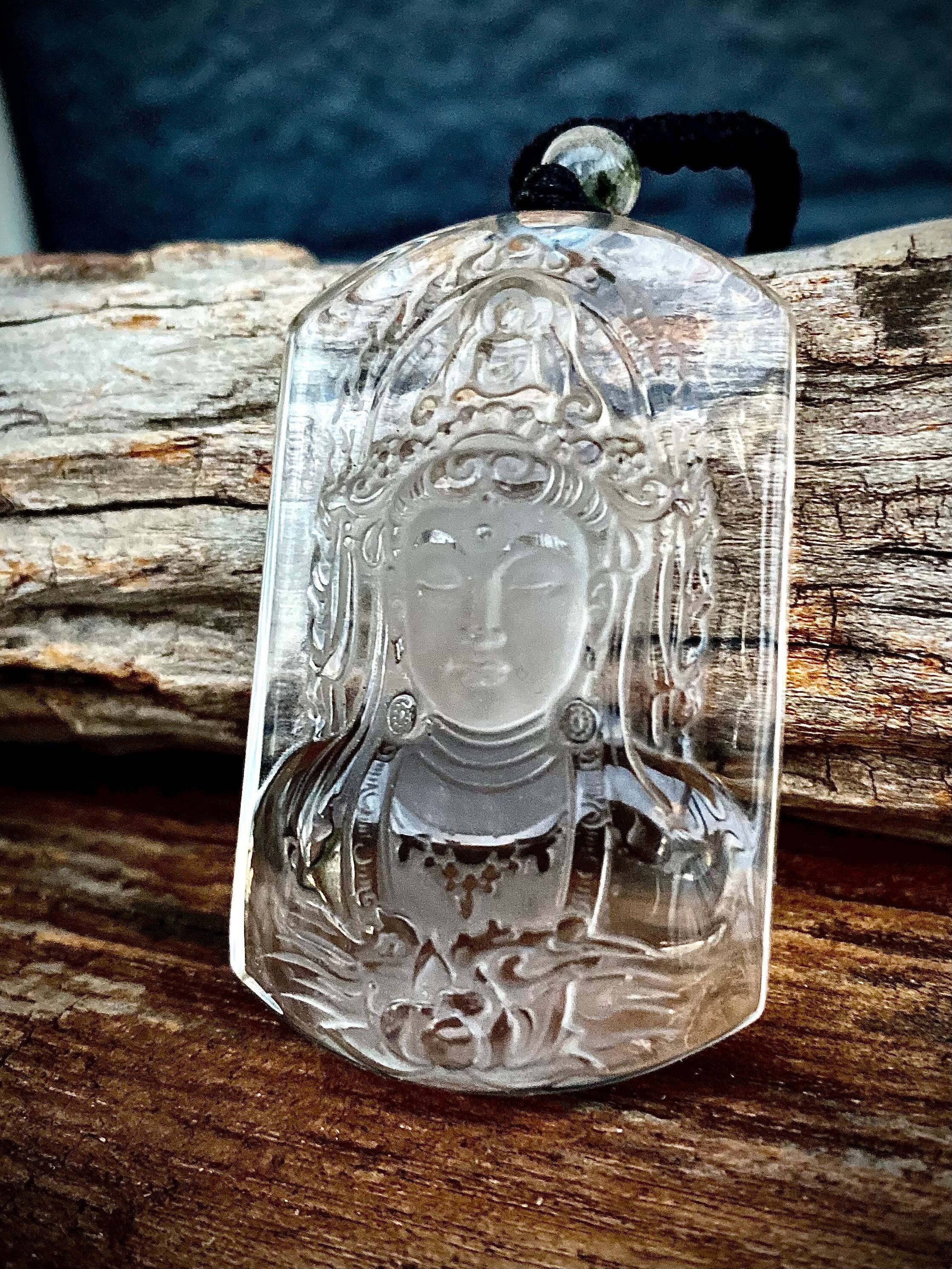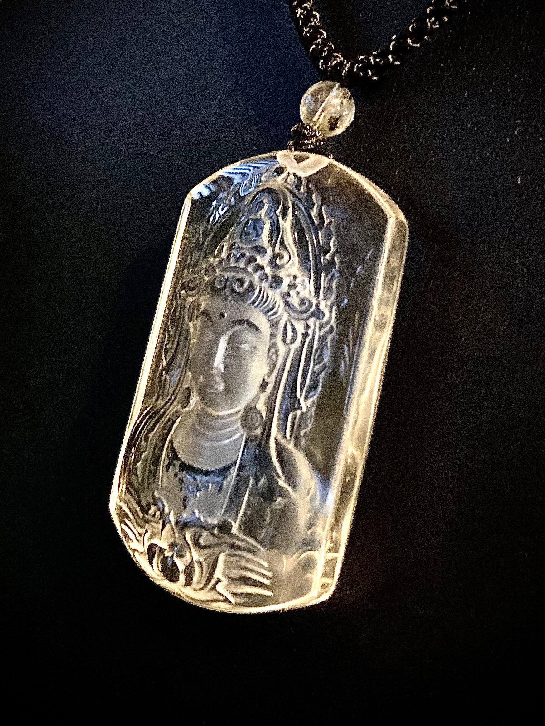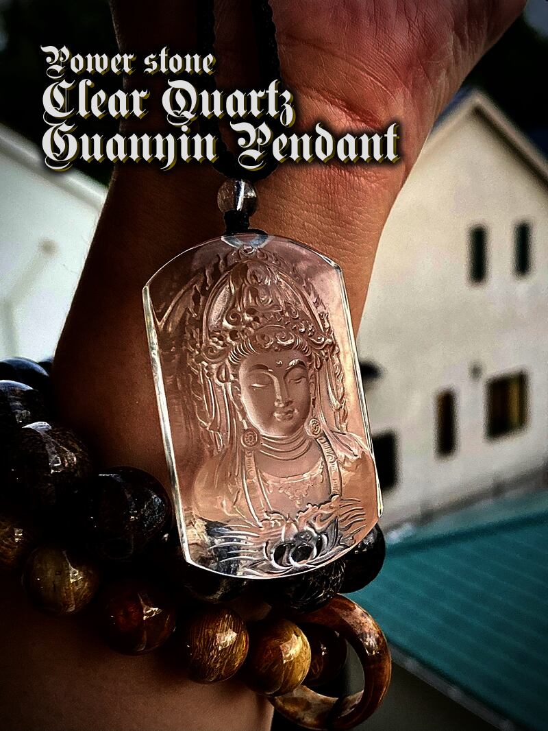 Power stone High Quality Clear Quartz Guanyin Large Pendant