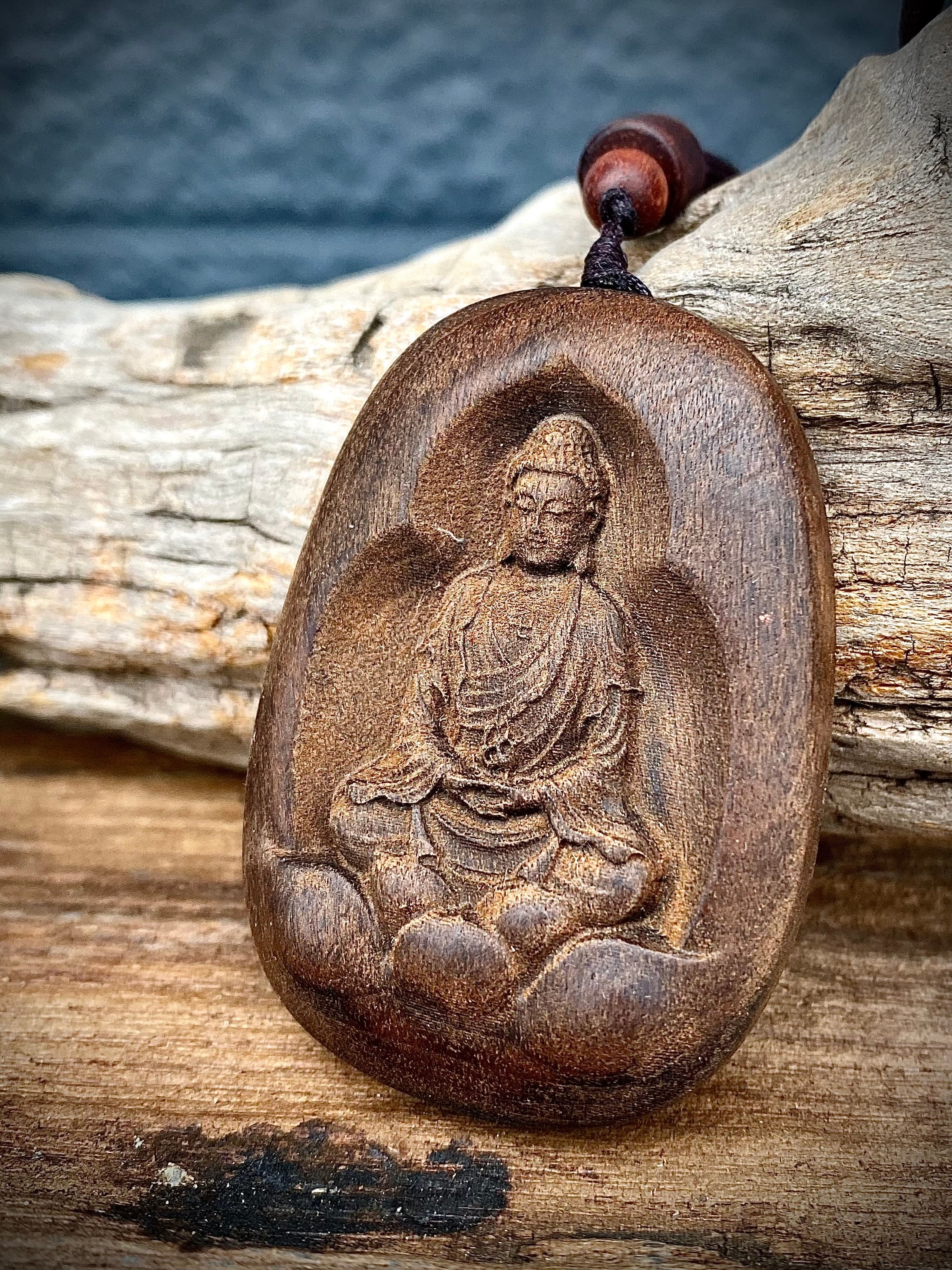セレクトインポートしましたウッドカービング観音菩薩ペンダントです。