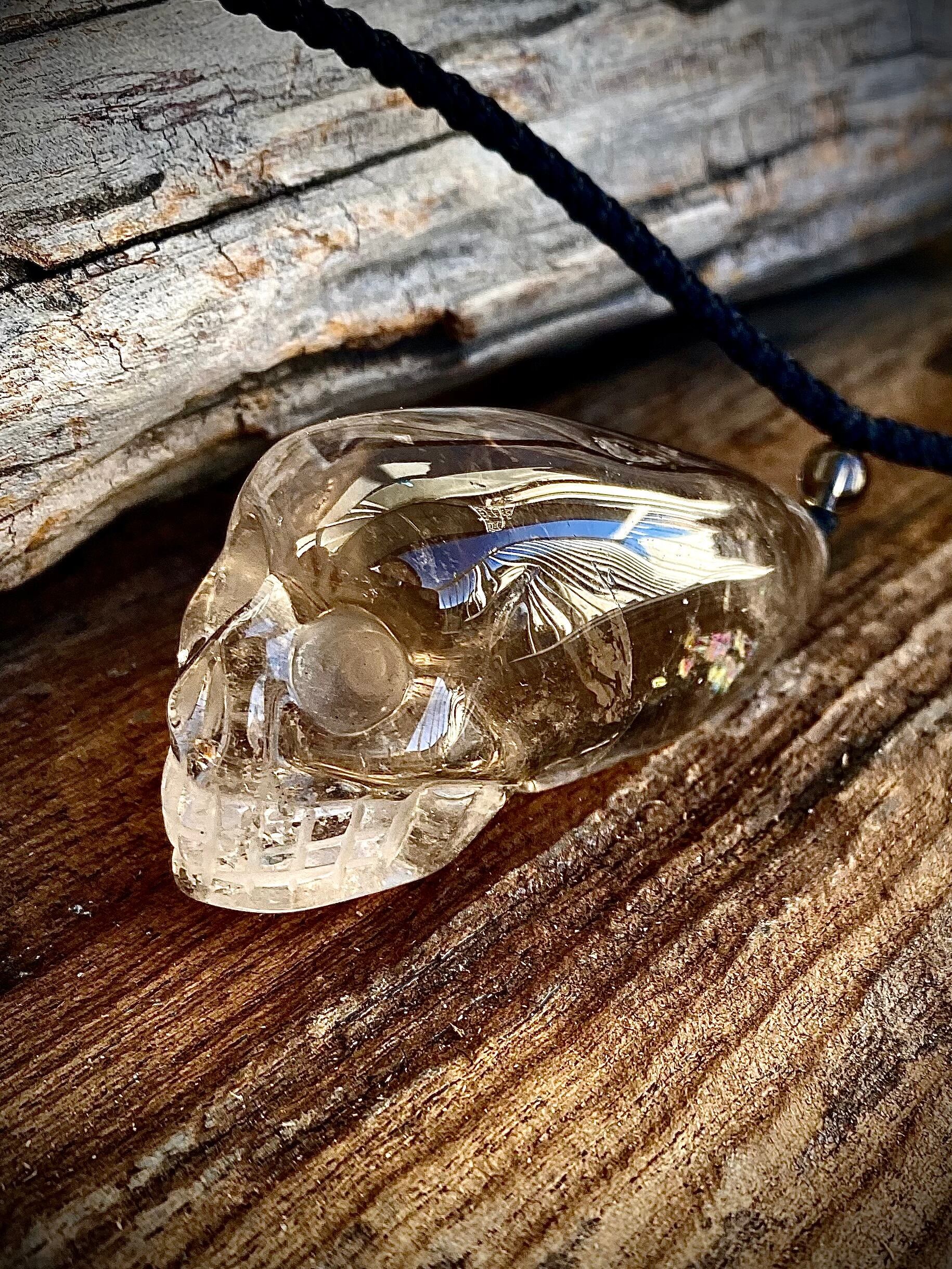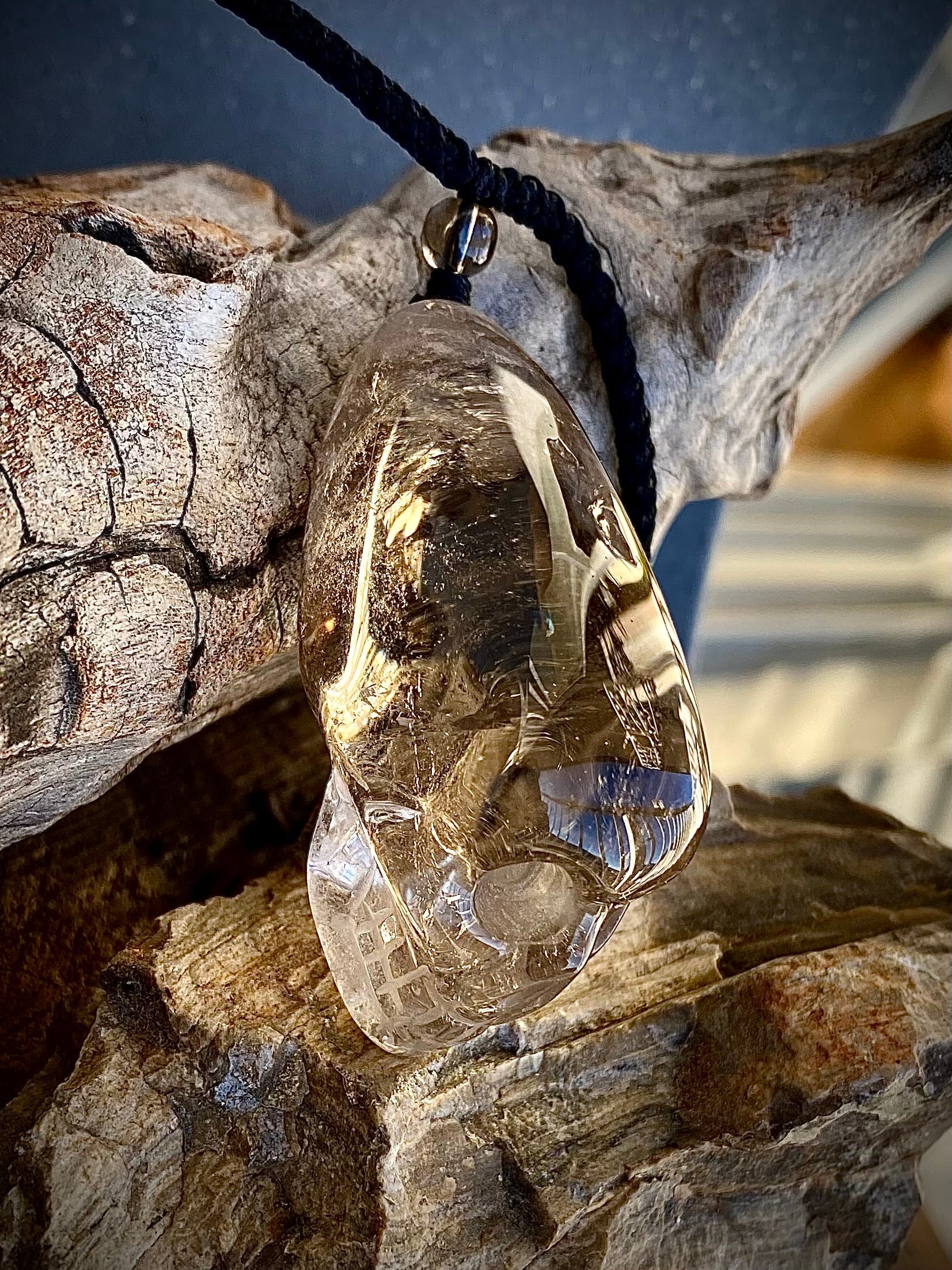 セレクトインポートしました天然石スモーキークォーツスカルロングヘッドペンダント。