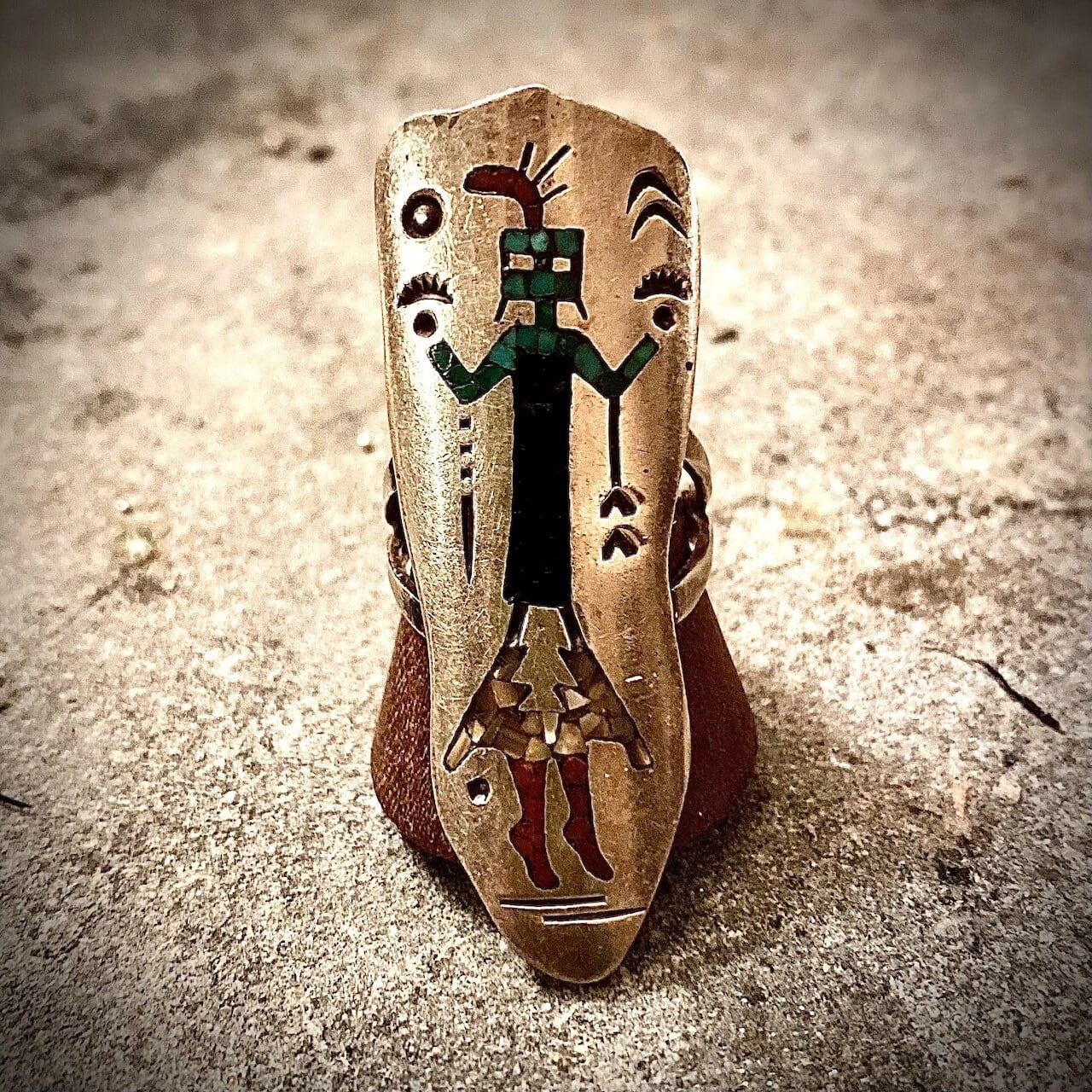 ターコイズチップインレイのカチーナリングです。刻印にイーグルスタンプが入っています。