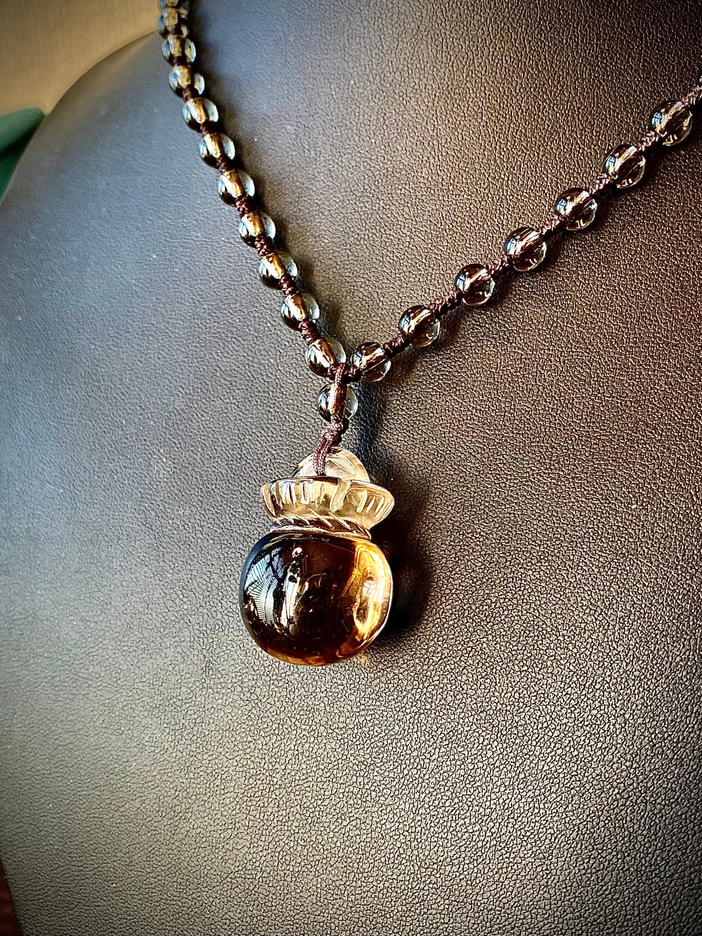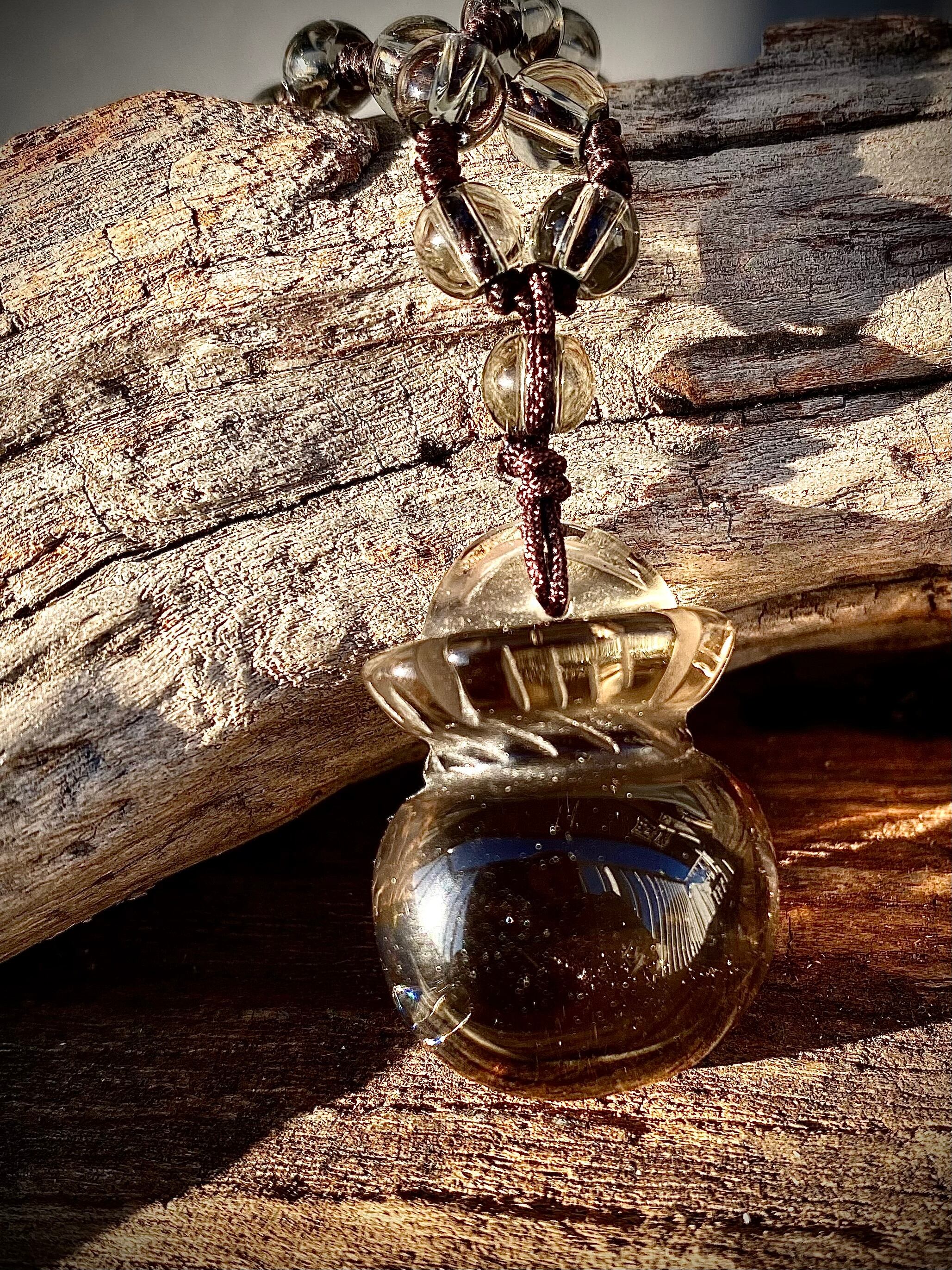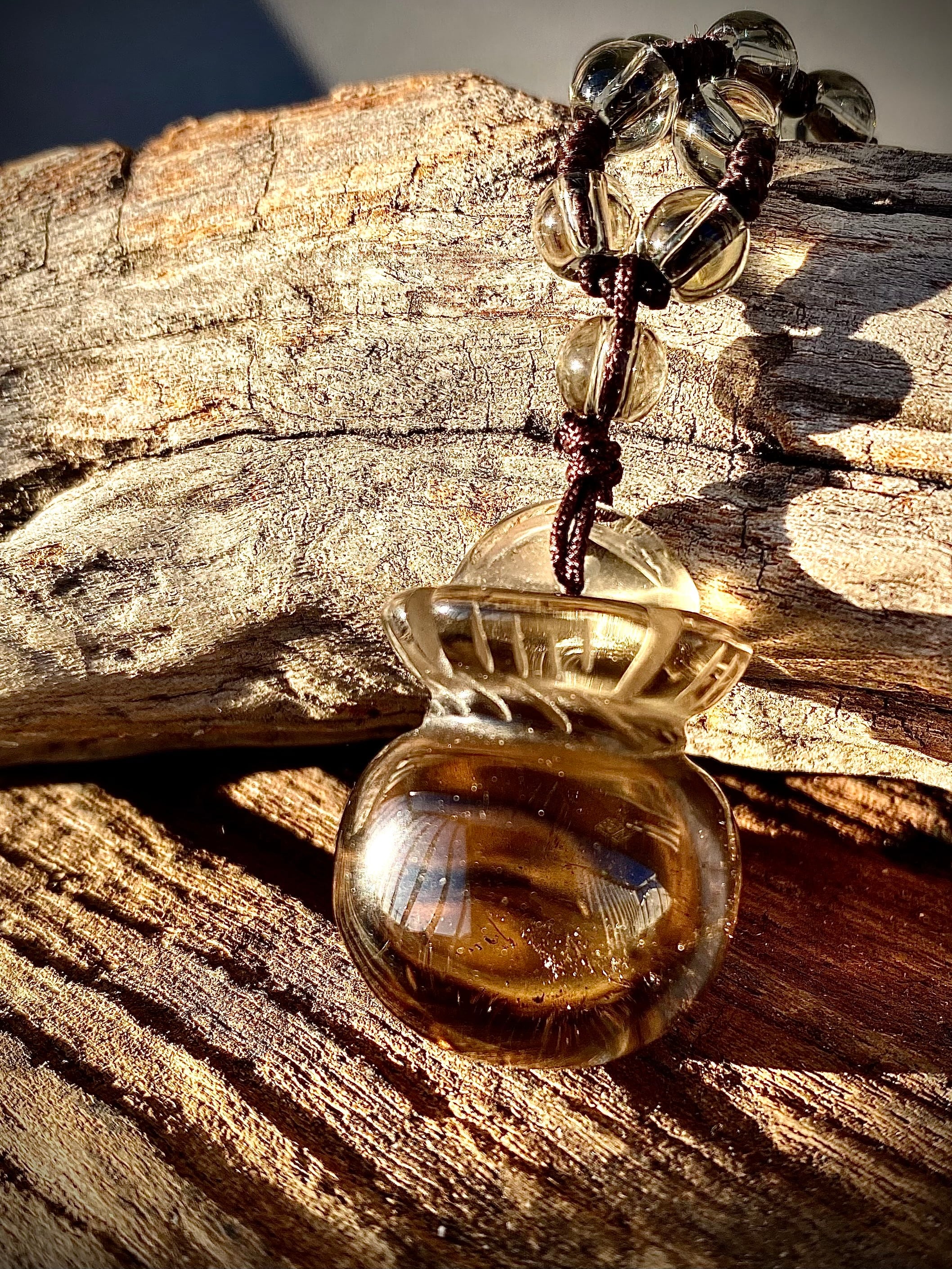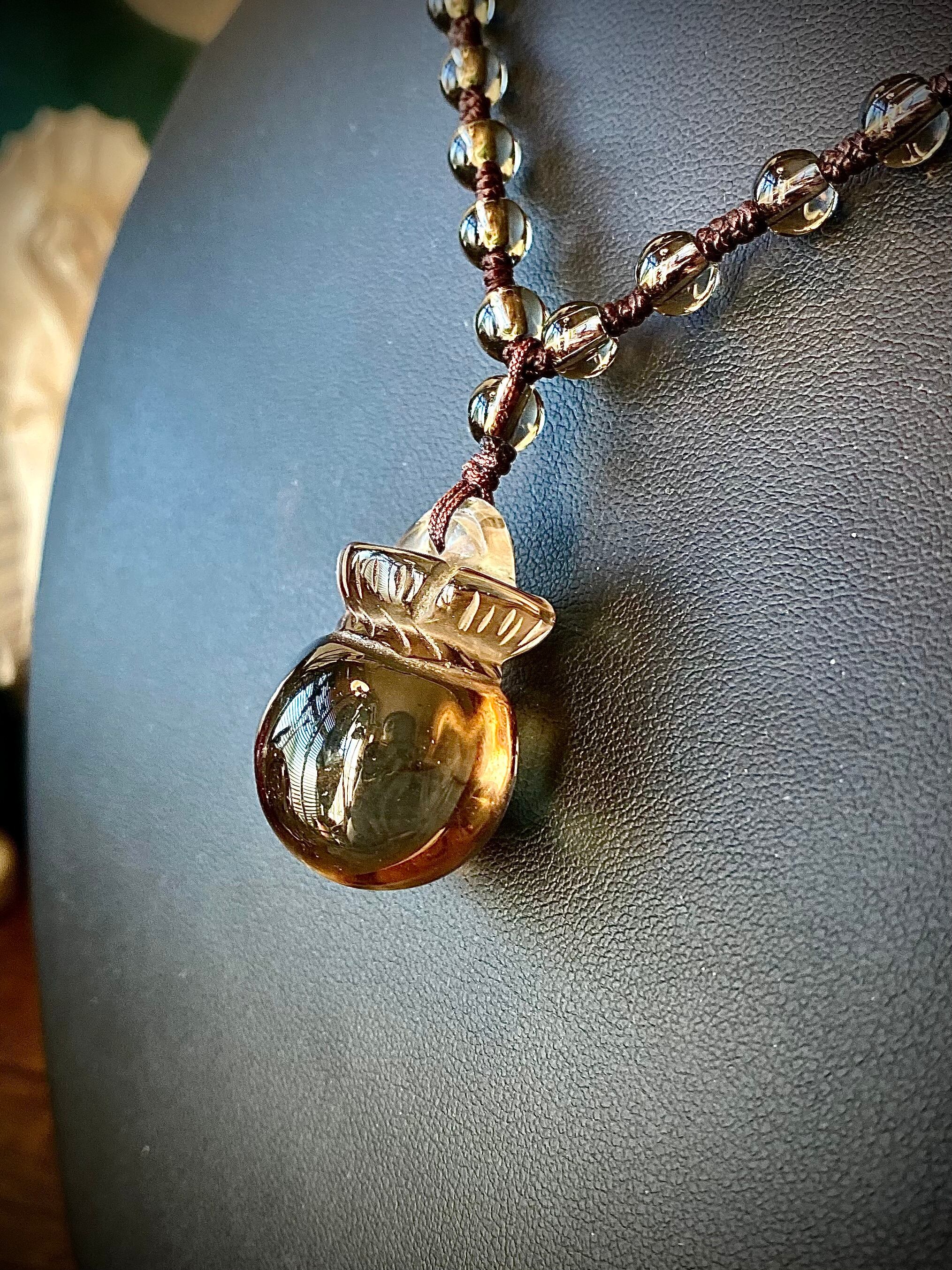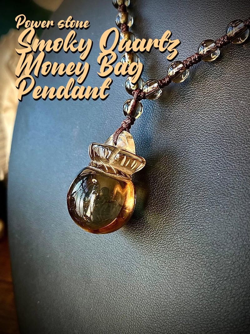 セレクトインポートしました天然石スモーキークォーツマネーバッグです。