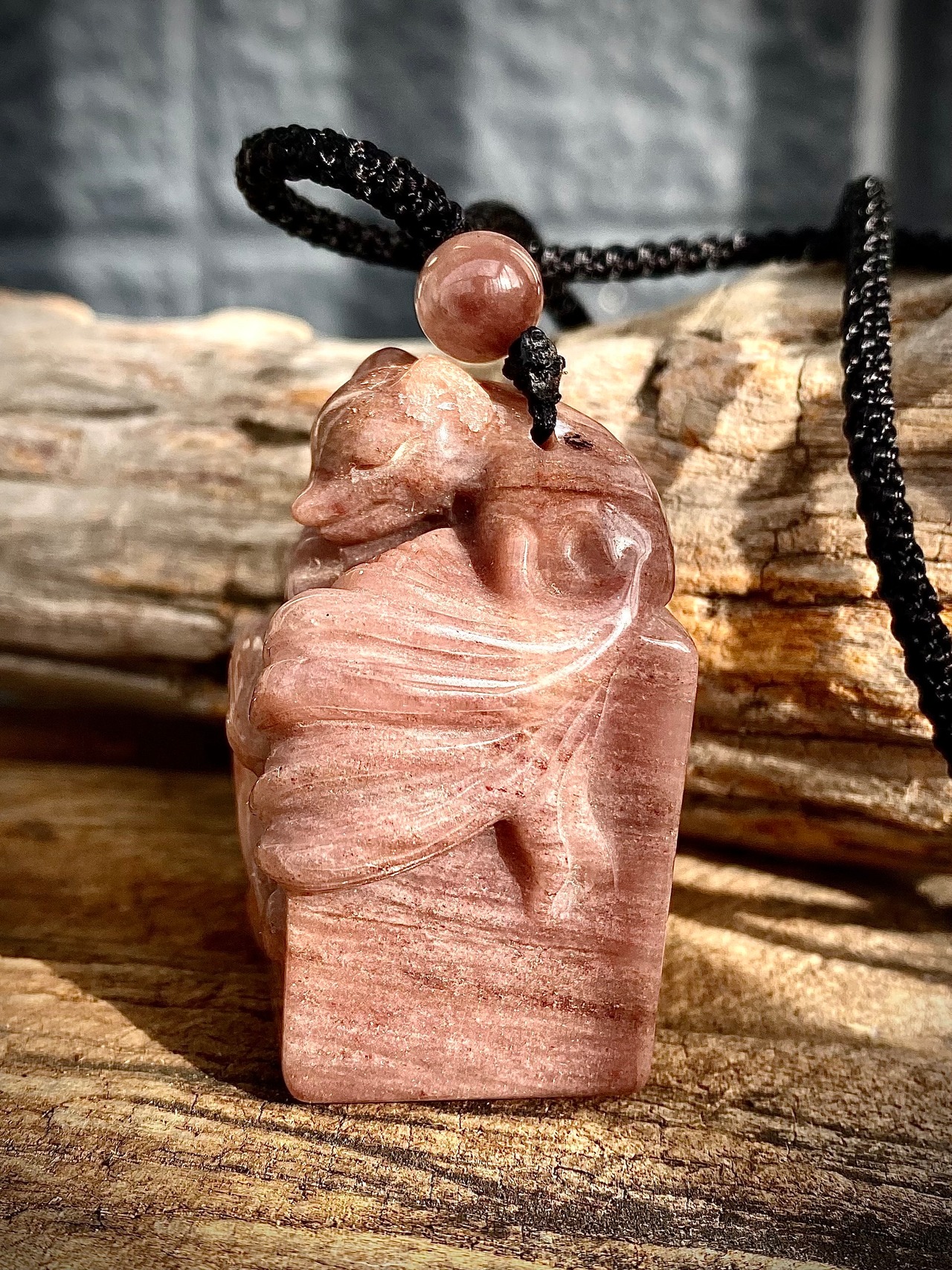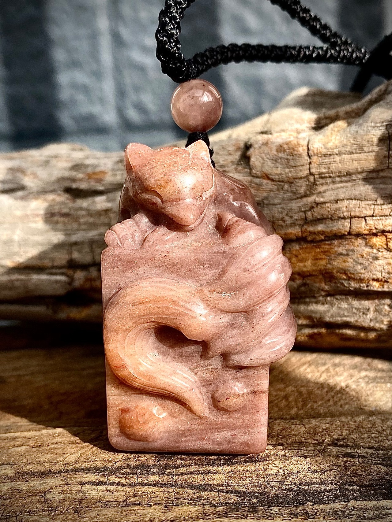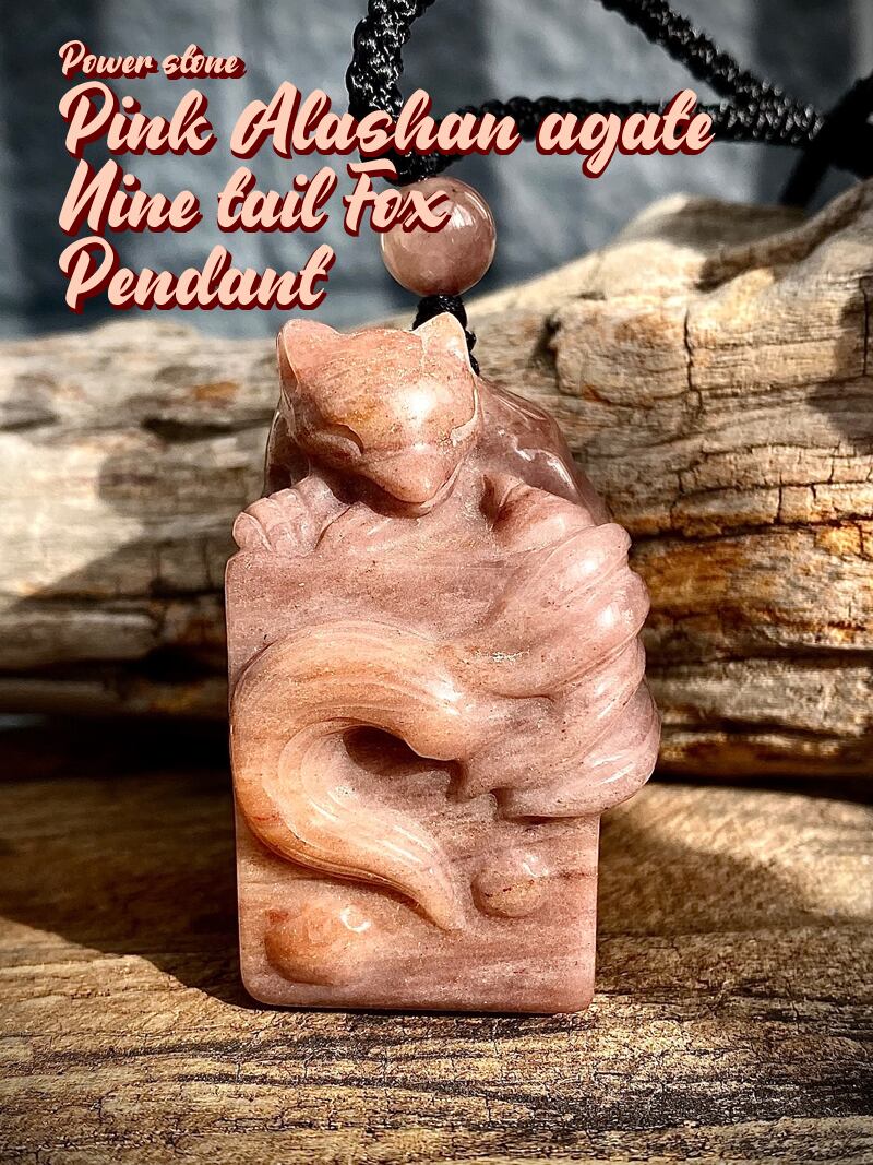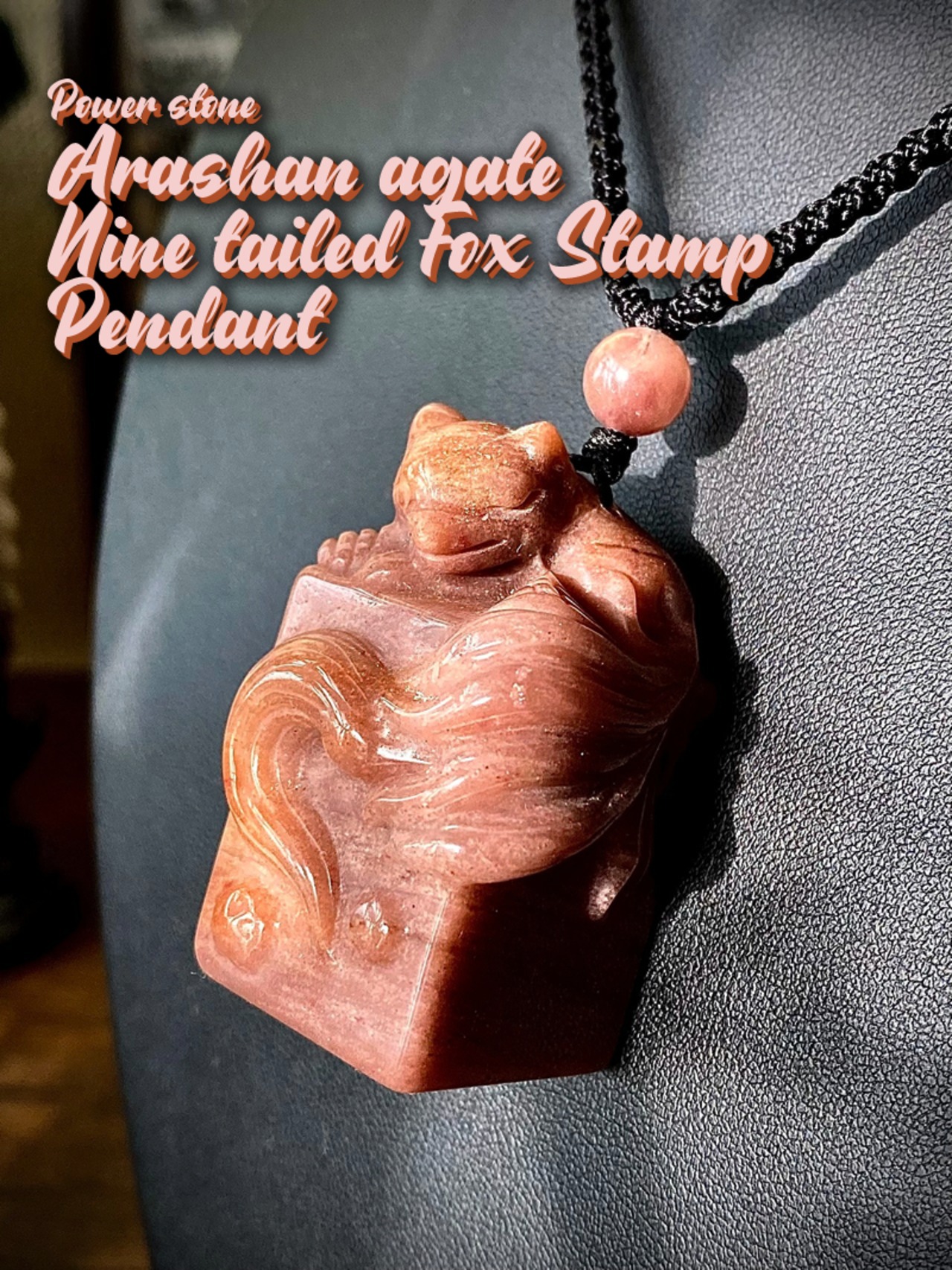 セレクトインポートしました天然石アラシャンアゲート九尾スタンプペンダント。