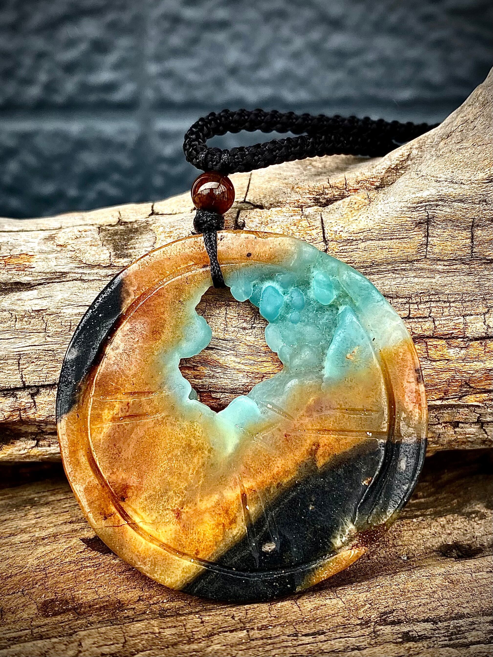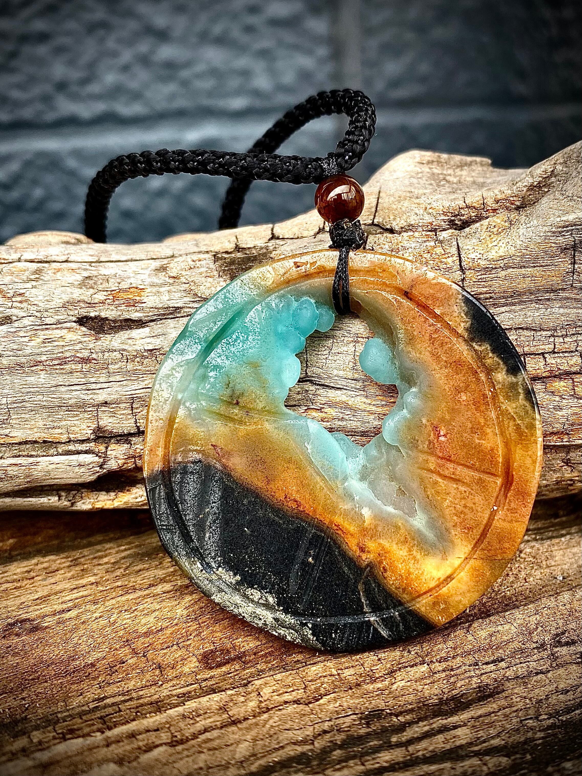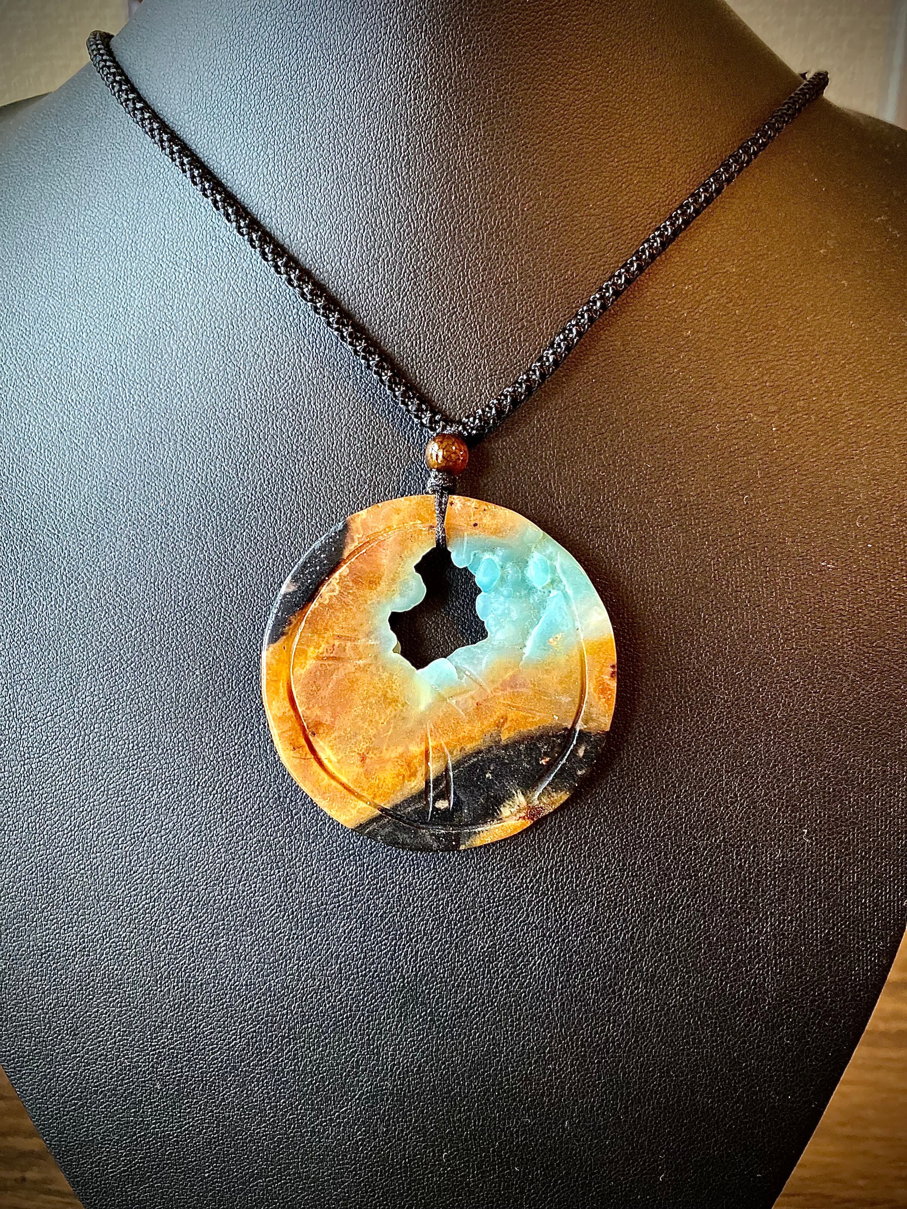 セレクトインポートしました天然石ドゥルージーアゲートコインペンダントです。