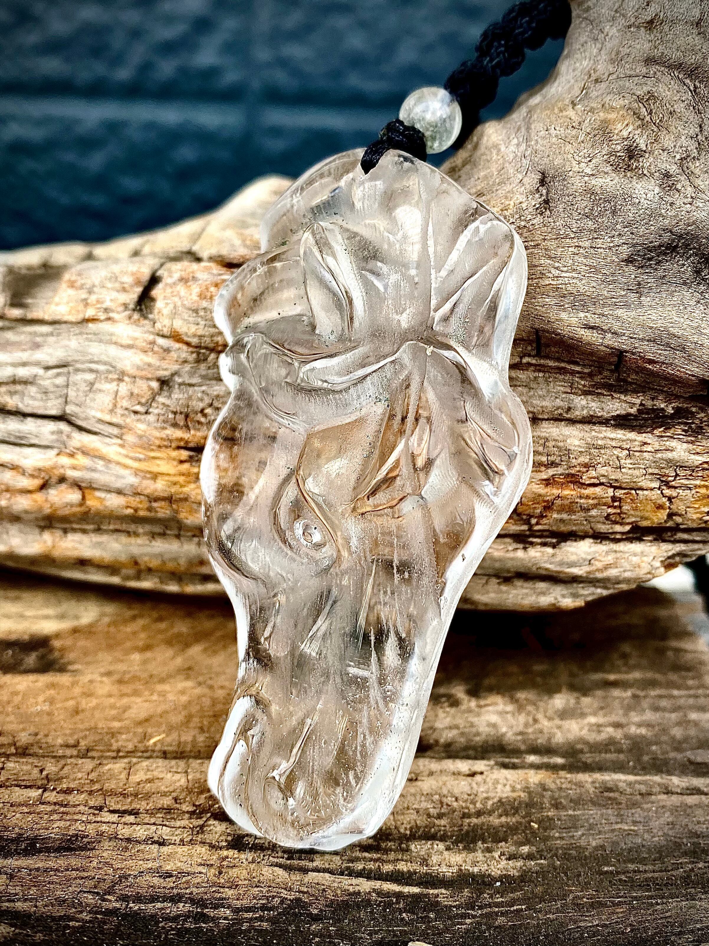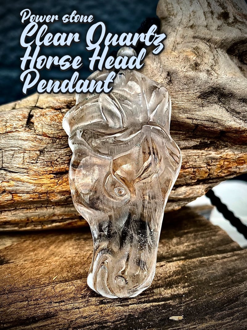 Power stone Clear Quartz horse head pendant