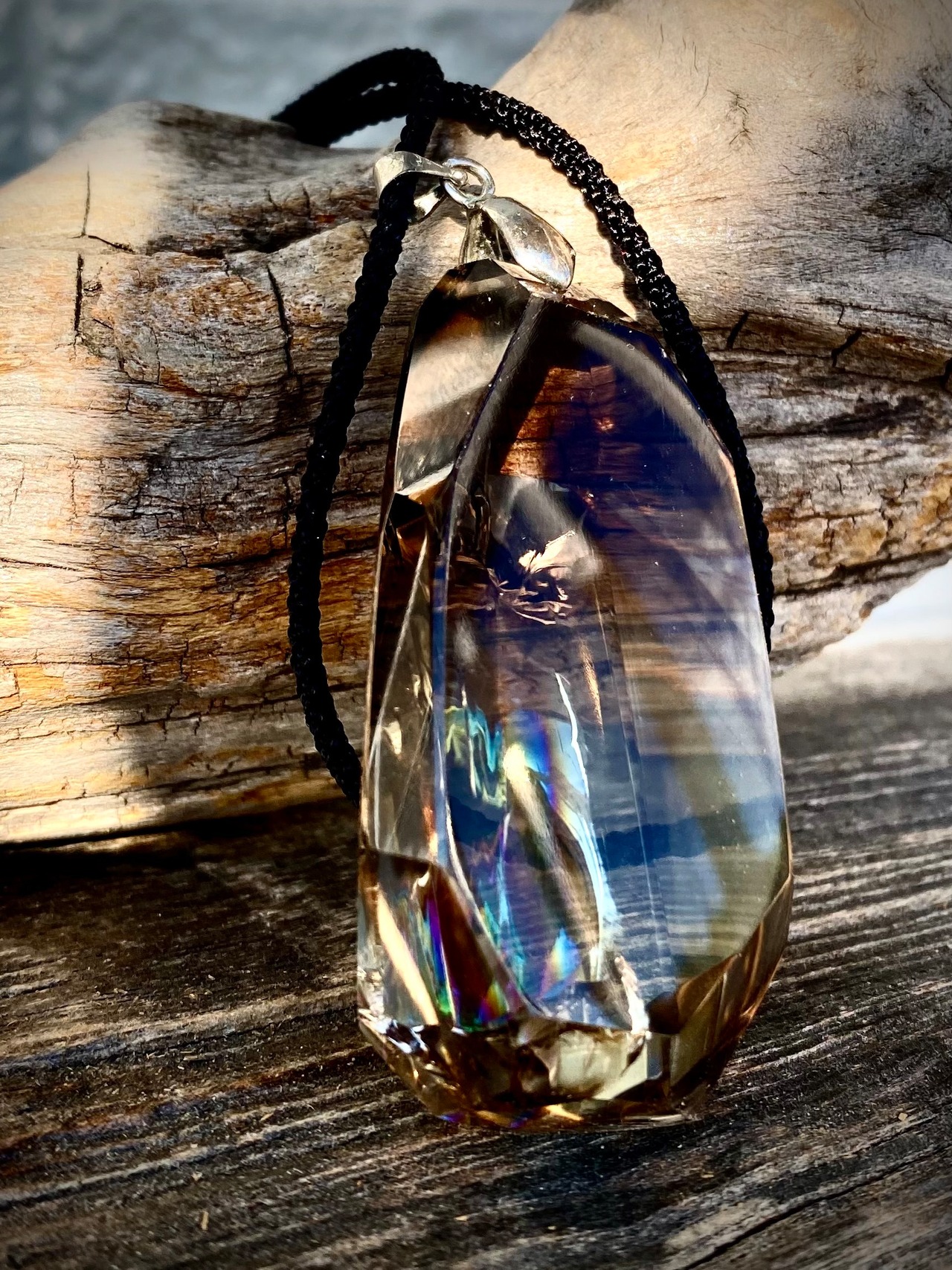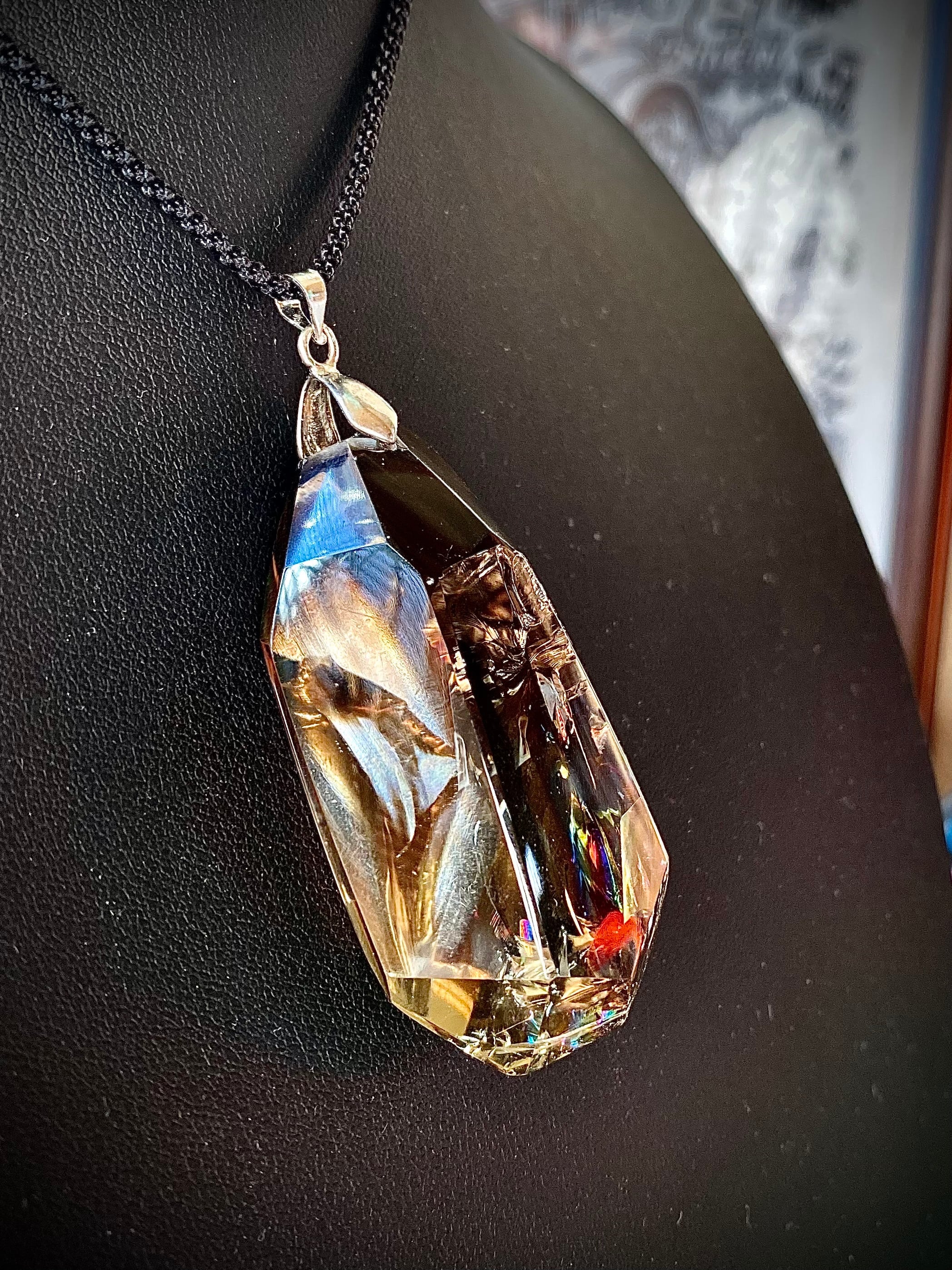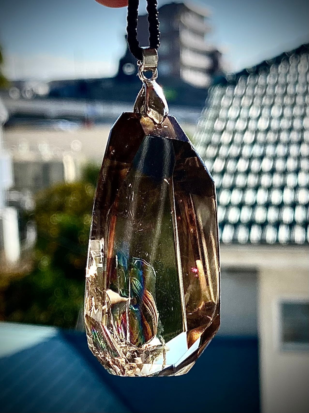 セレクトインポートしました天然石スモーキーシトリンレインボーペンダント。
