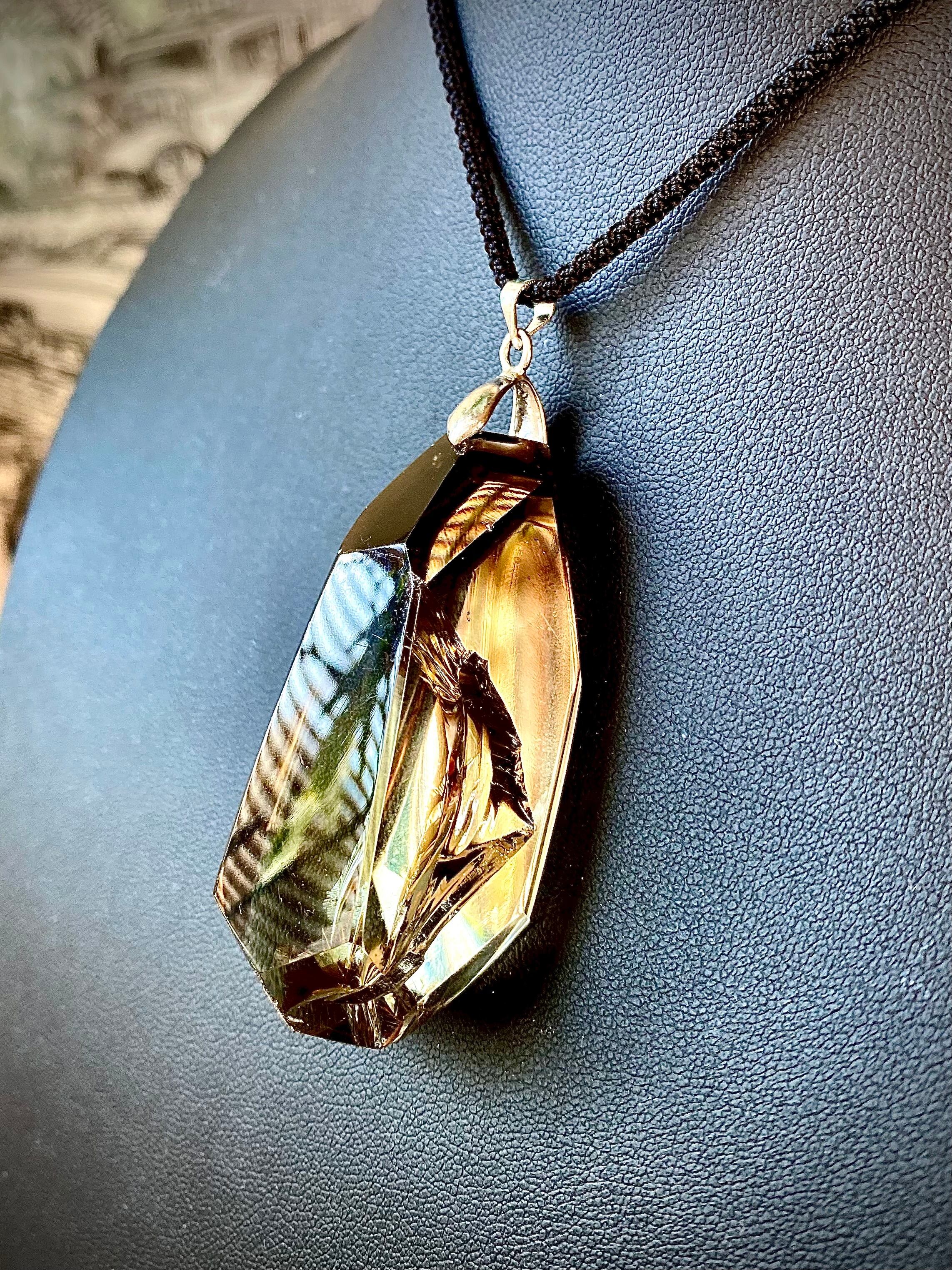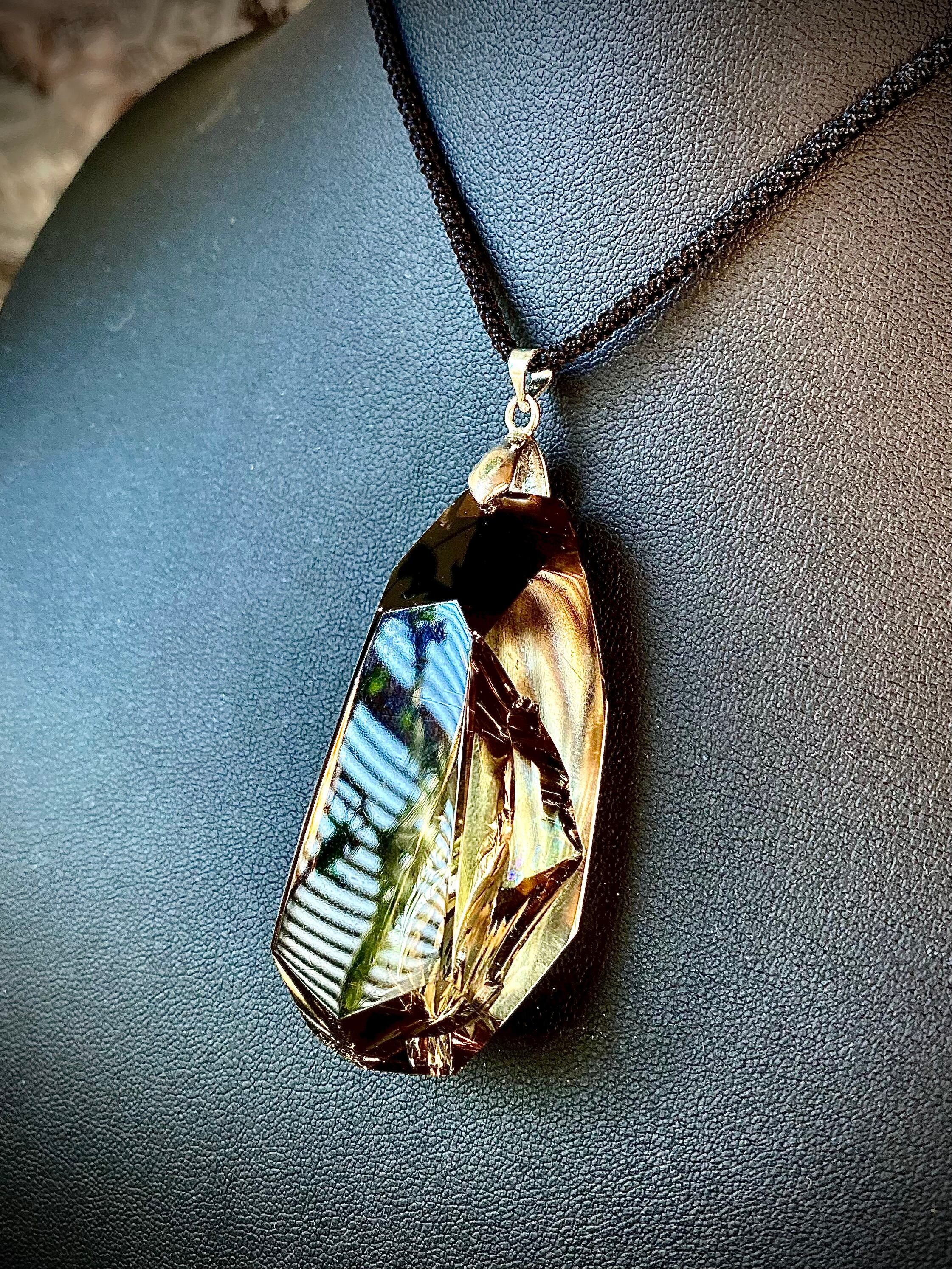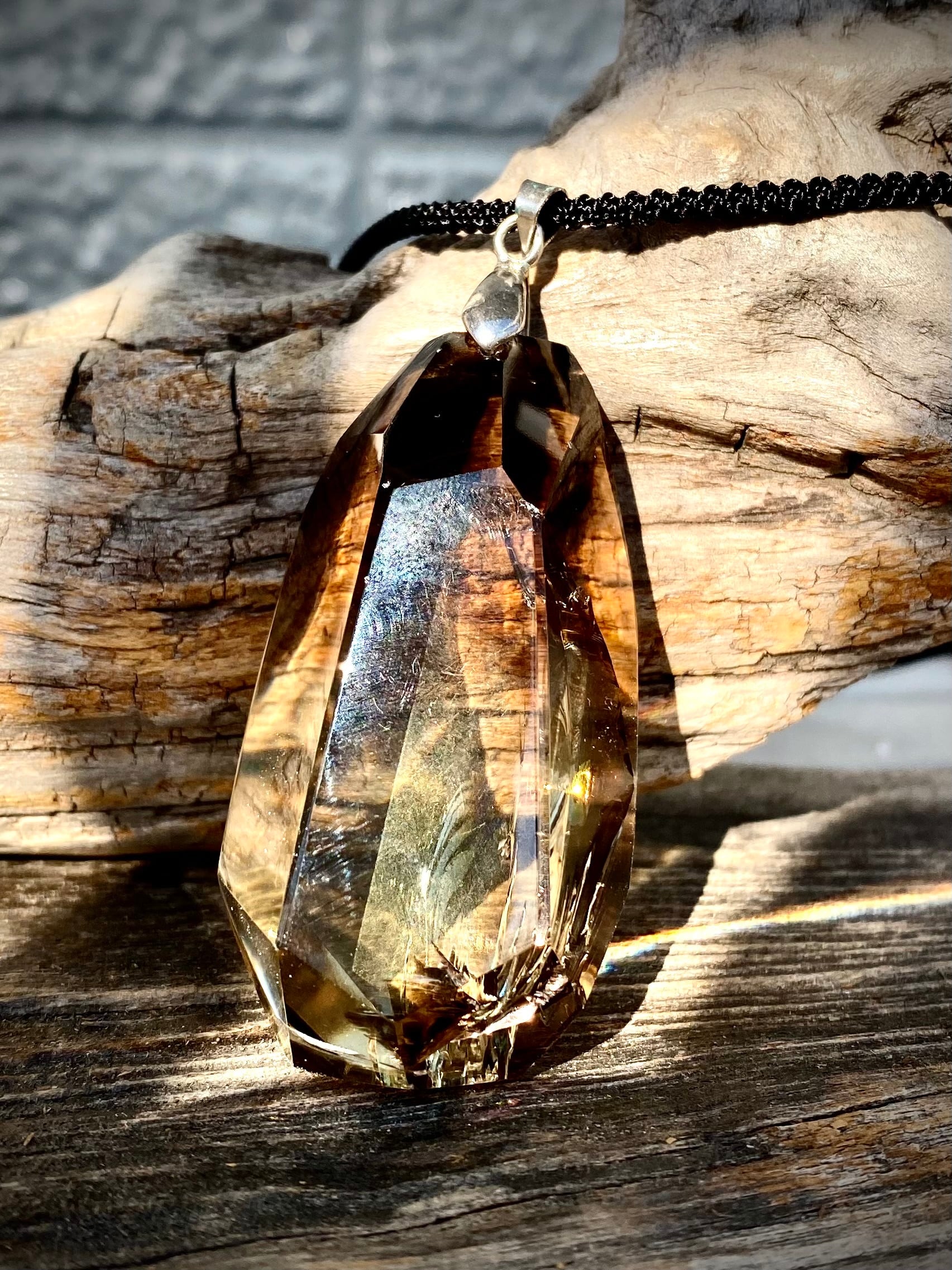 セレクトインポートしました天然石スモーキーシトリンレインボーペンダント。