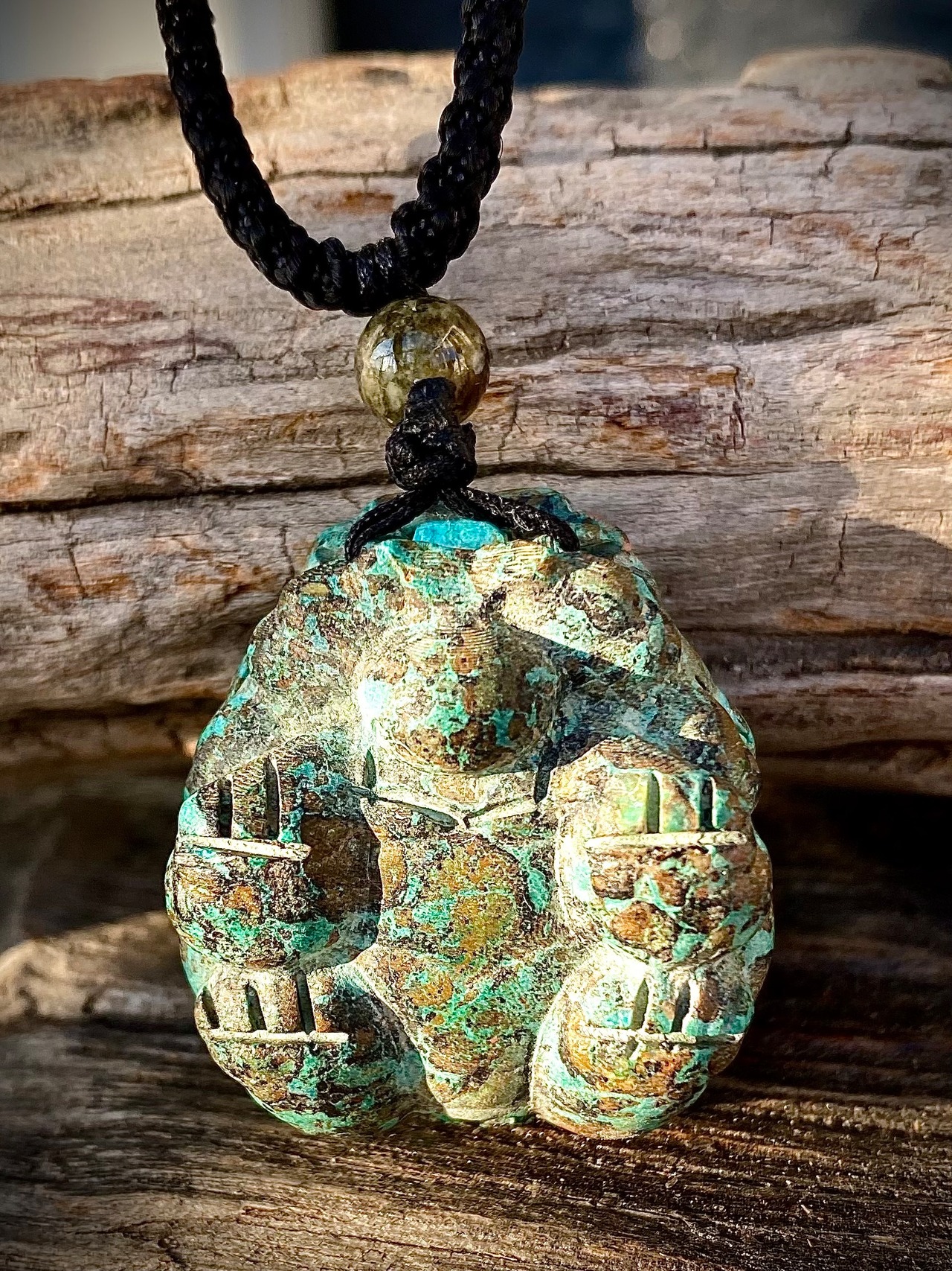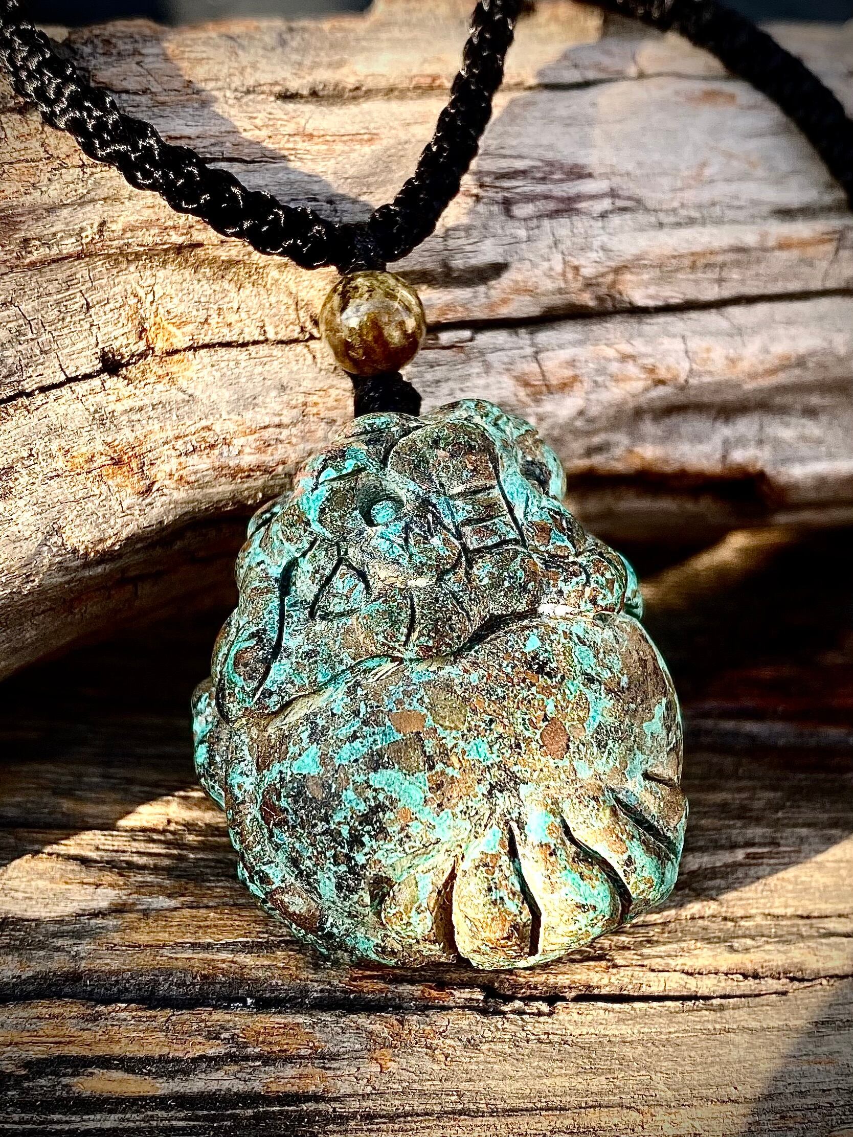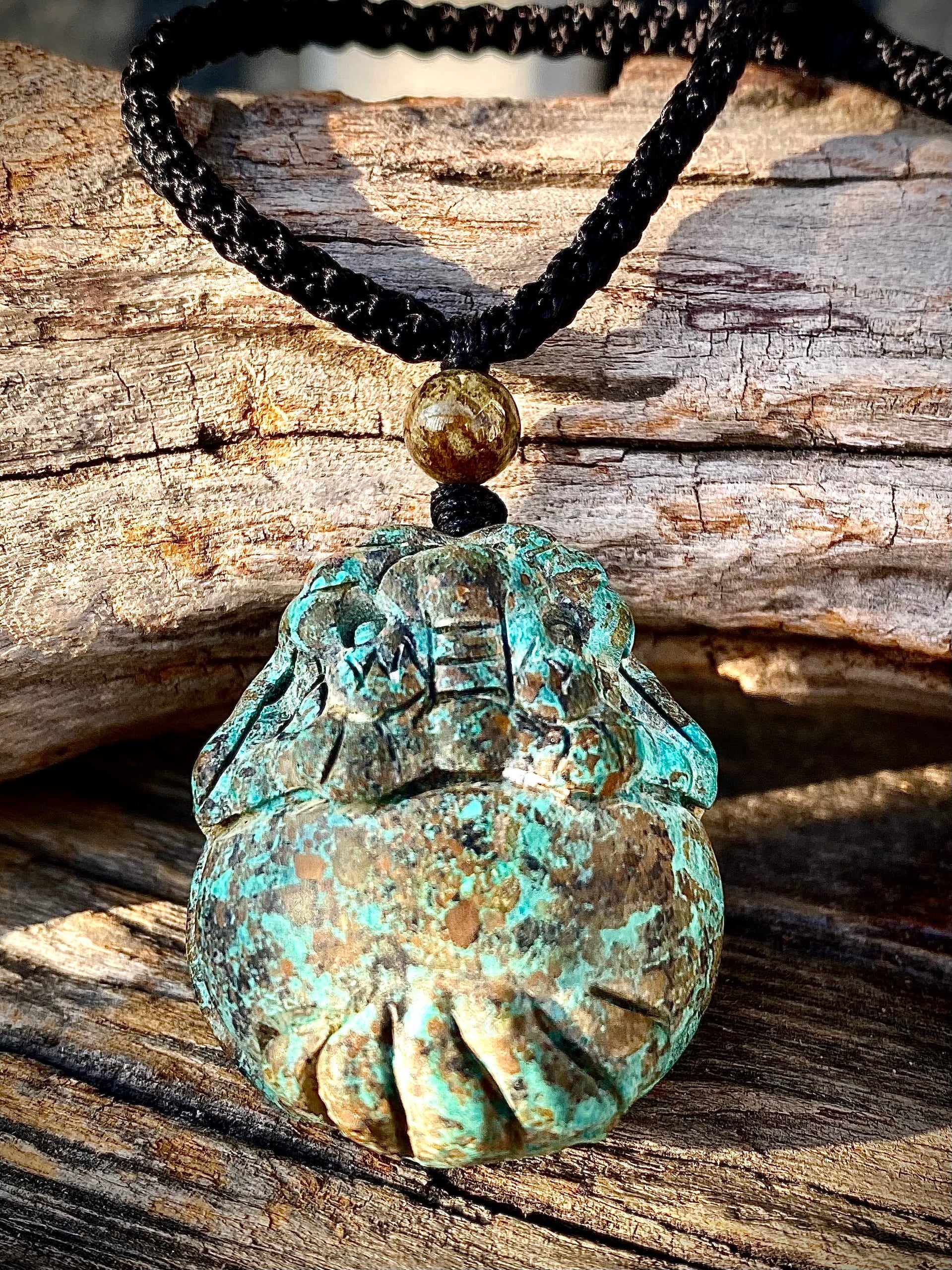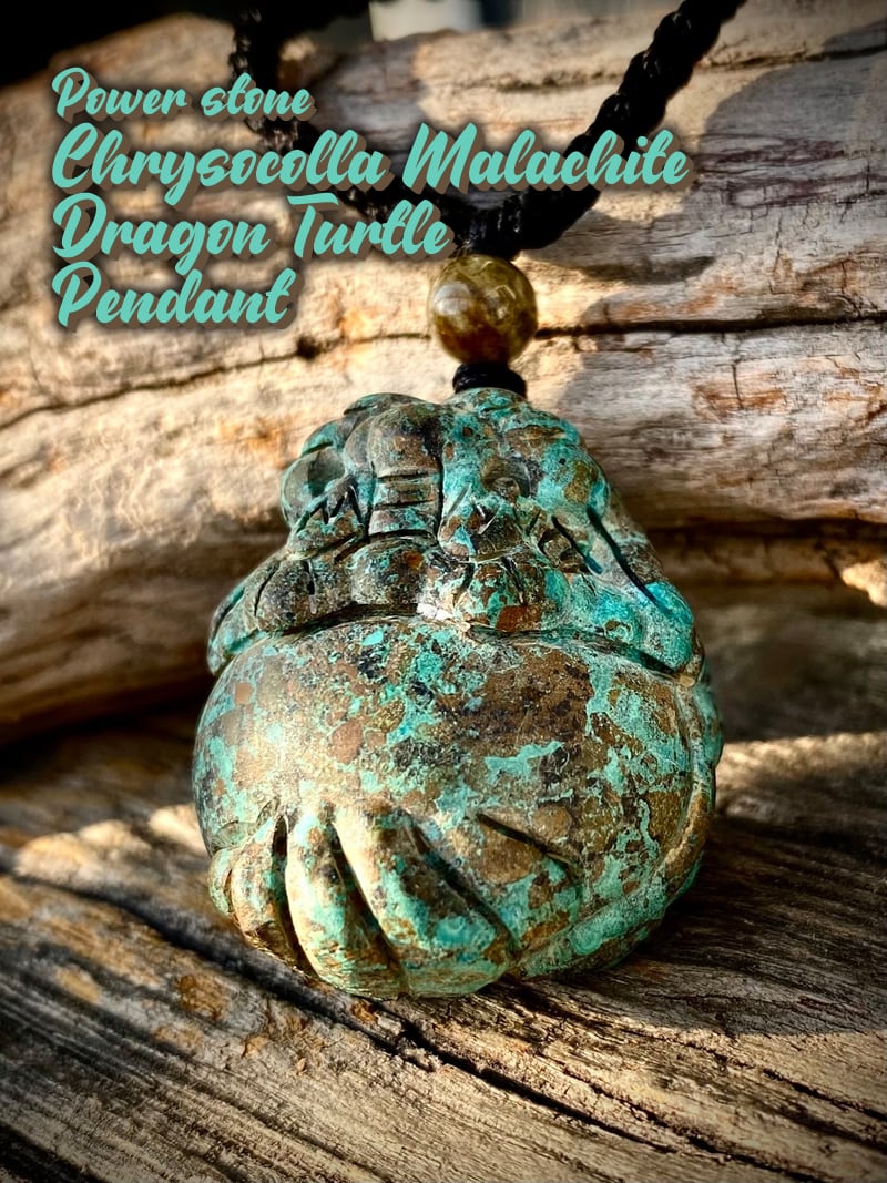 Power stone Chrysocolla Malachite Dragon Turtle Pendant