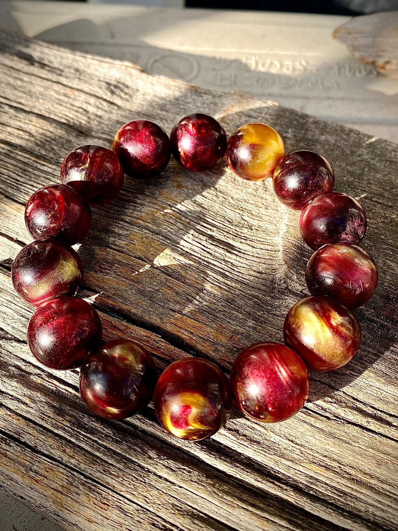 中には金糸がミックスされているものもあるようで例えるならアメリカンチェリーカラーにゴールドマーブル。