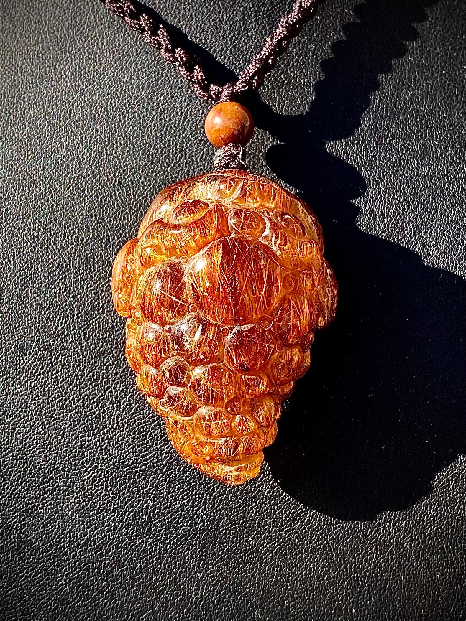 Power stone Copper Hair Rutilated Quartz Money Toad Pendant