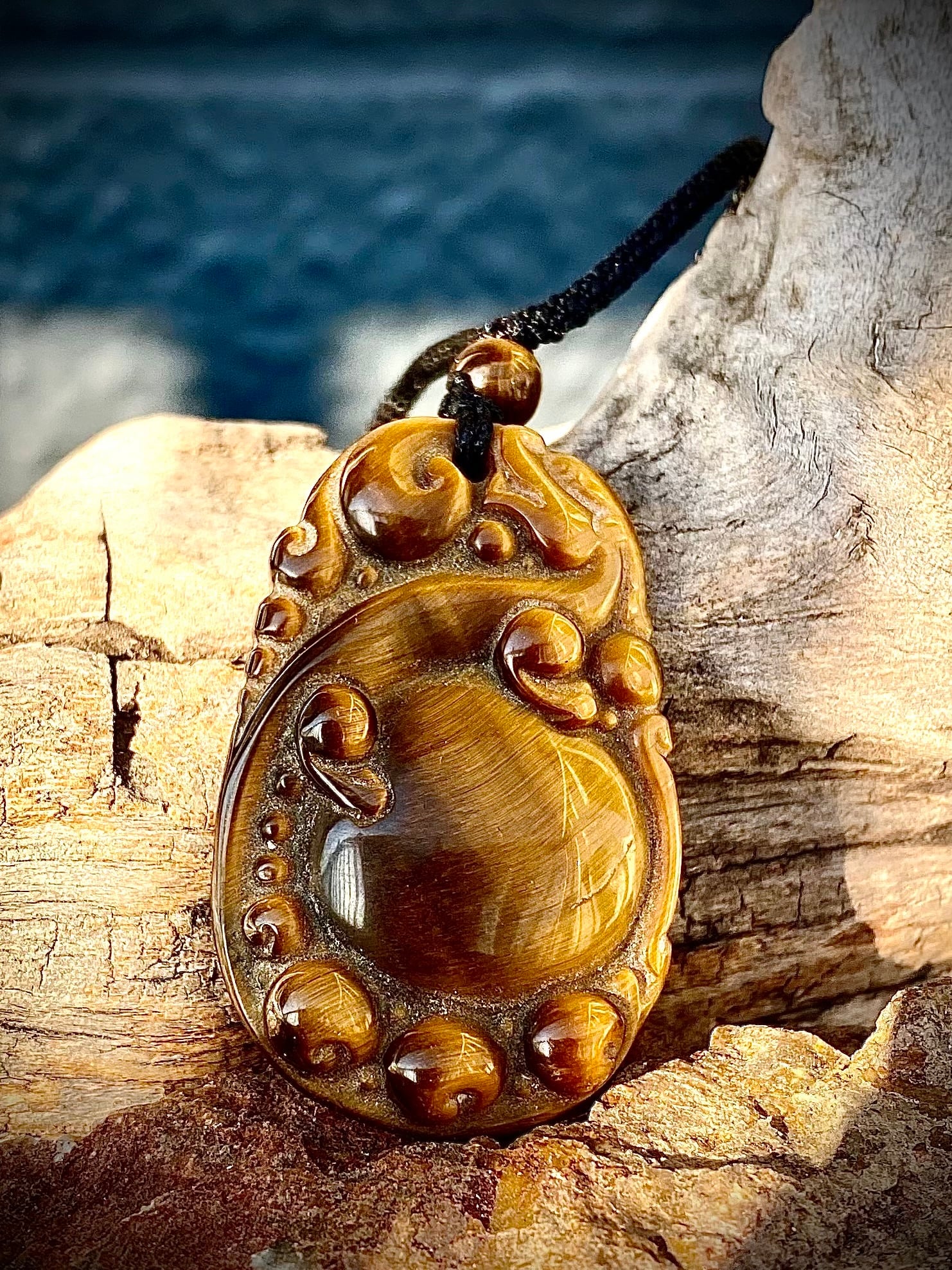 Power stone Yellow tiger eye Dragon Pendant