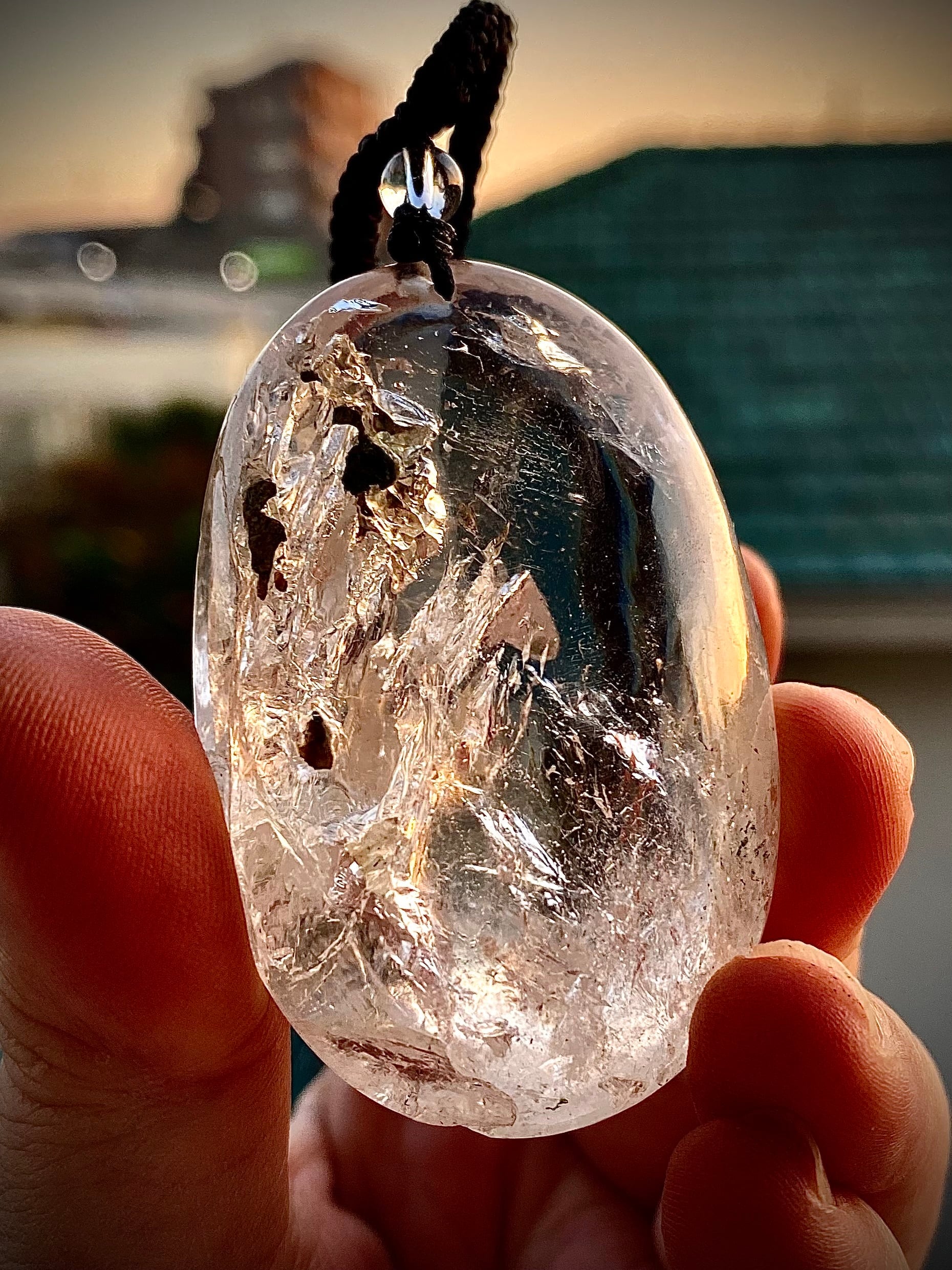 透明感というよりは光の反射を楽しんでいただくためのうようなペンダント。