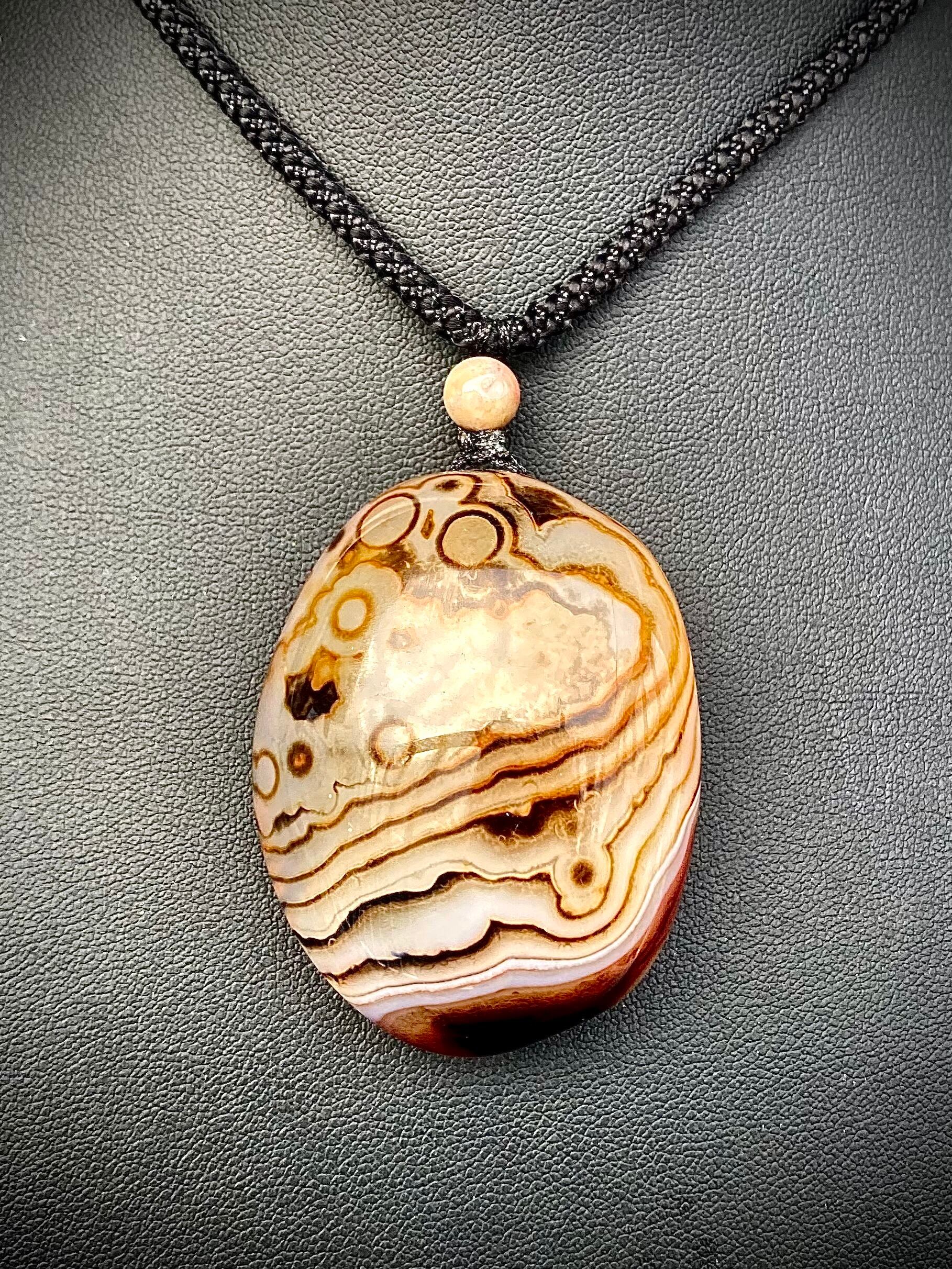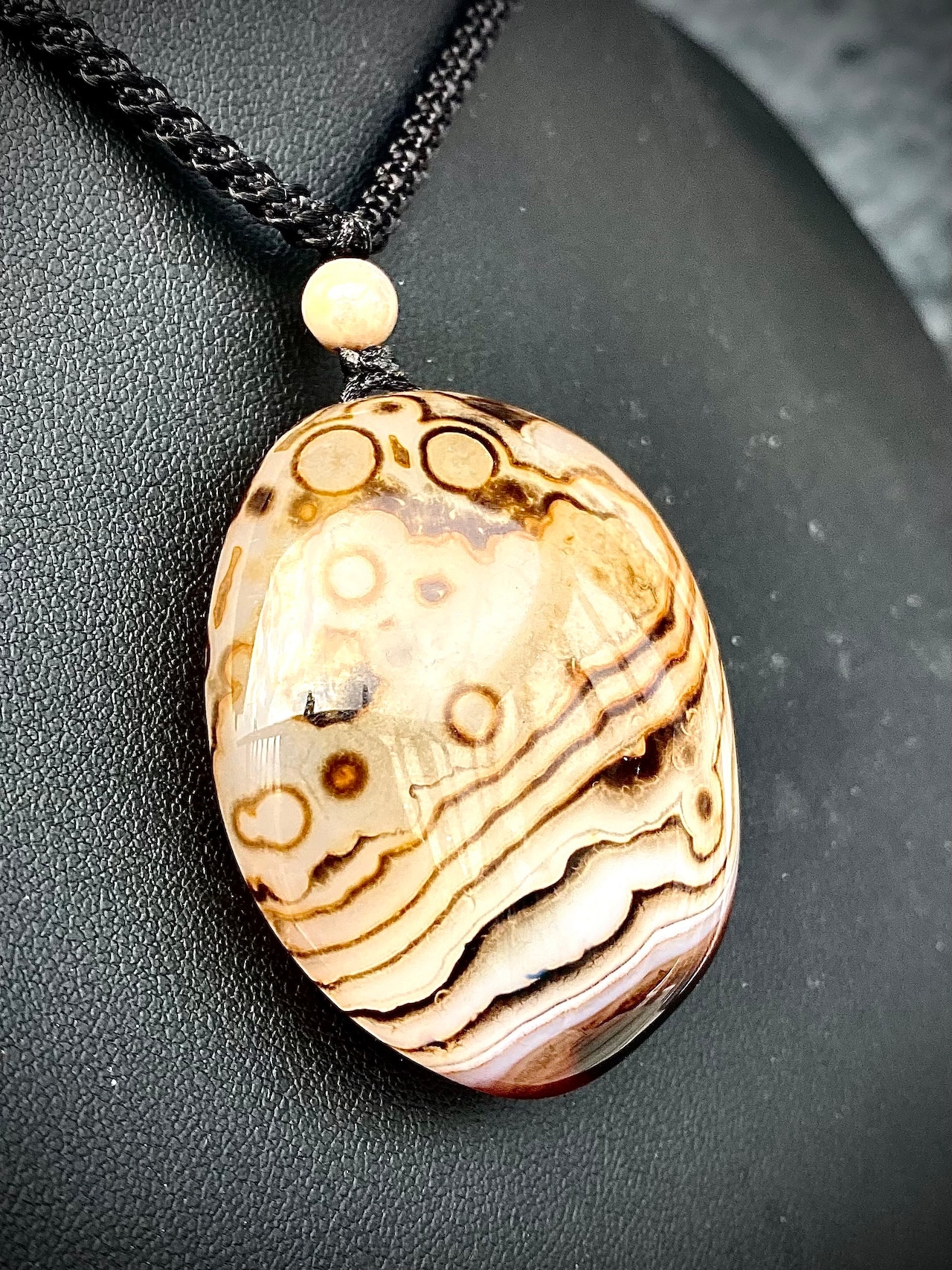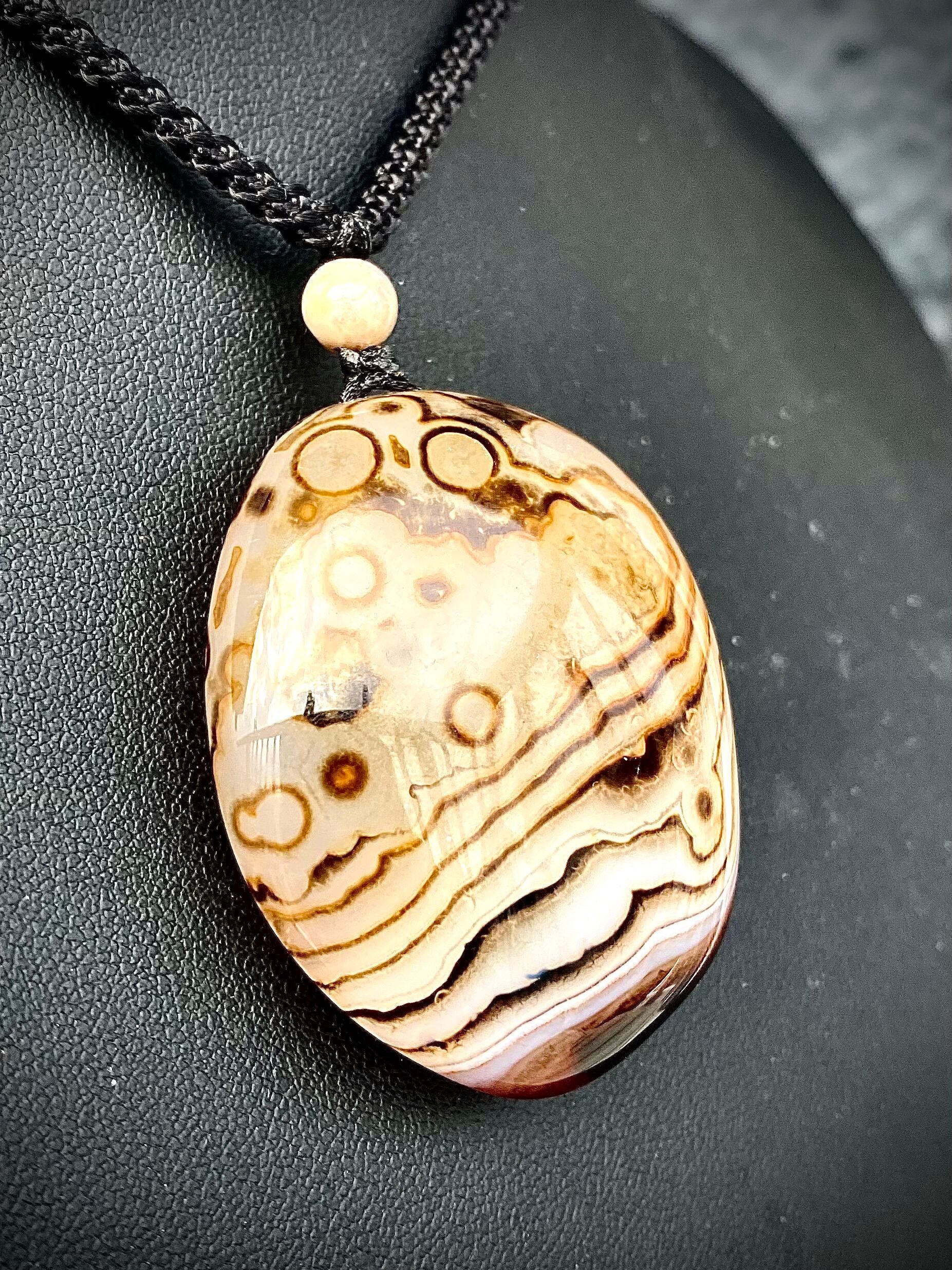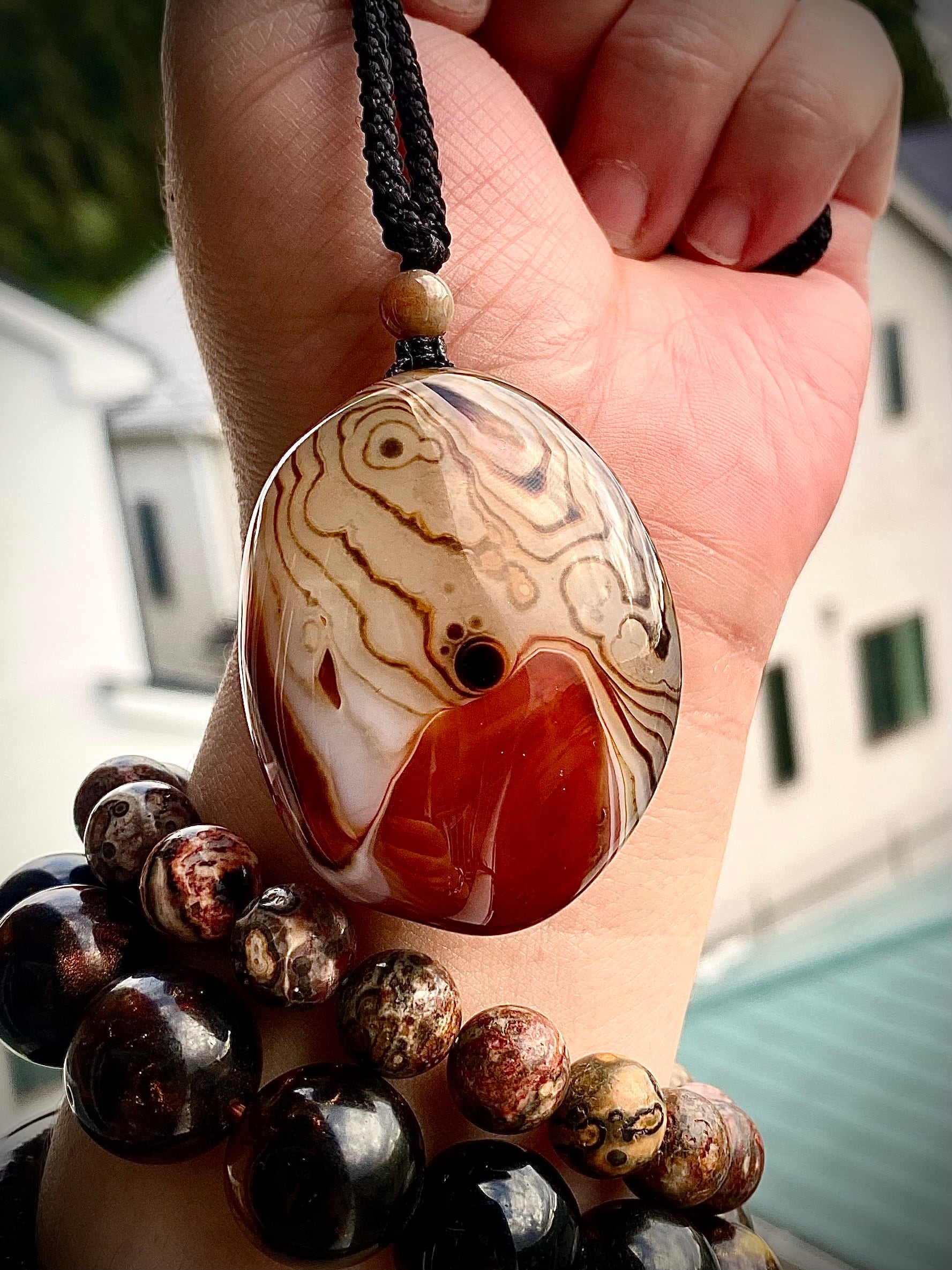 効能:天眼石は、目のような模様を持つアゲート(メノウ)の一種です。チベットやヒマラヤ地域が起源とされ、魔除けの力が強いと信じられています。模様は石が形成される過程でできる自然の産物で、持ち主に「神仏の加護を与え、悪霊を払い、物事の真偽を見抜く力を授ける」とされ、古くから法具や護符として使われてきました。