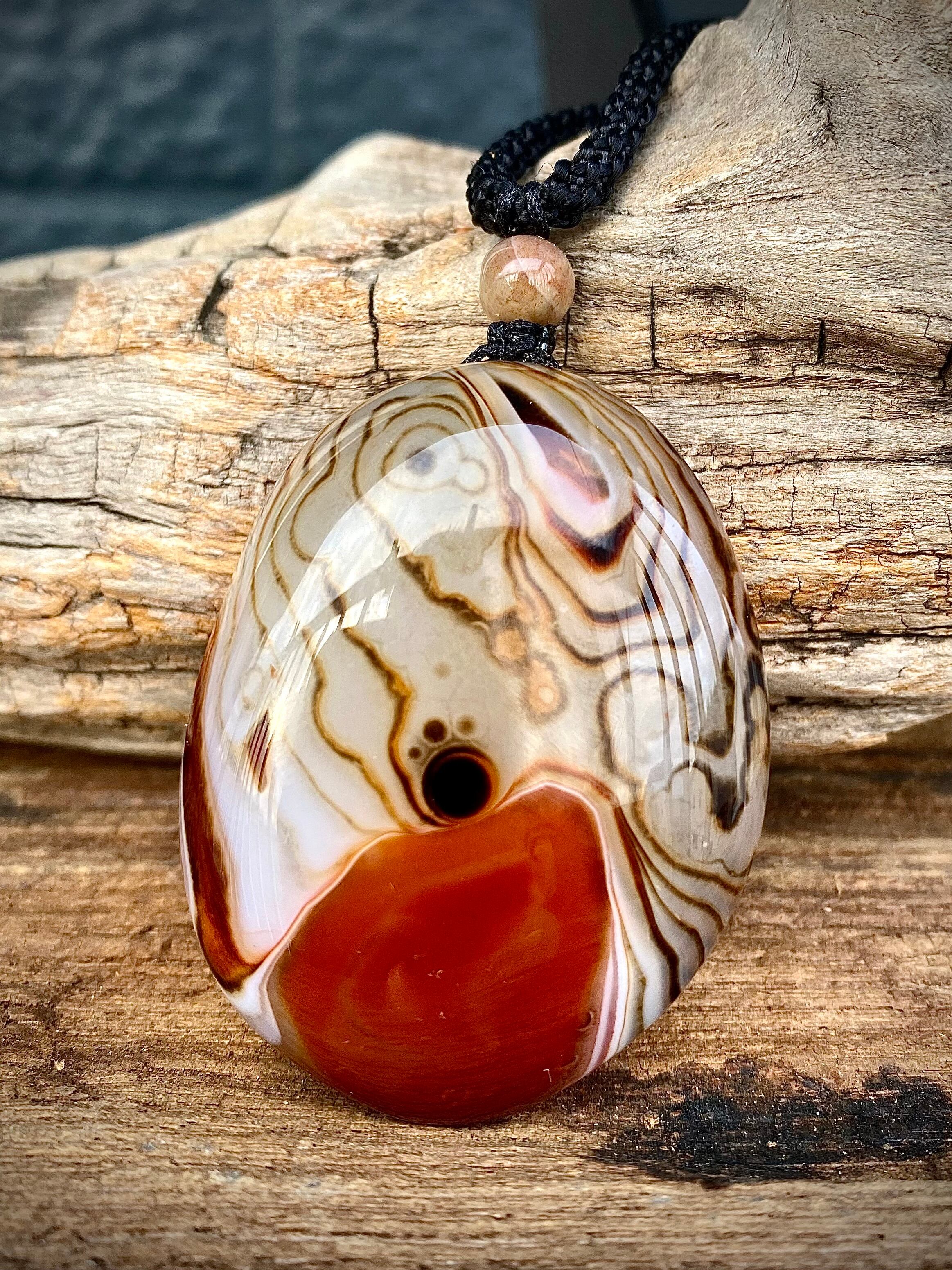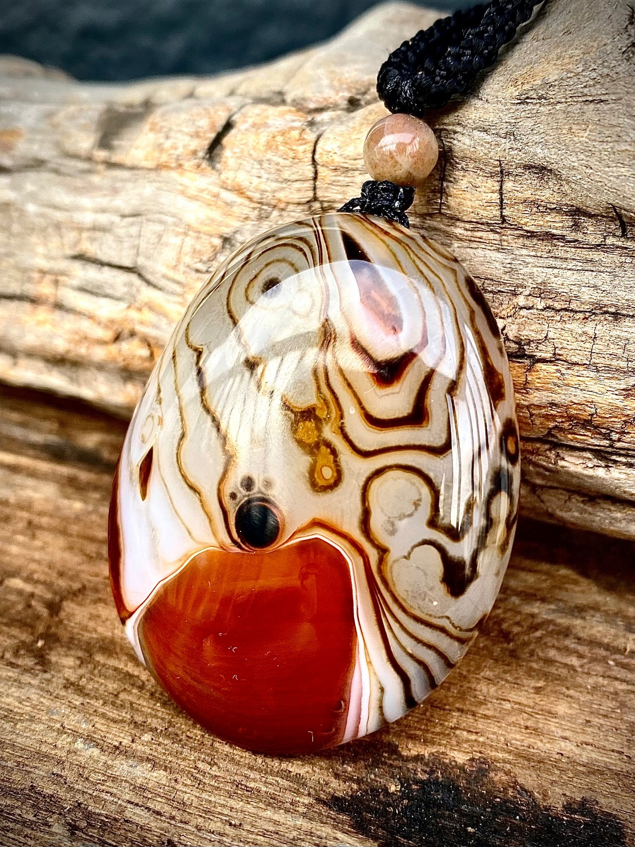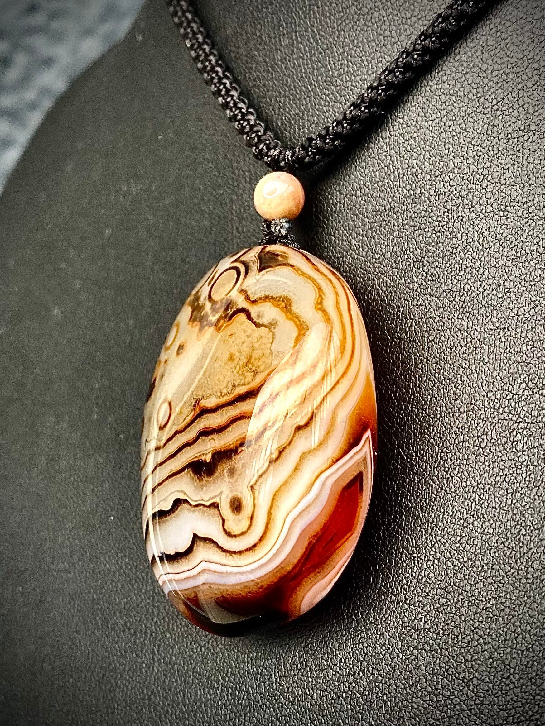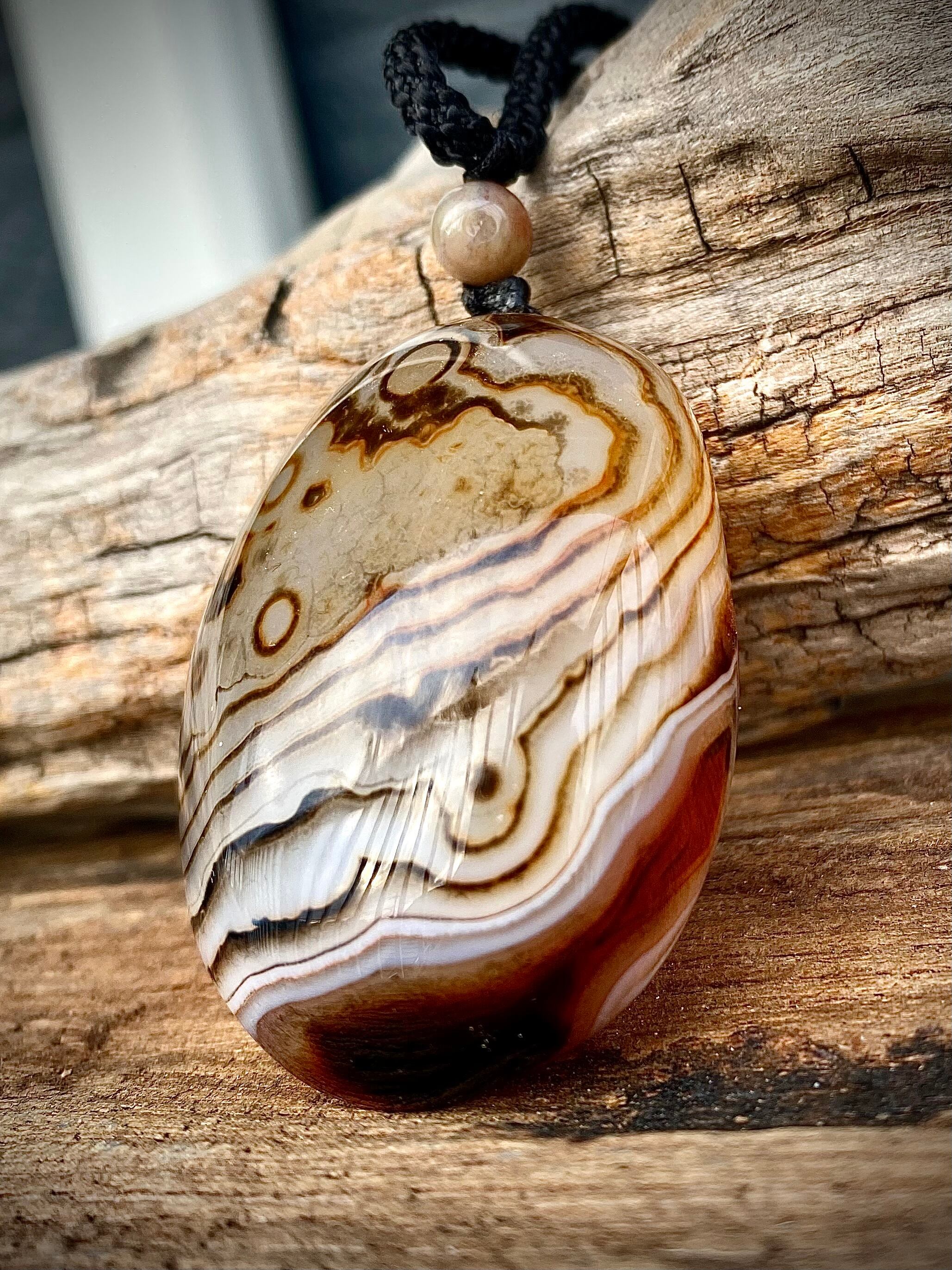 効能:天眼石は、目のような模様を持つアゲート(メノウ)の一種です。チベットやヒマラヤ地域が起源とされ、魔除けの力が強いと信じられています。模様は石が形成される過程でできる自然の産物で、持ち主に「神仏の加護を与え、悪霊を払い、物事の真偽を見抜く力を授ける」とされ、古くから法具や護符として使われてきました。