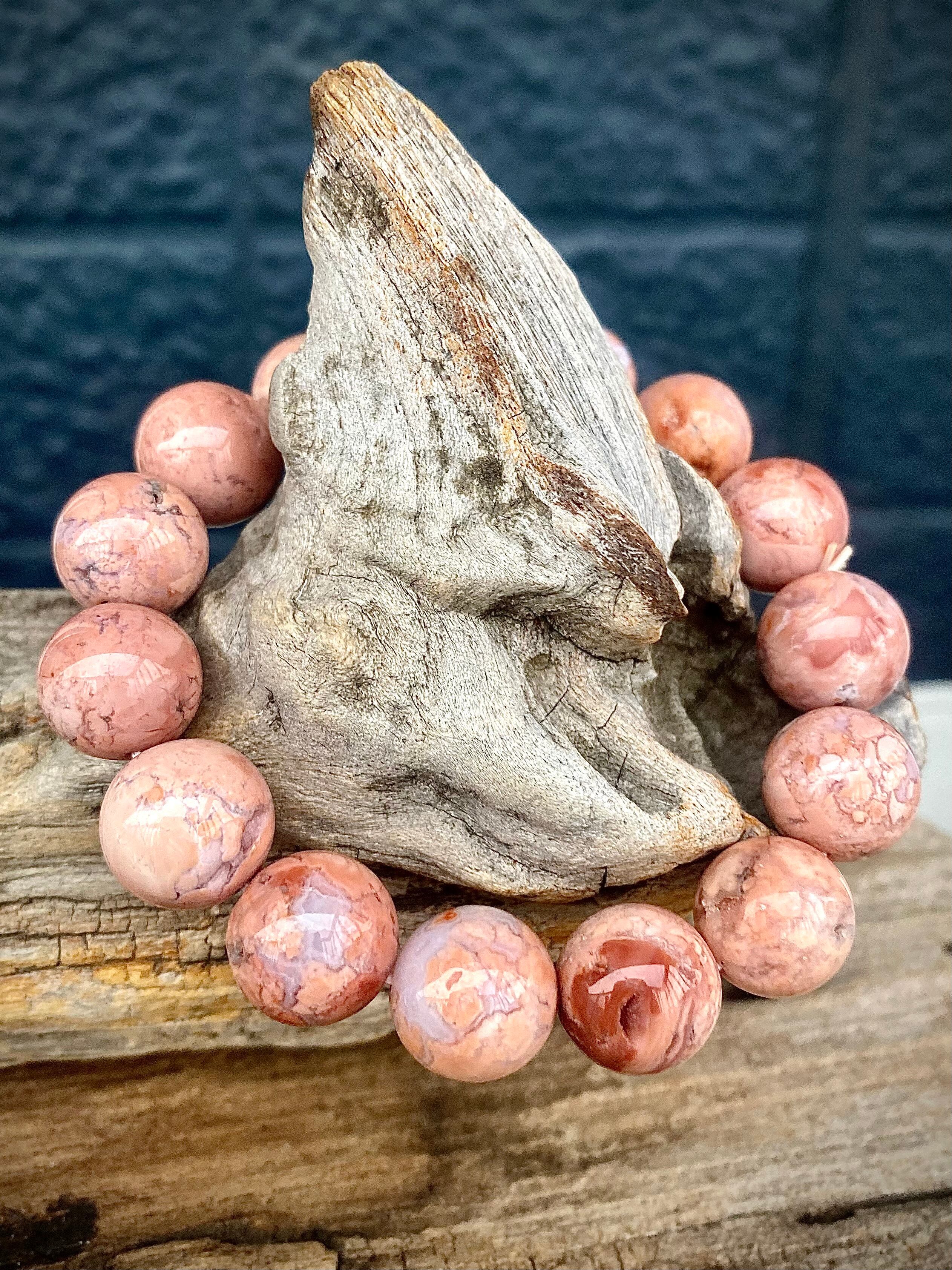 セレクトインポートしました天然石ピンクアゲートブレスレットです。