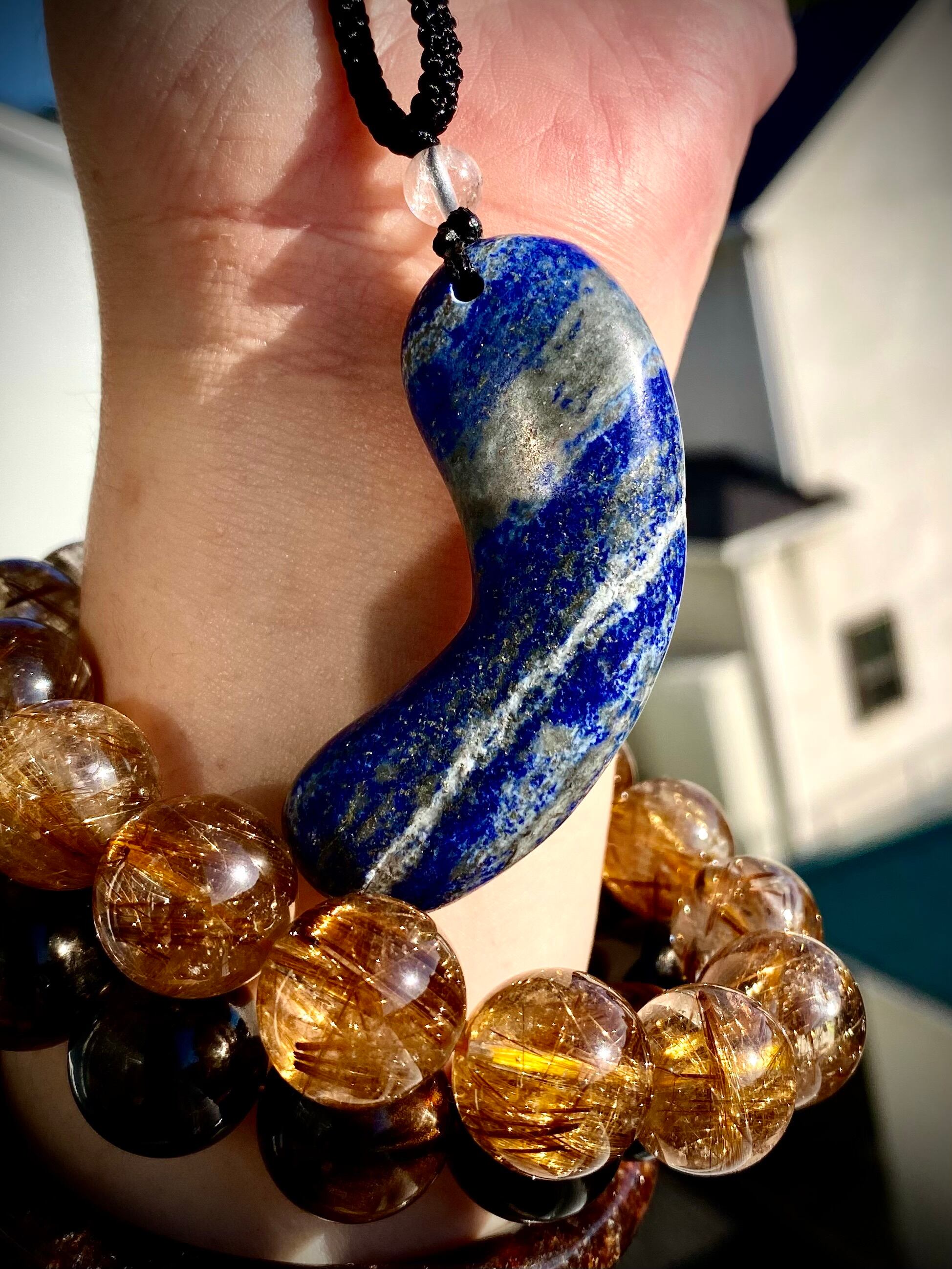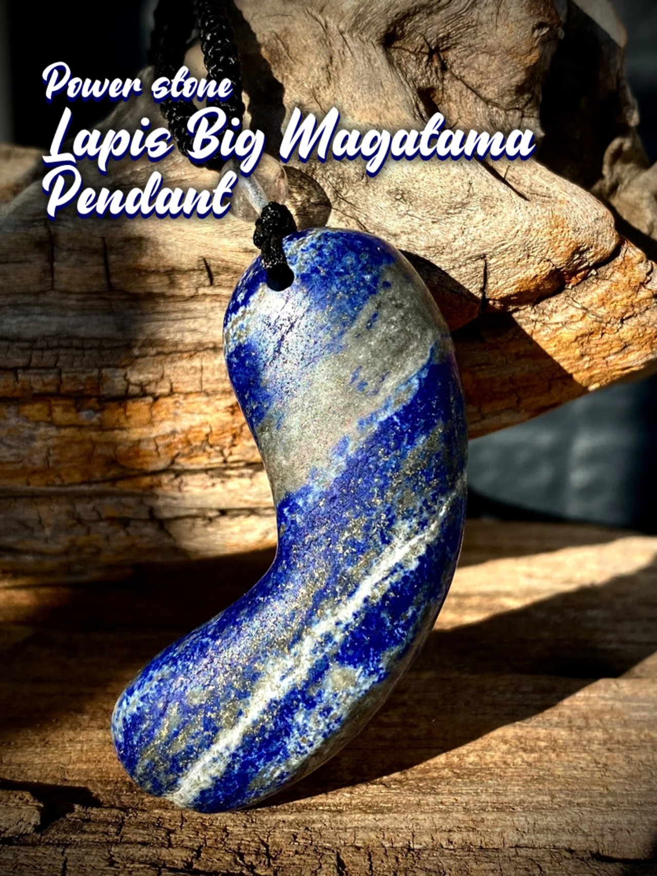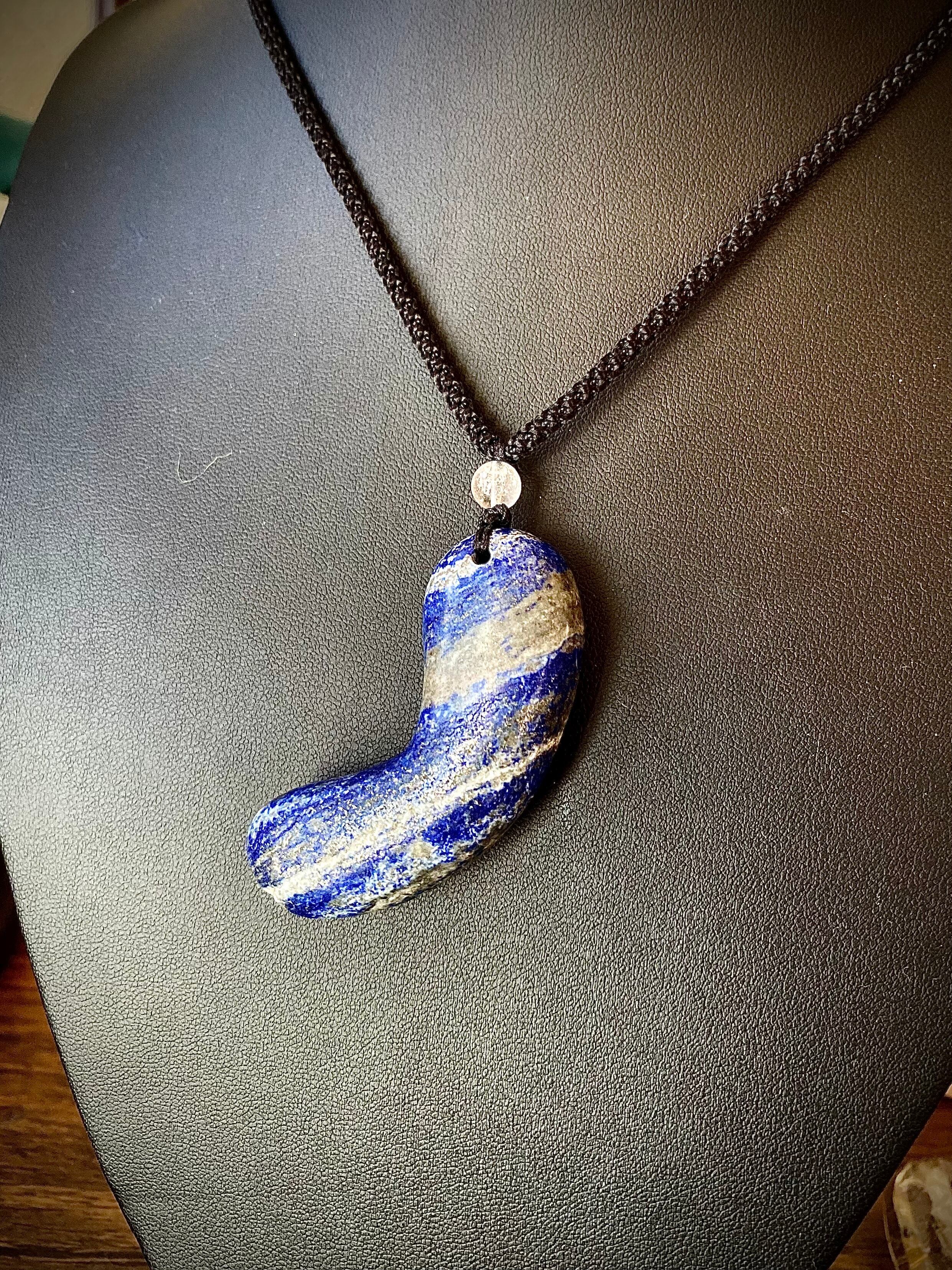 カスタムメイド品、天然石ラピスの勾玉ペンダントです。
