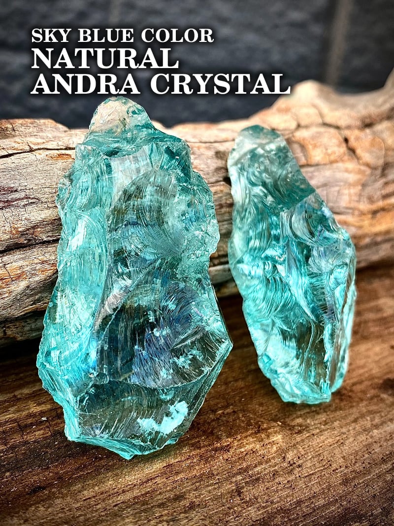 アンダラクリスタルとは火山性のガラス質の鉱物です。1967年、アメリカ・カリフォルニア州、シエラネバダのチョクトー族ネリー夫人の土地ネリーランドで発見されました。