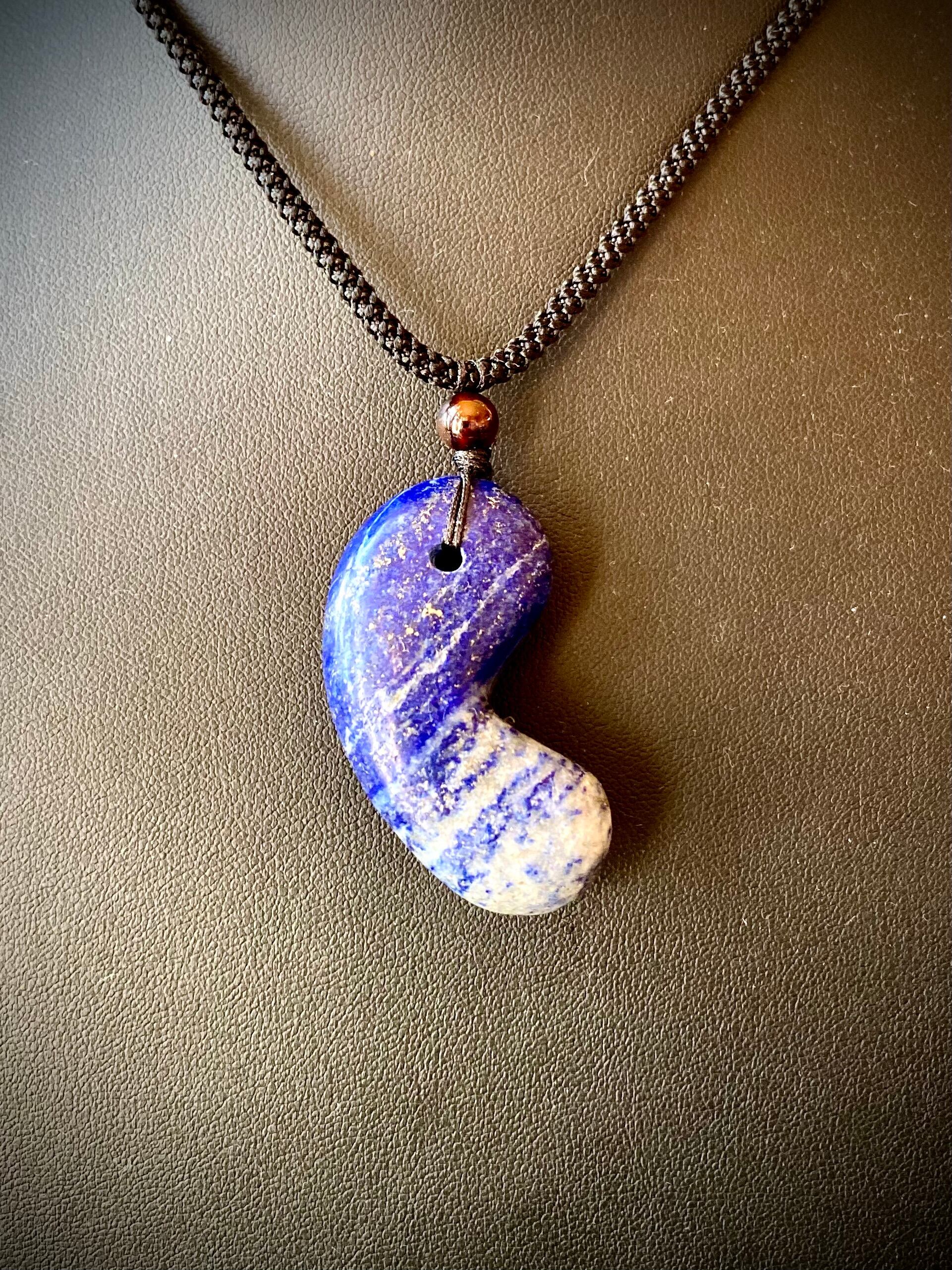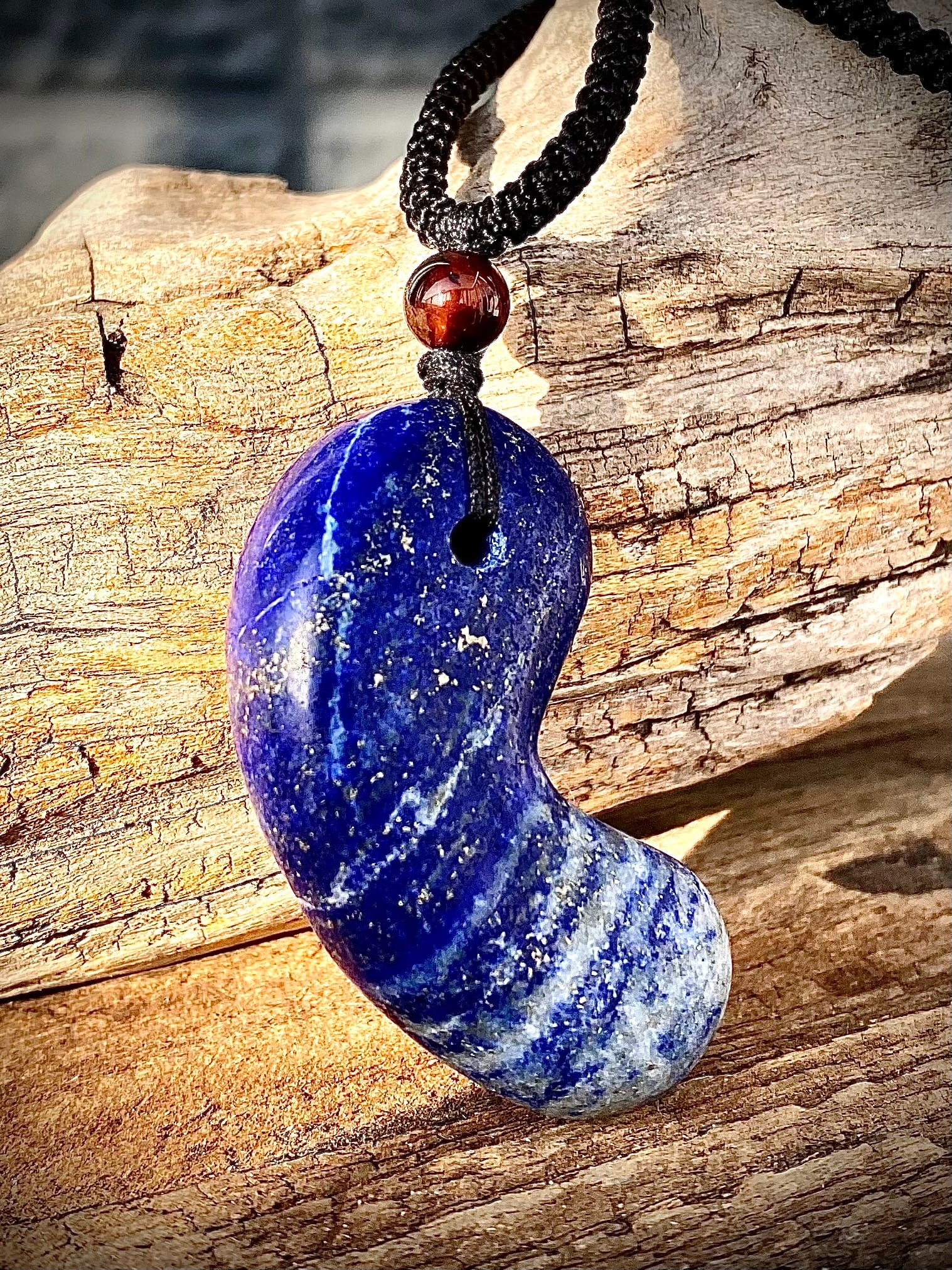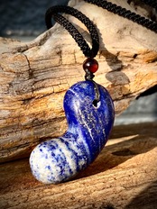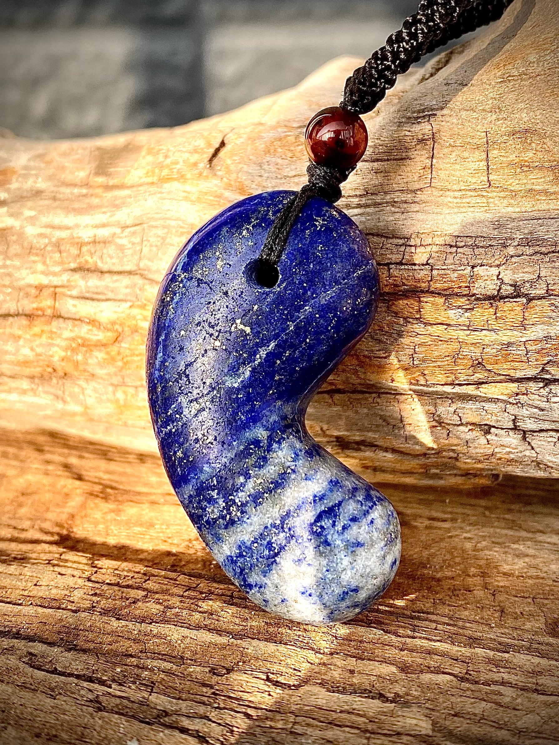先日原石からカービングしてもらいました天然石ラピスの勾玉ペンダントです。