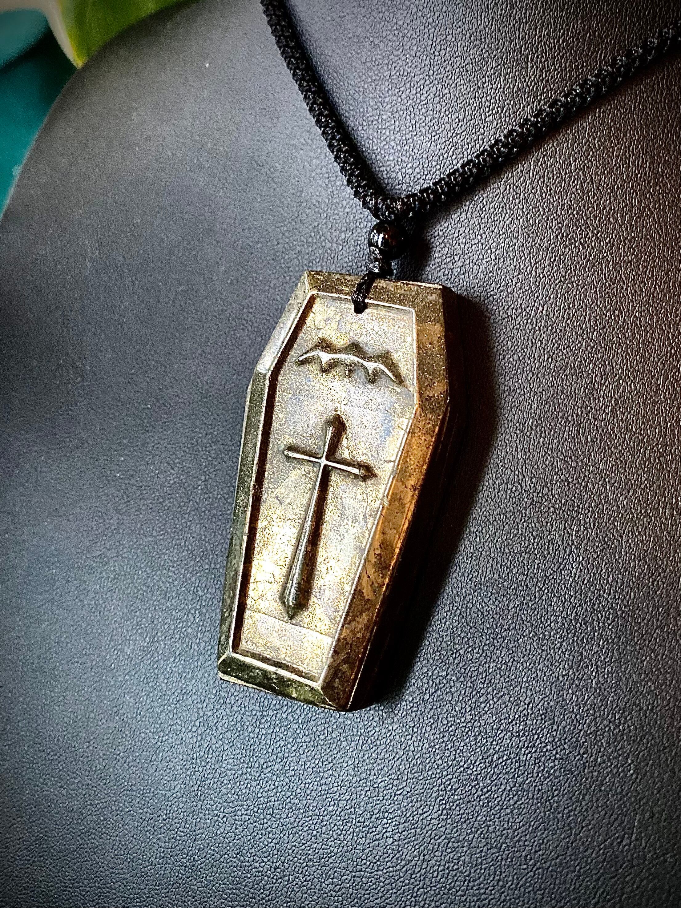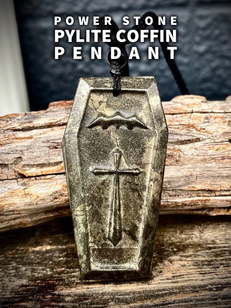 セレクトインポートしました天然石パイライトコフィンペンダントです。
