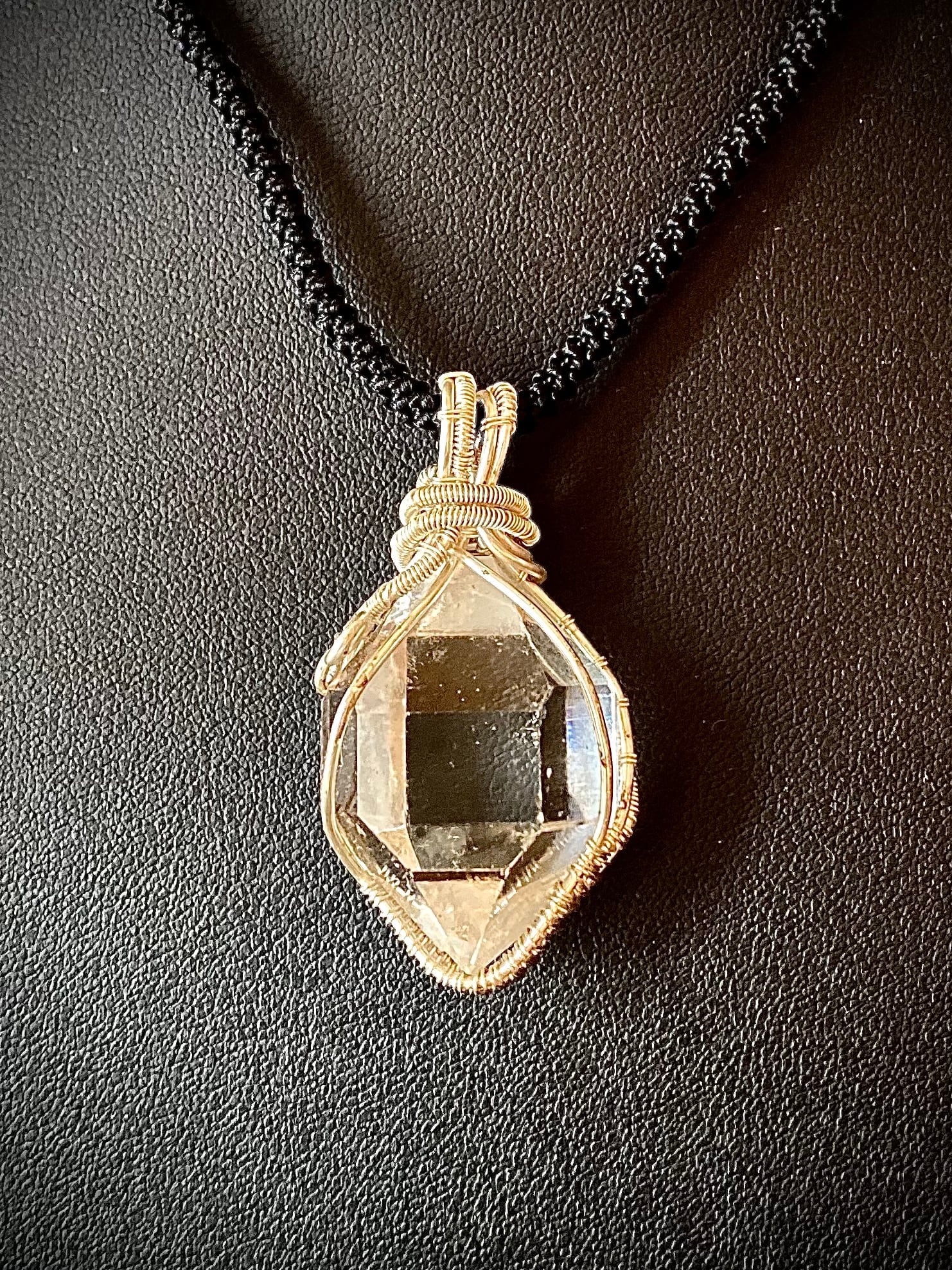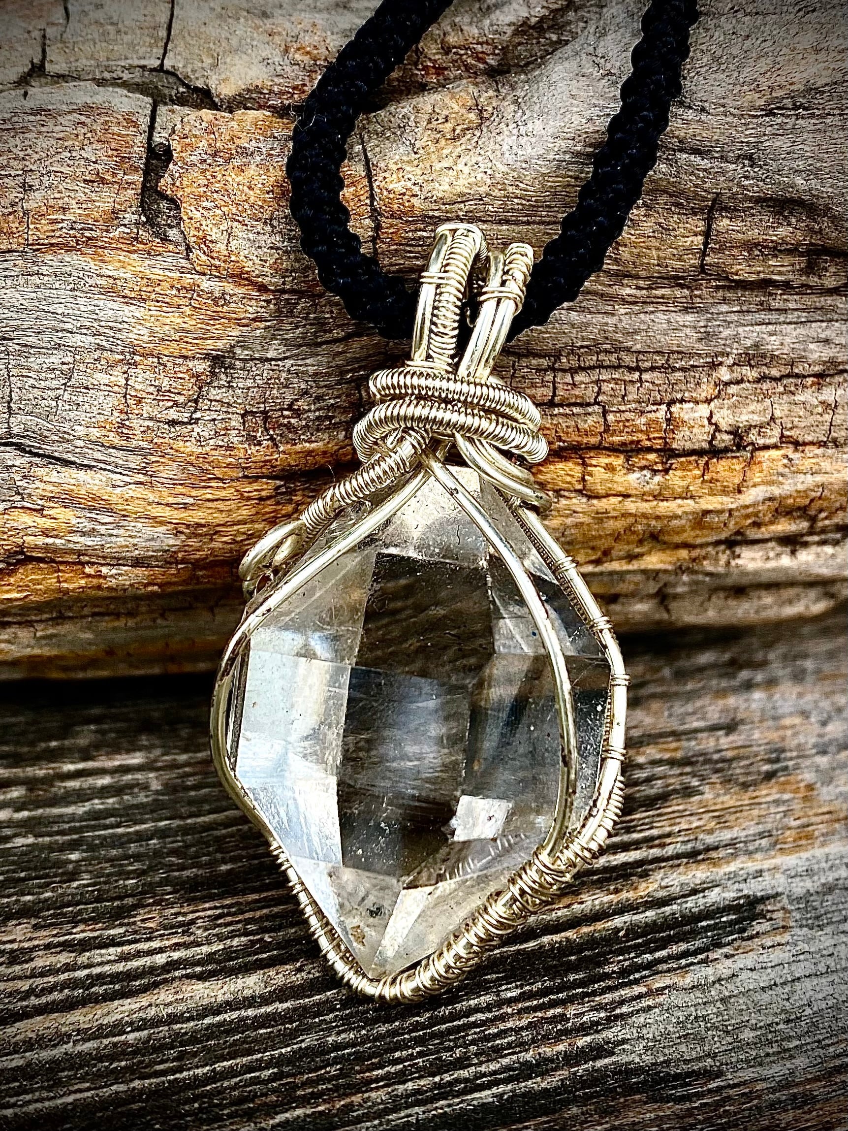 天然石ハーキマーダイヤモンドシルバーワイヤーラップペンダント