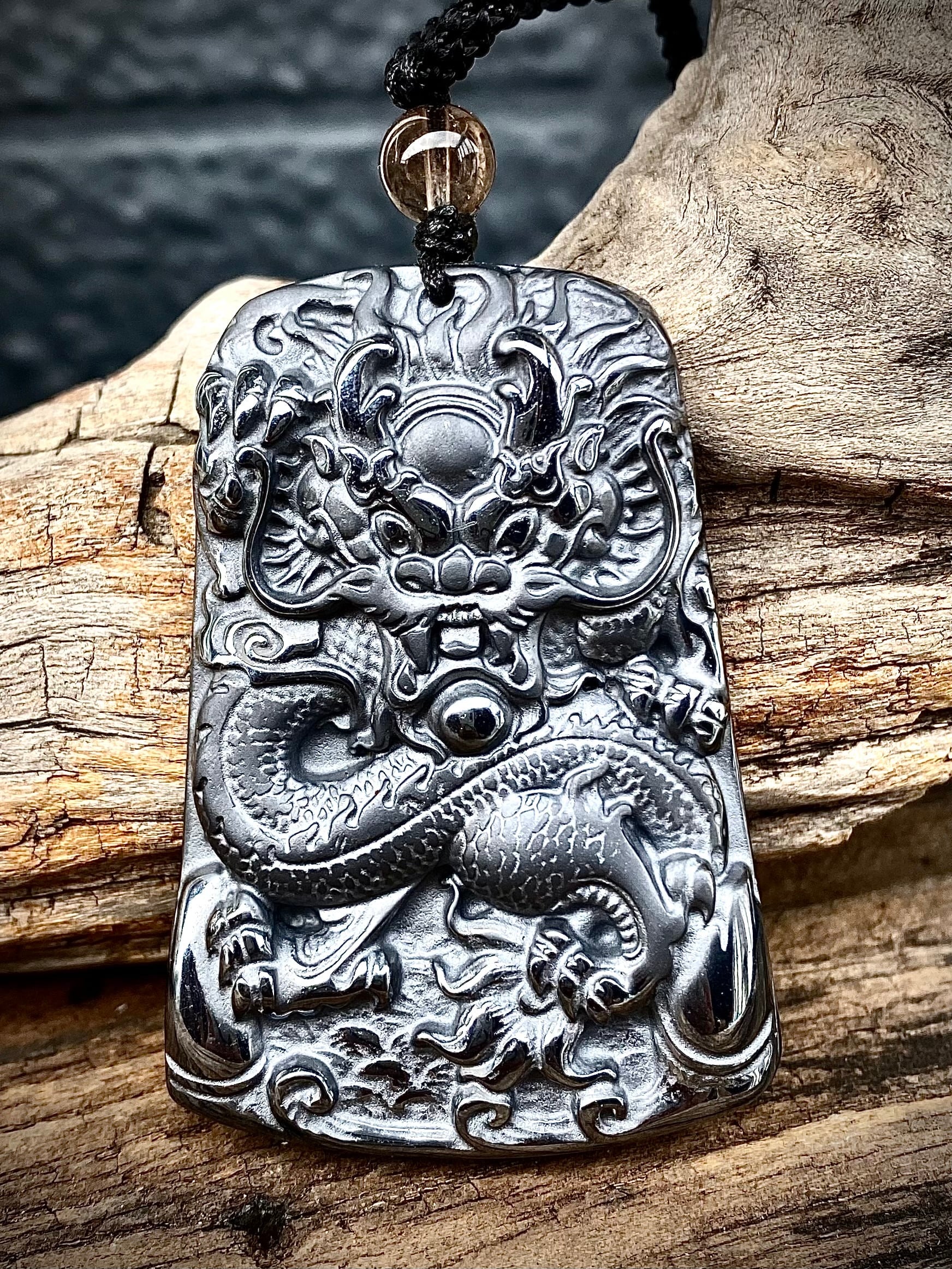 天然石ヘマタイトドラゴンペンダント