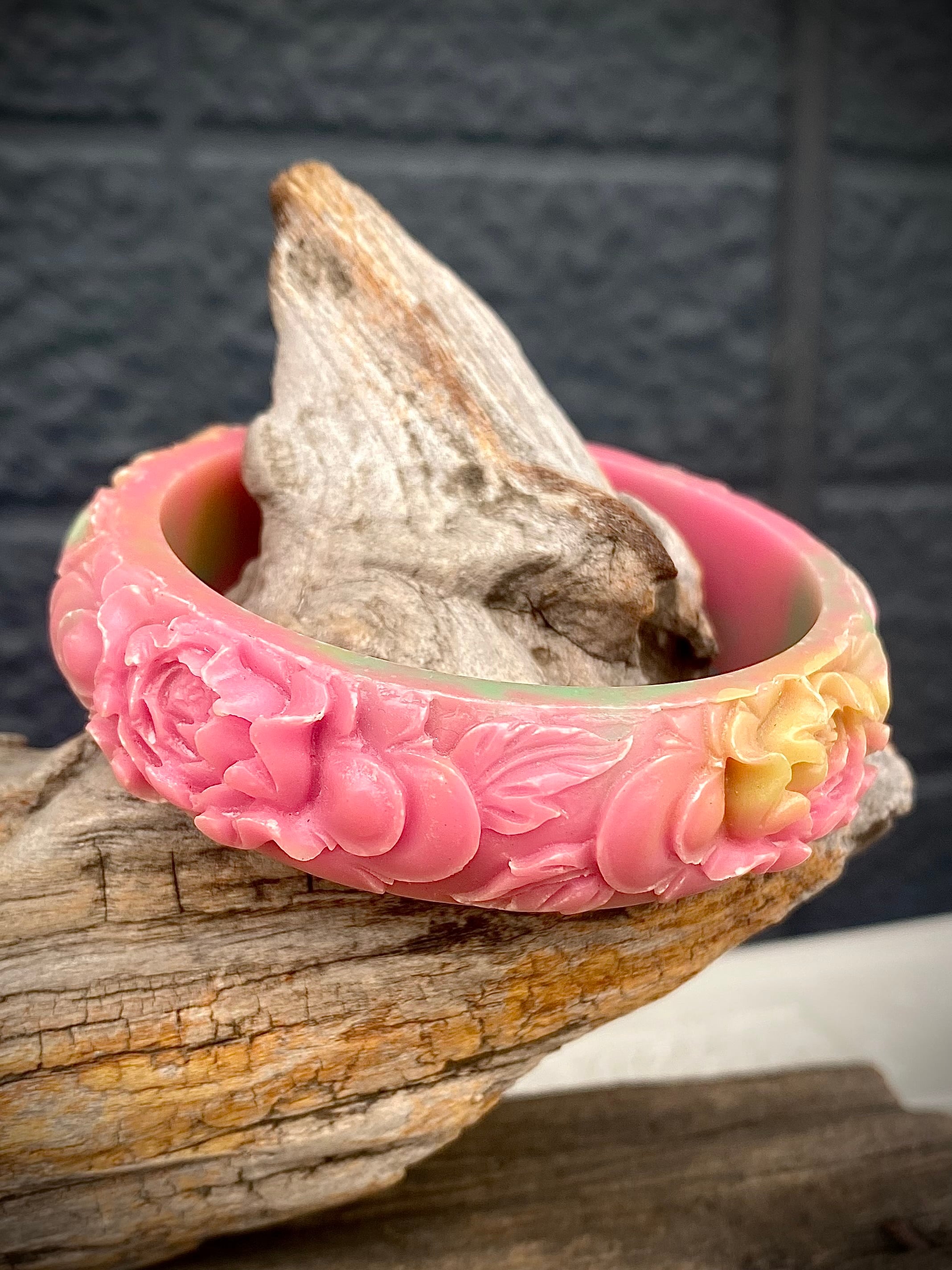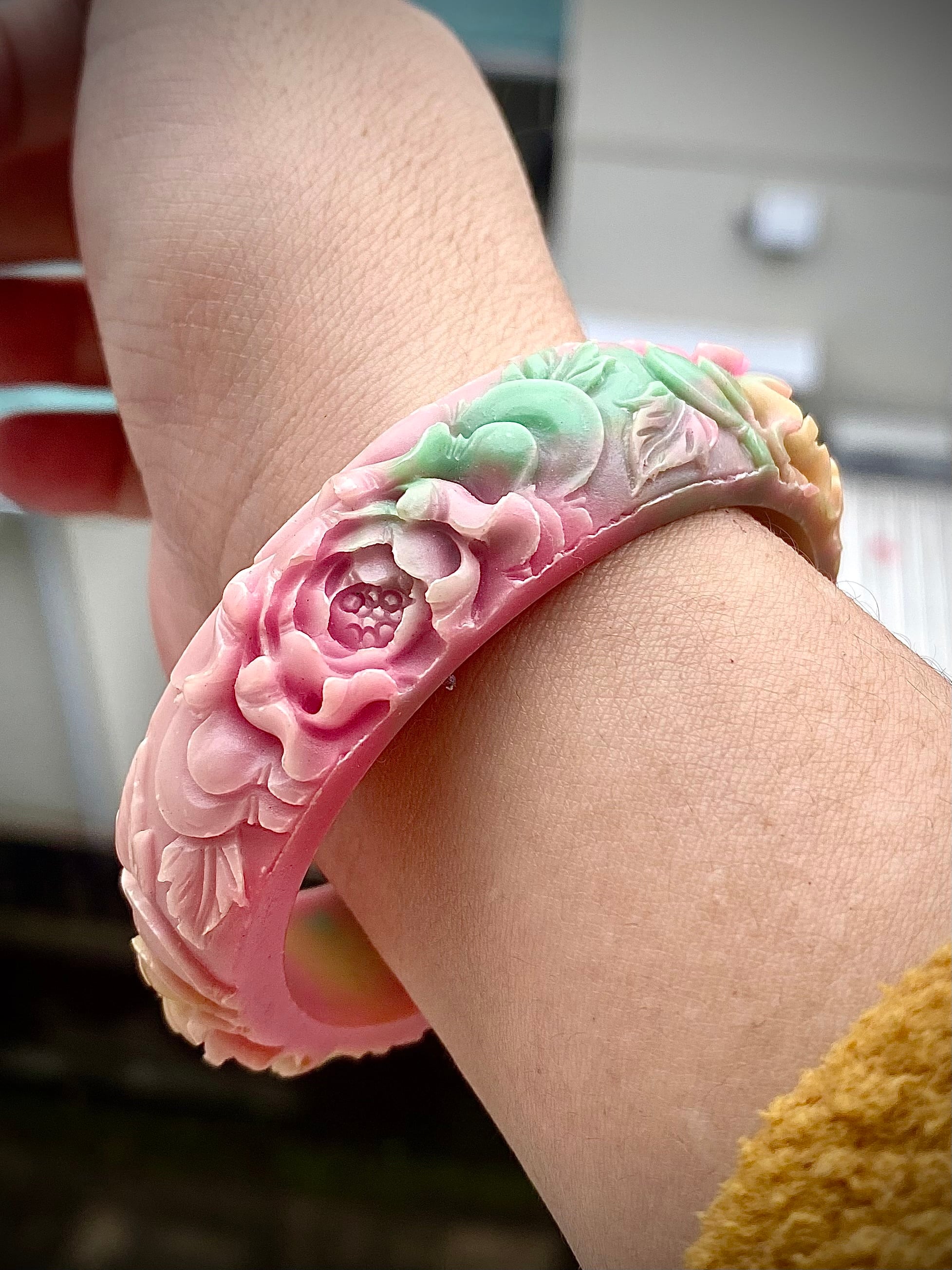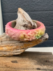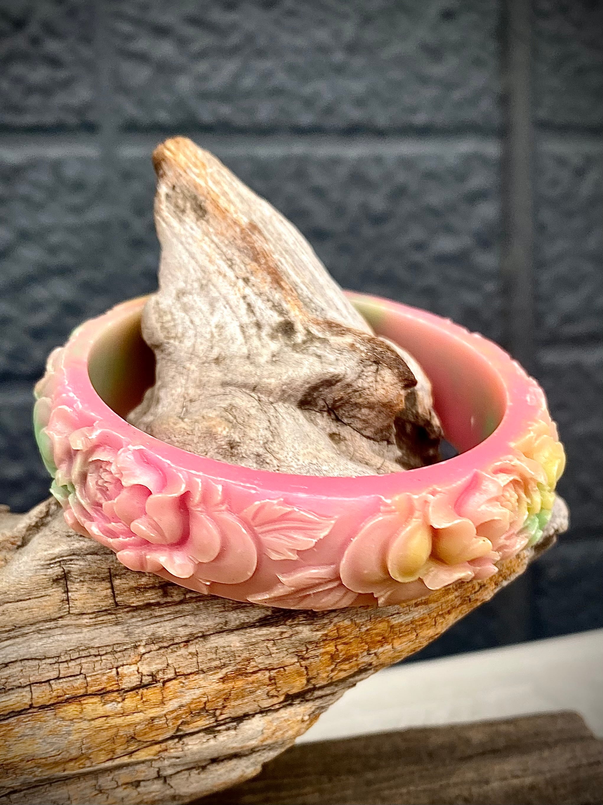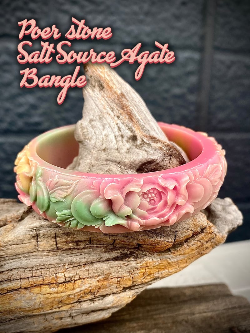 セレクトインポートしました天然石塩源瑪瑙ロータスバングルです。